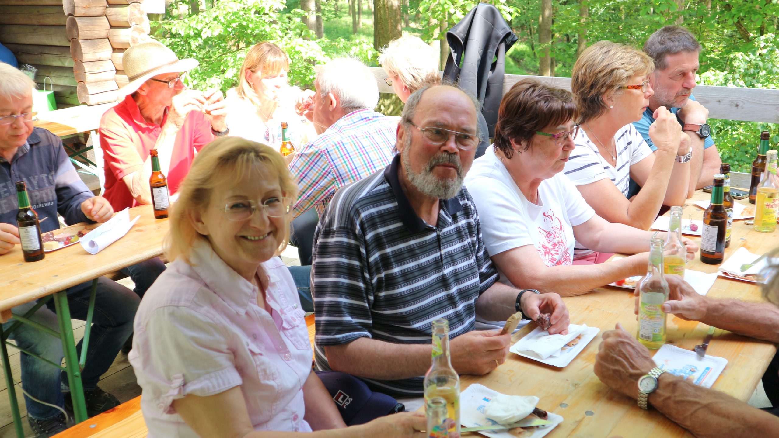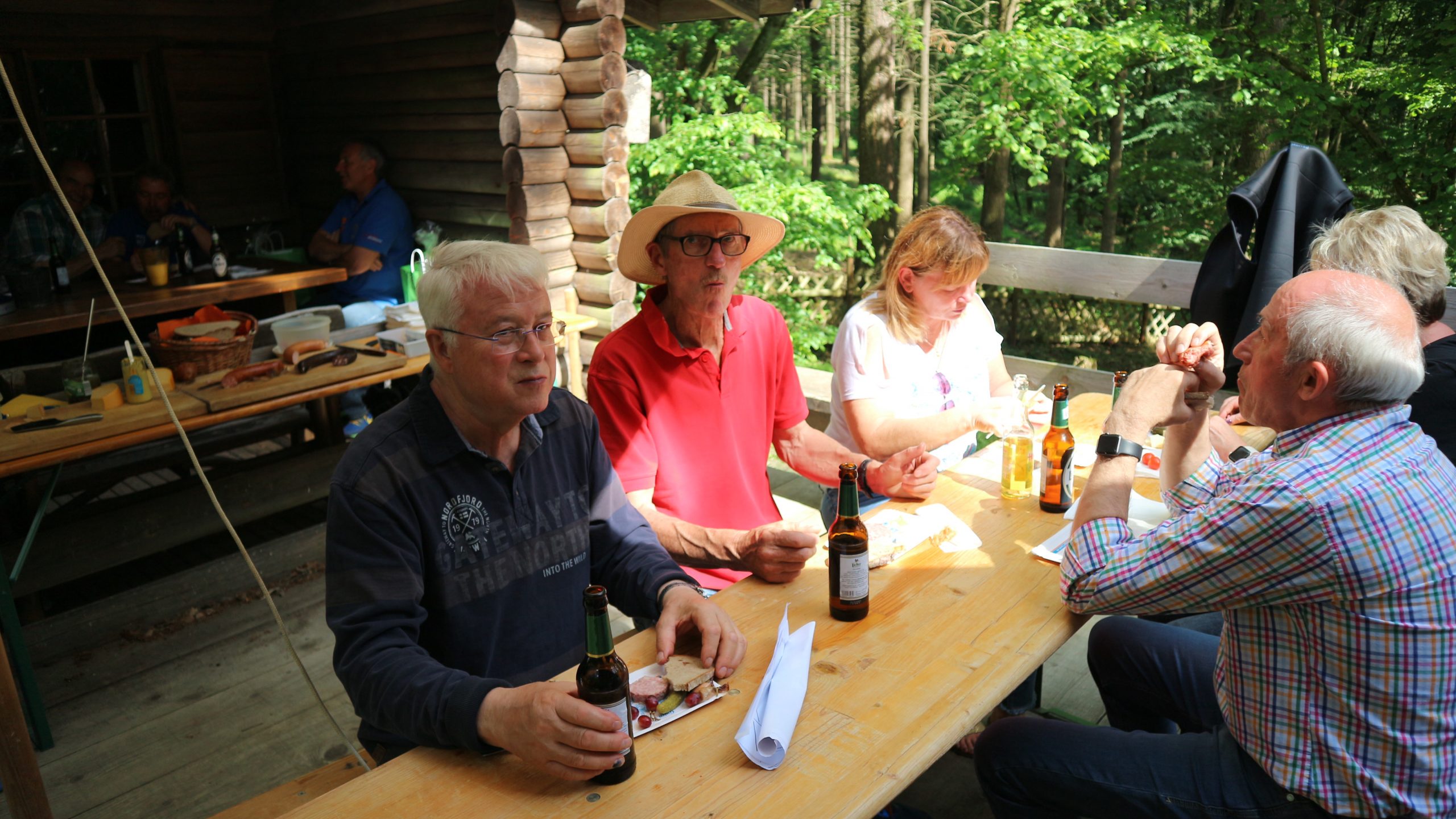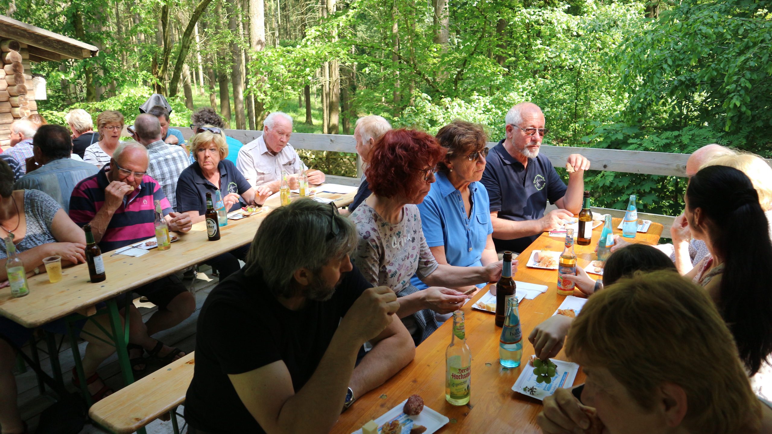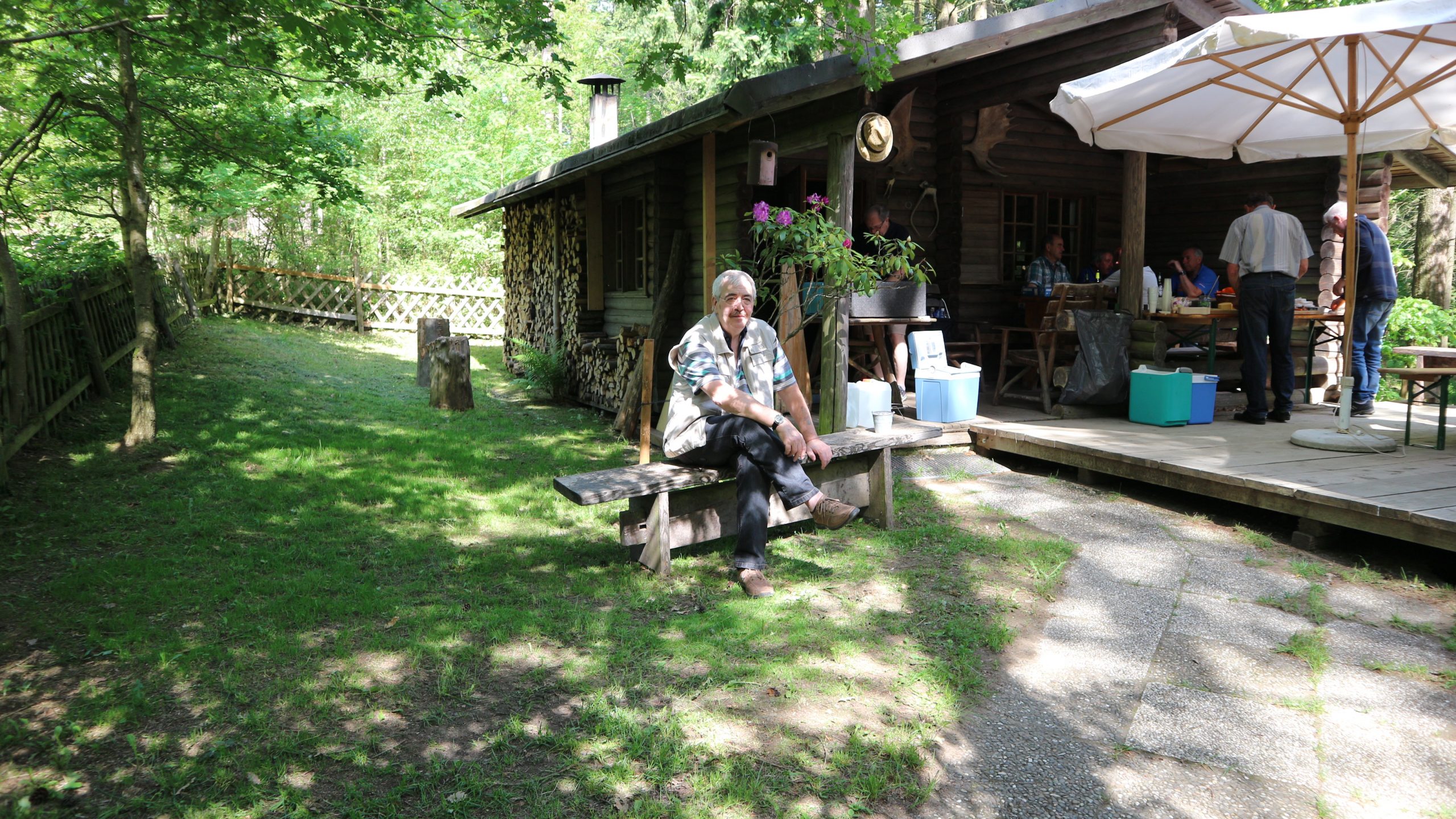 Anschließend fuhren wir zur idyllisch gelegenen Eschbacher Jagdhütte, wo ein rustikaler Imbiss auf uns wartete. In froher und gemütlicher Runde plauderten die Teilnehmer über den gut organisierten Ausflug und ließen den informativen, sonnigen Waldtag ausklingen. Zum Abschluss bedankte sich der Vorstandvorsitzend Reiner Holl im Namen des Vereines mit Geschenken bei unsrem Experten Guido Raith und den Fahrern Harald Bender und Volker Schmidt.