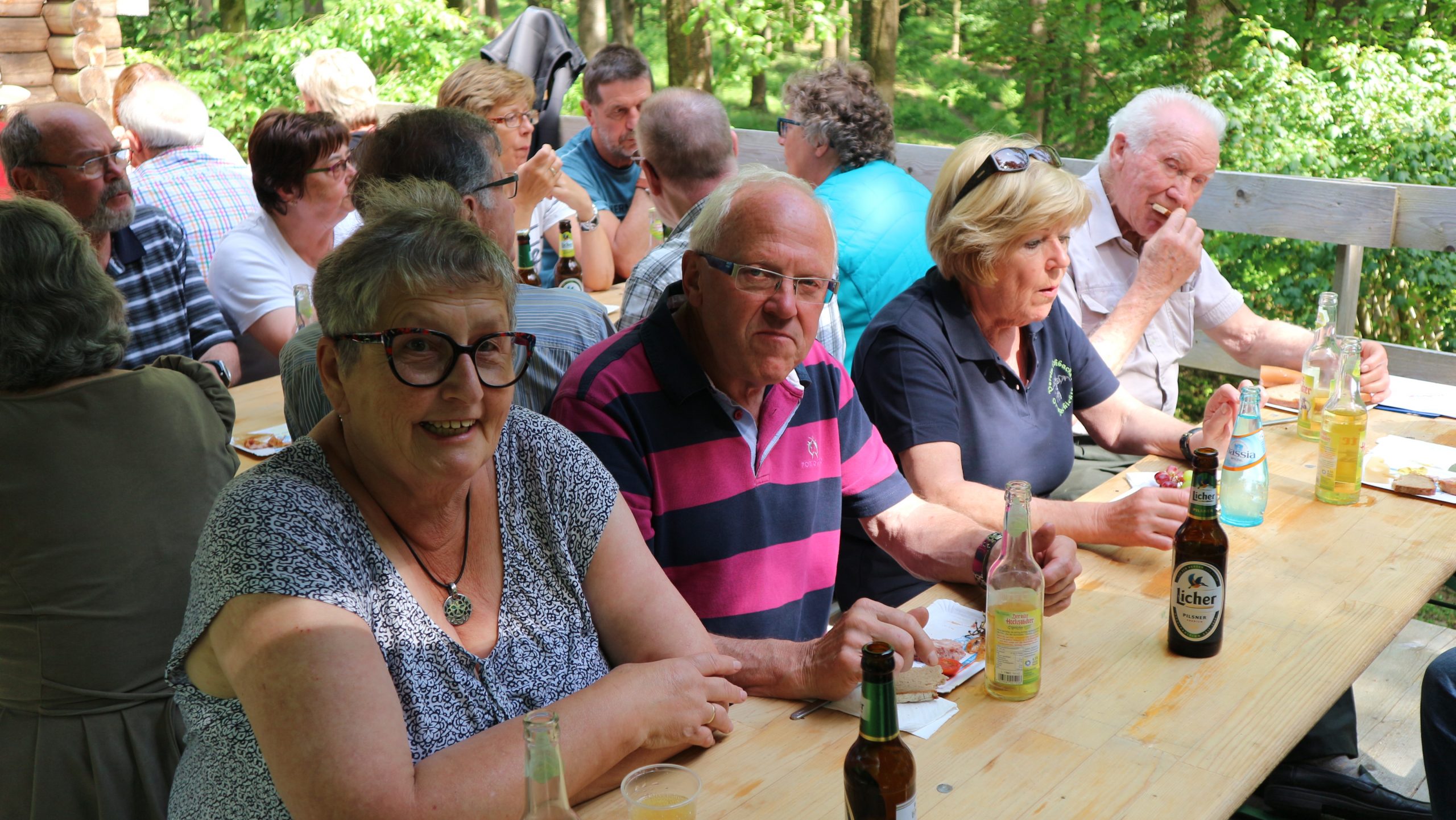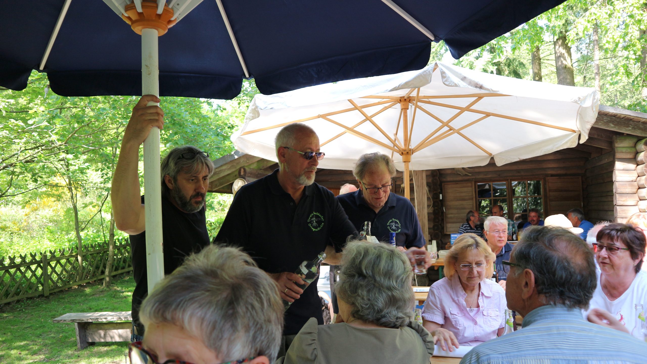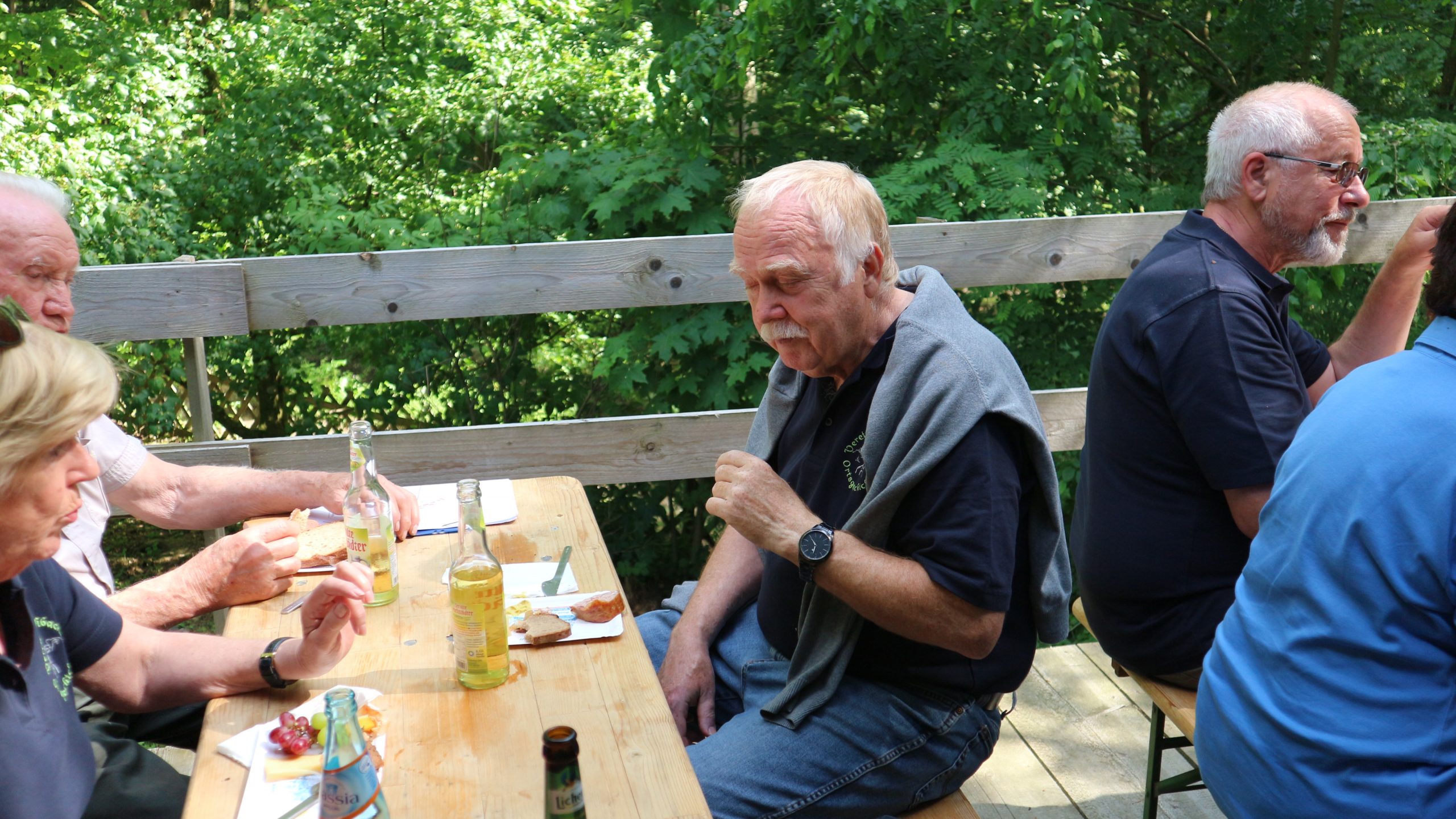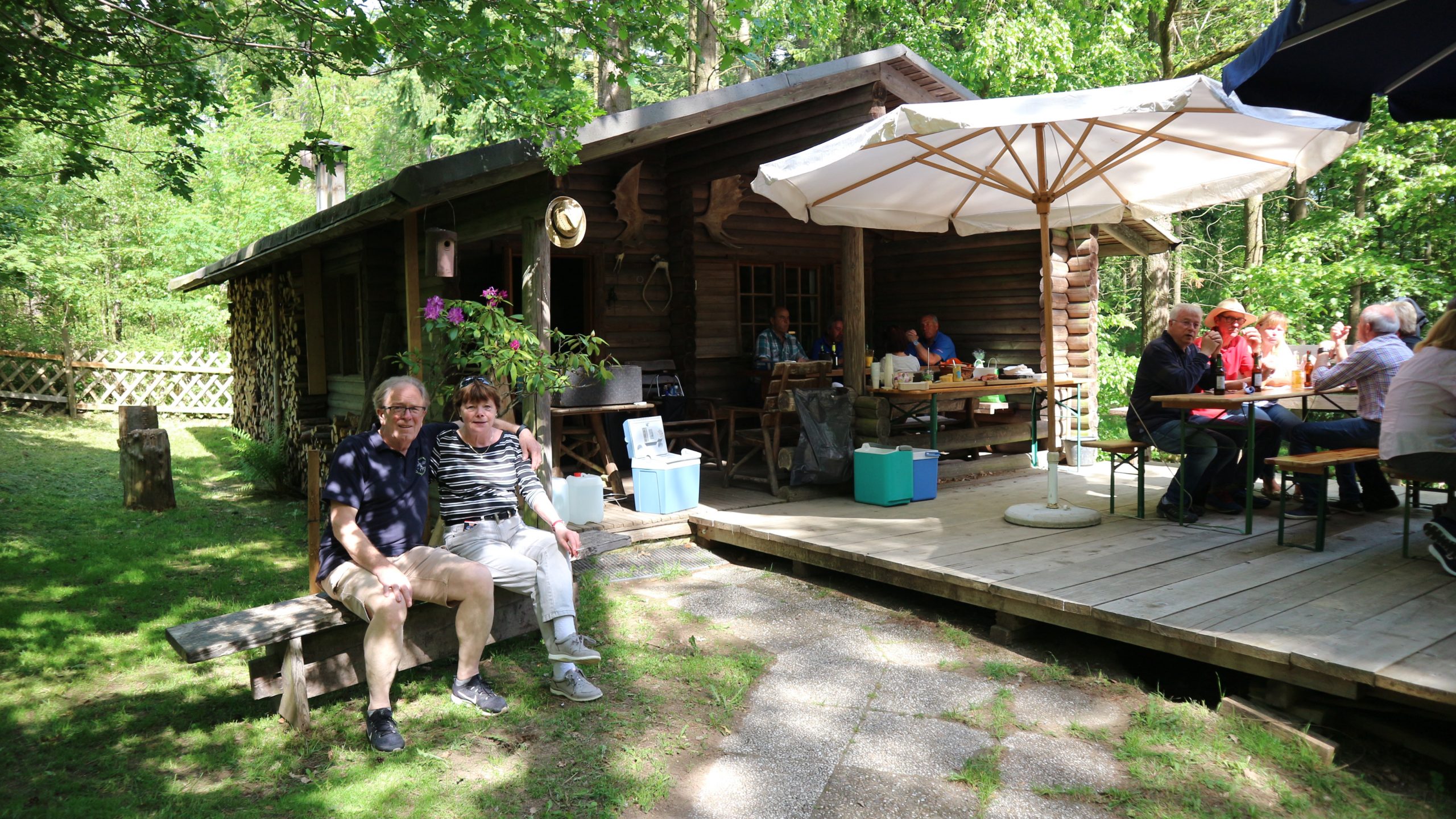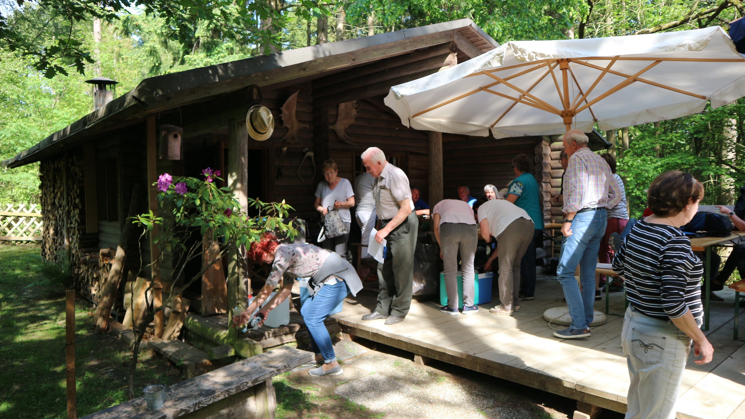 Anschließend fuhren wir zur idyllisch gelegenen Eschbacher Jagdhütte, wo ein rustikaler Imbiss auf uns wartete. In froher und gemütlicher Runde plauderten die Teilnehmer über den gut organisierten Ausflug und ließen den informativen, sonnigen Waldtag ausklingen. Zum Abschluss bedankte sich der Vorstandvorsitzend Reiner Holl im Namen des Vereines mit Geschenken bei unsrem Experten Guido Raith und den Fahrern Harald Bender und Volker Schmidt.
