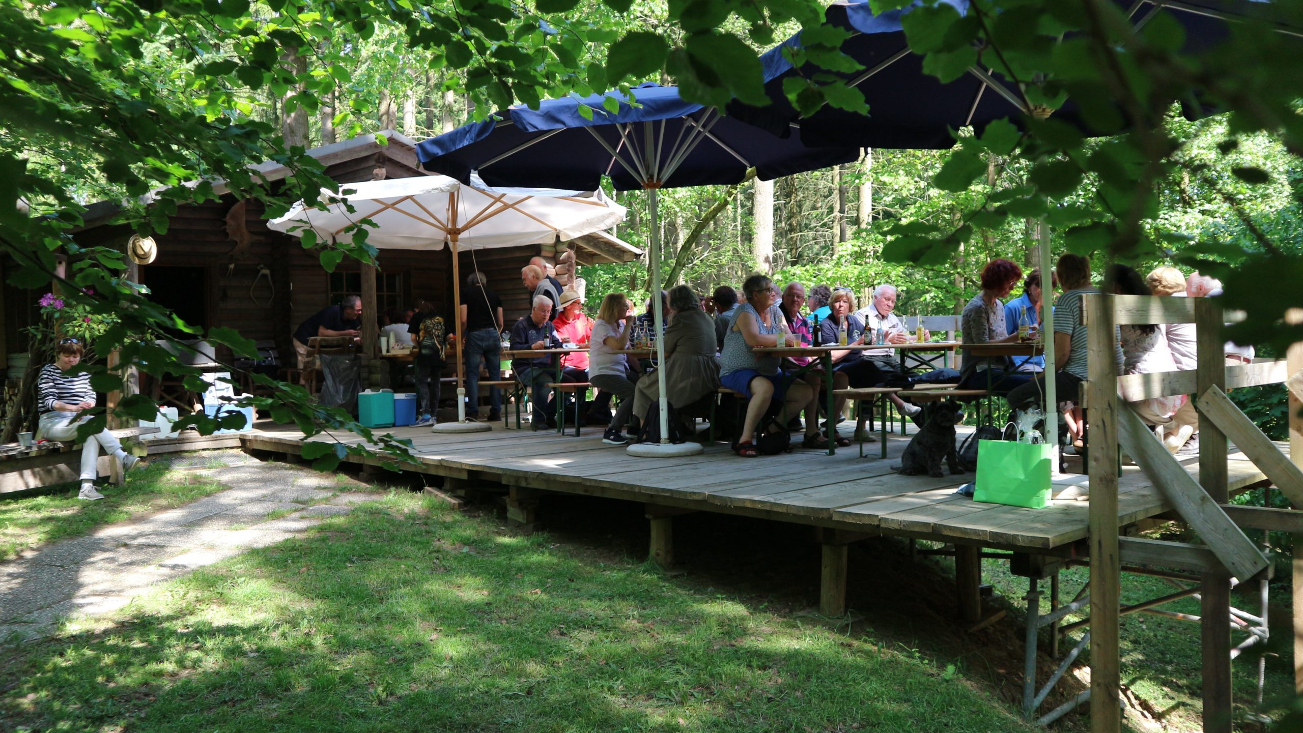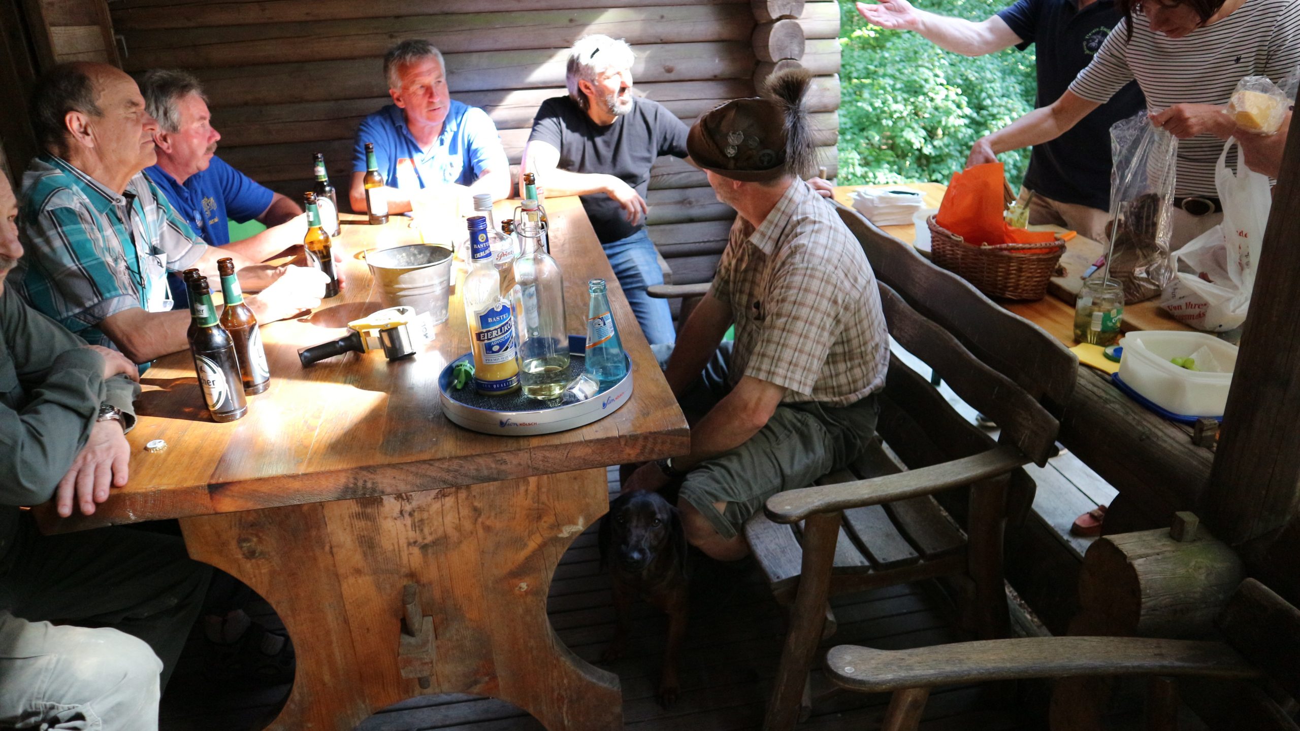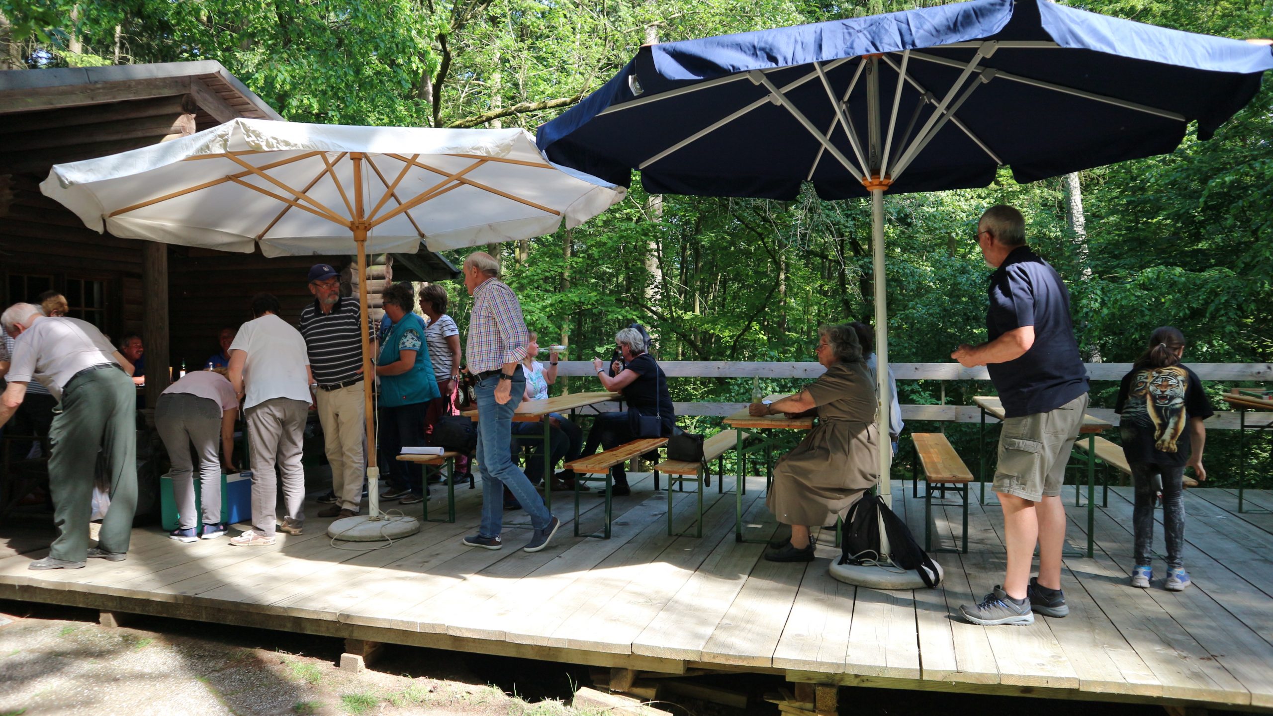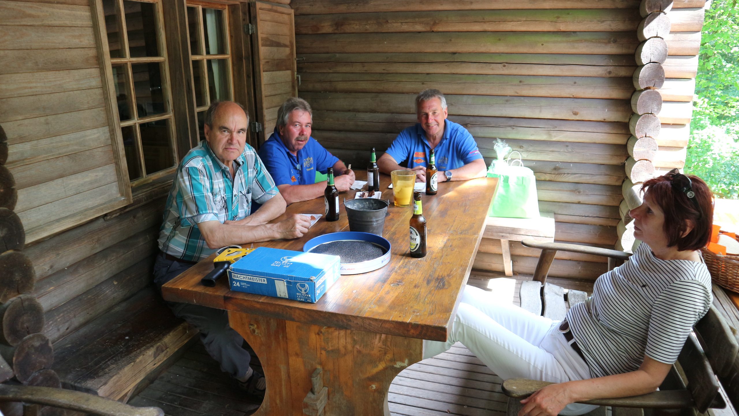 Anschließend fuhren wir zur idyllisch gelegenen Eschbacher Jagdhütte, wo ein rustikaler Imbiss auf uns wartete. In froher und gemütlicher Runde plauderten die Teilnehmer über den gut organisierten Ausflug und ließen den informativen, sonnigen Waldtag ausklingen. Zum Abschluss bedankte sich der Vorstandvorsitzend Reiner Holl im Namen des Vereines mit Geschenken bei unsrem Experten Guido Raith und den Fahrern Harald Bender und Volker Schmidt.