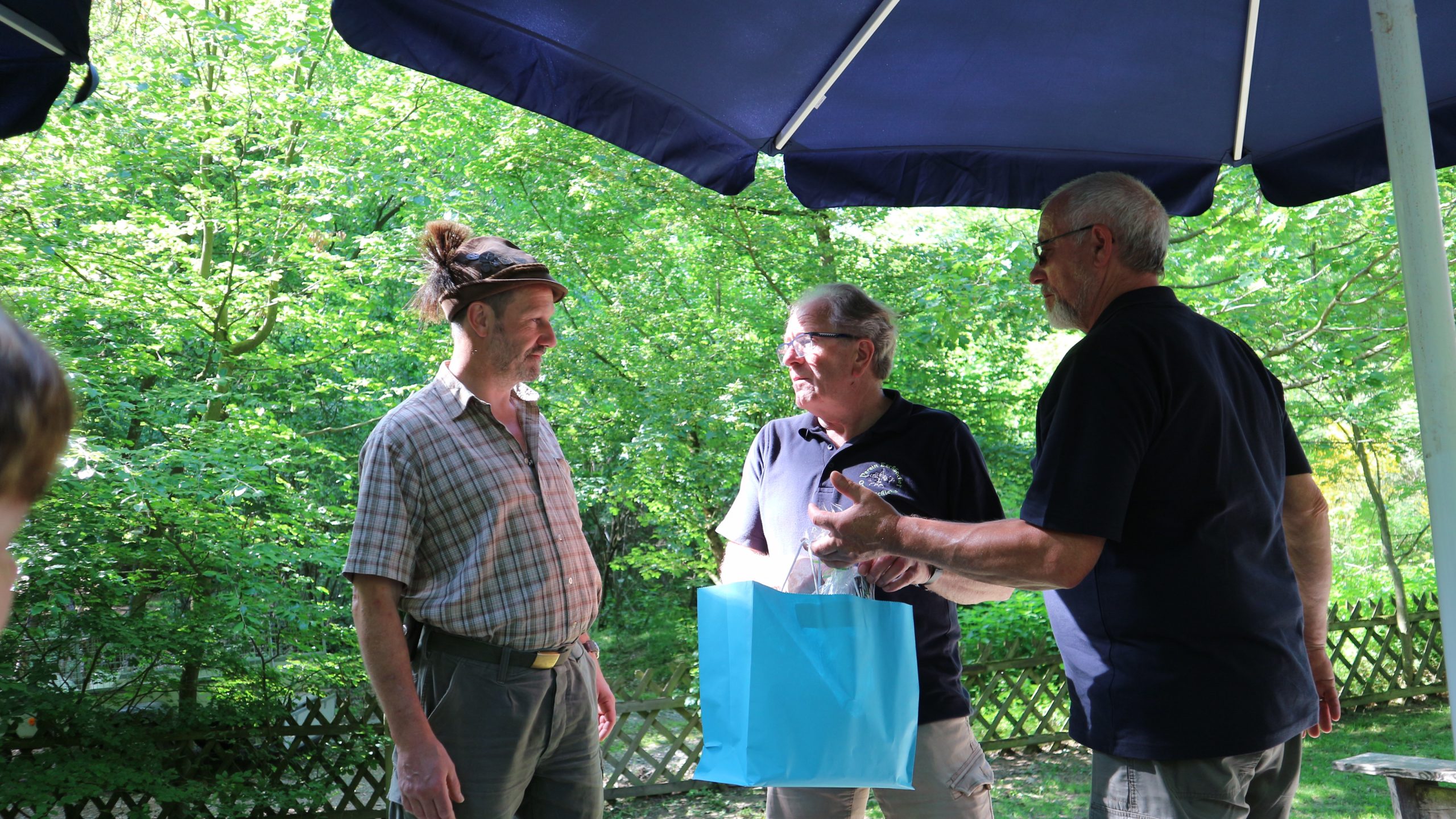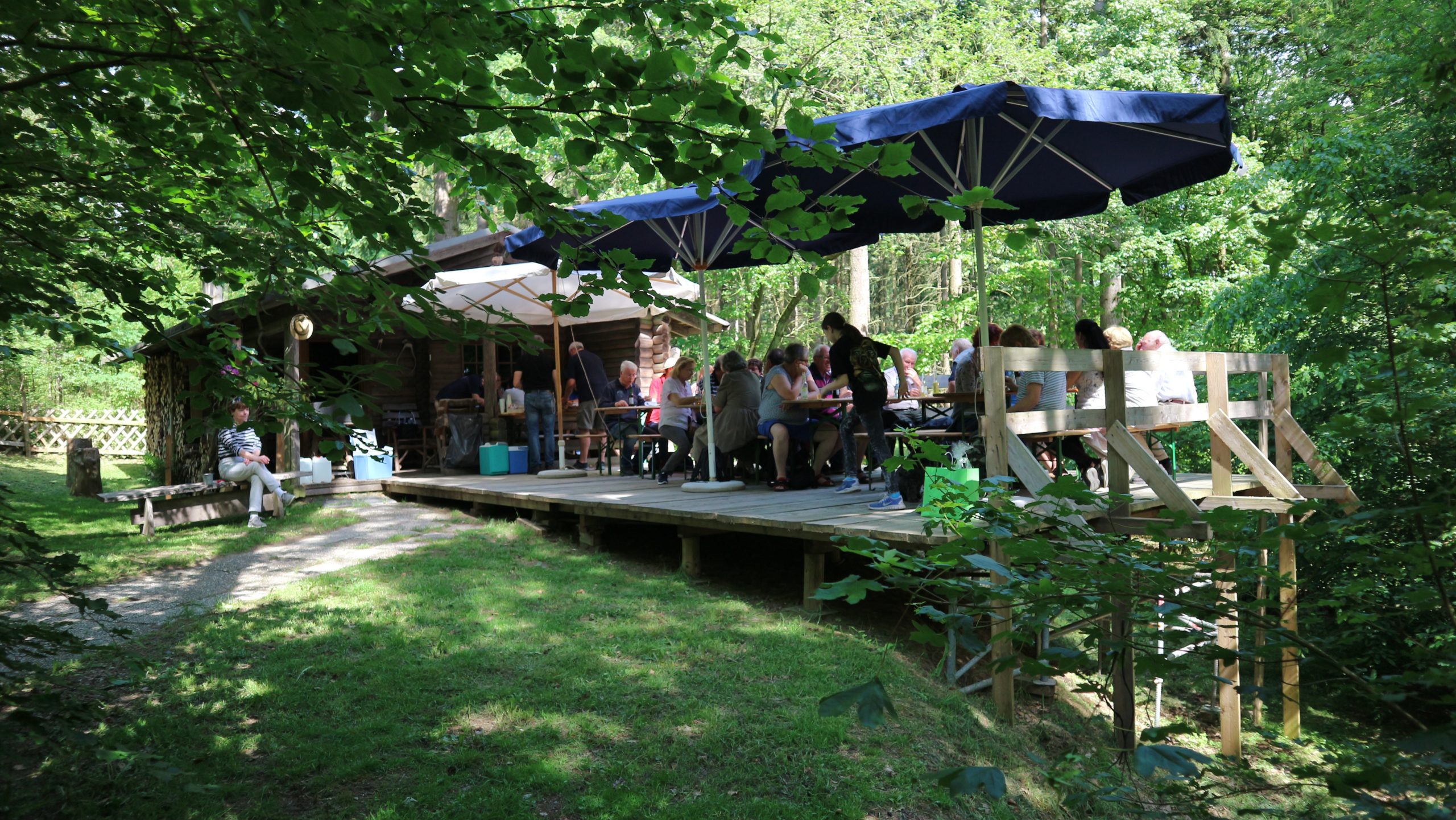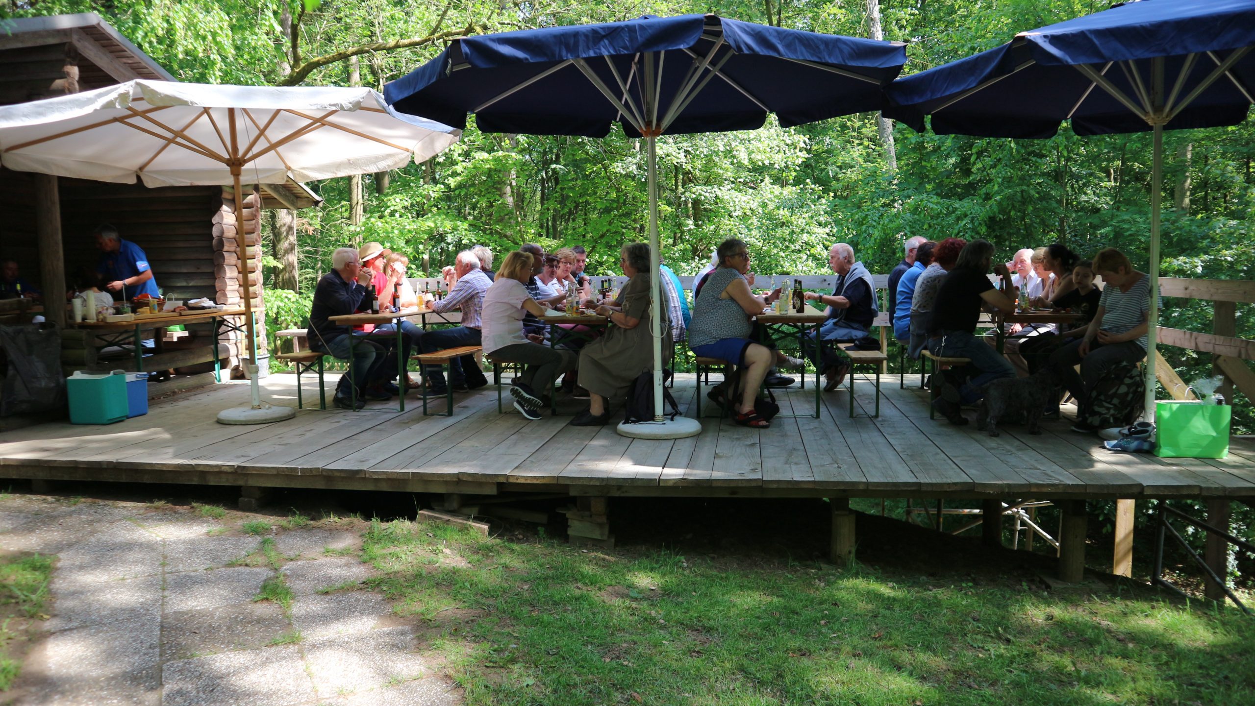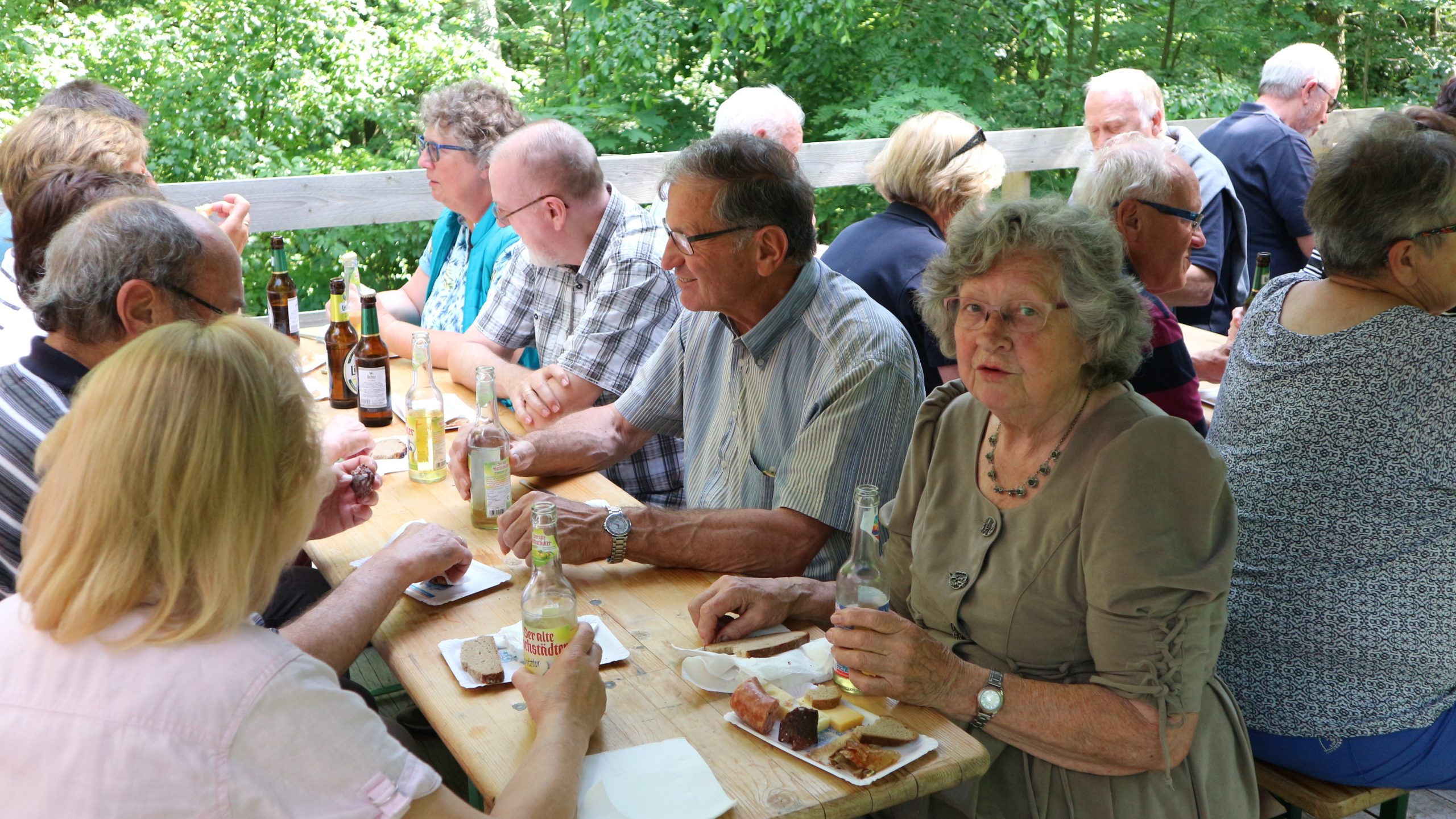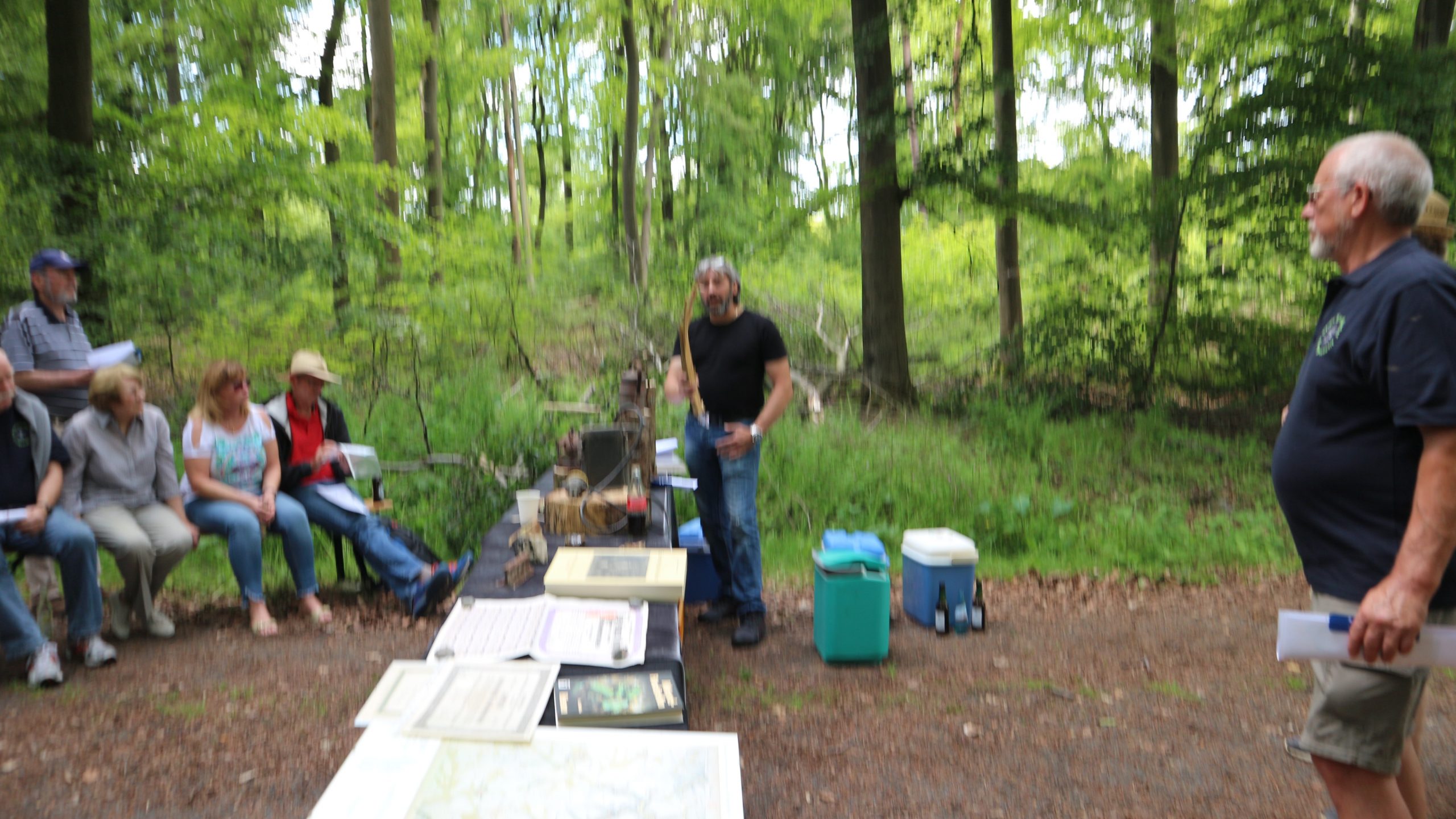 Anschließend fuhren wir zur idyllisch gelegenen Eschbacher Jagdhütte, wo ein rustikaler Imbiss auf uns wartete. In froher und gemütlicher Runde plauderten die Teilnehmer über den gut organisierten Ausflug und ließen den informativen, sonnigen Waldtag ausklingen. Zum Abschluss bedankte sich der Vorstandvorsitzend Reiner Holl im Namen des Vereines mit Geschenken bei unsrem Experten Guido Raith und den Fahrern Harald Bender und Volker Schmidt.