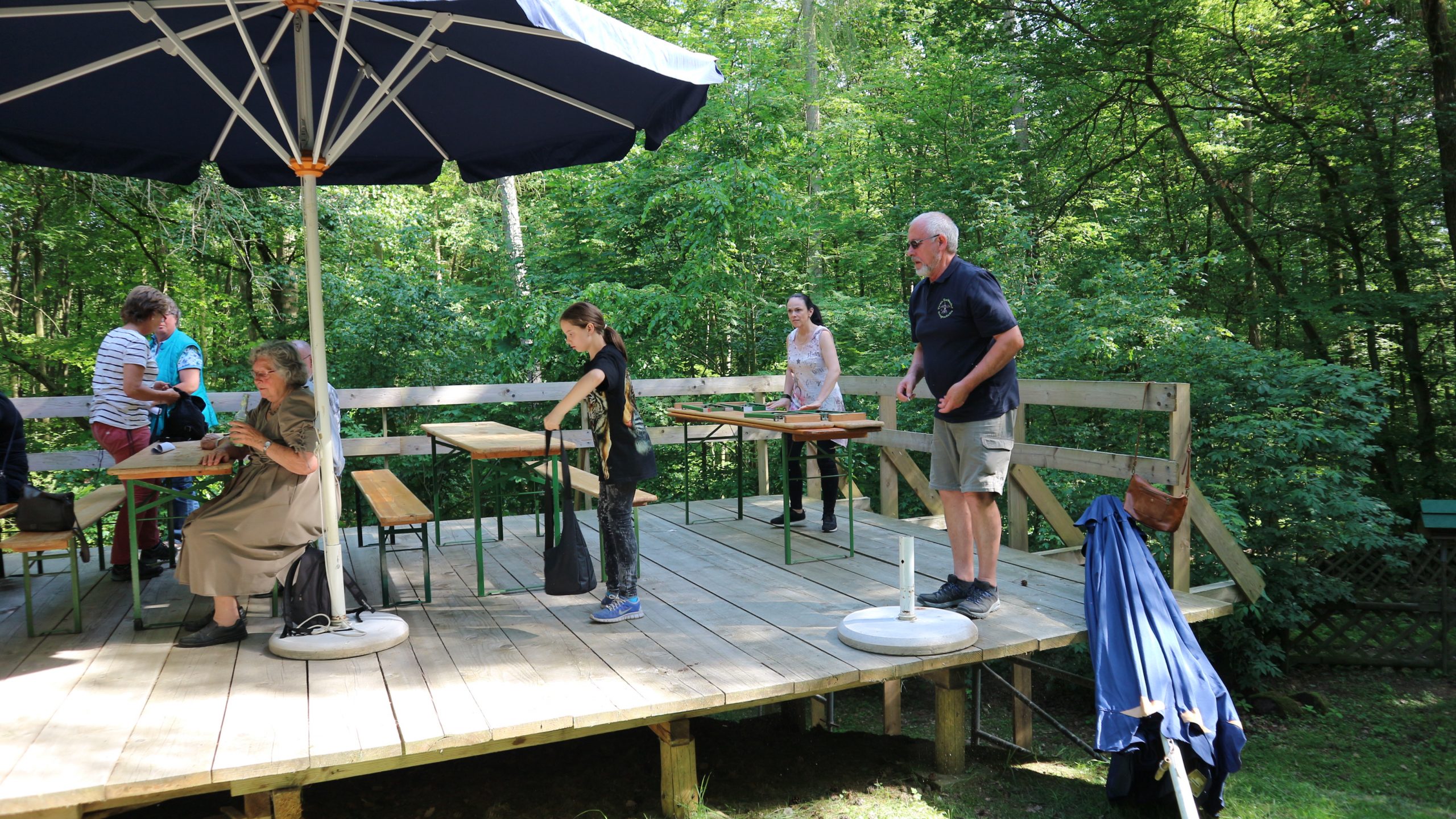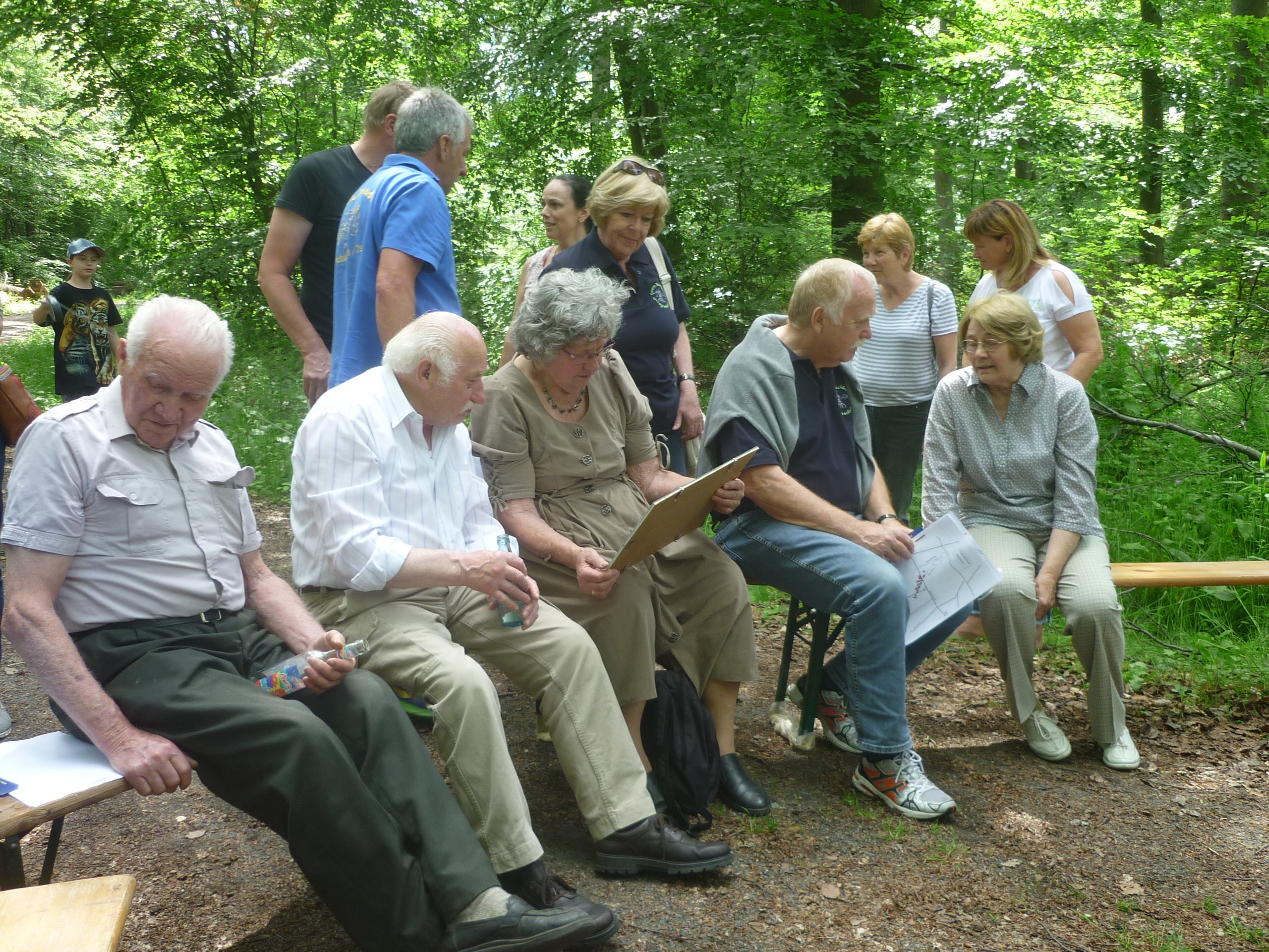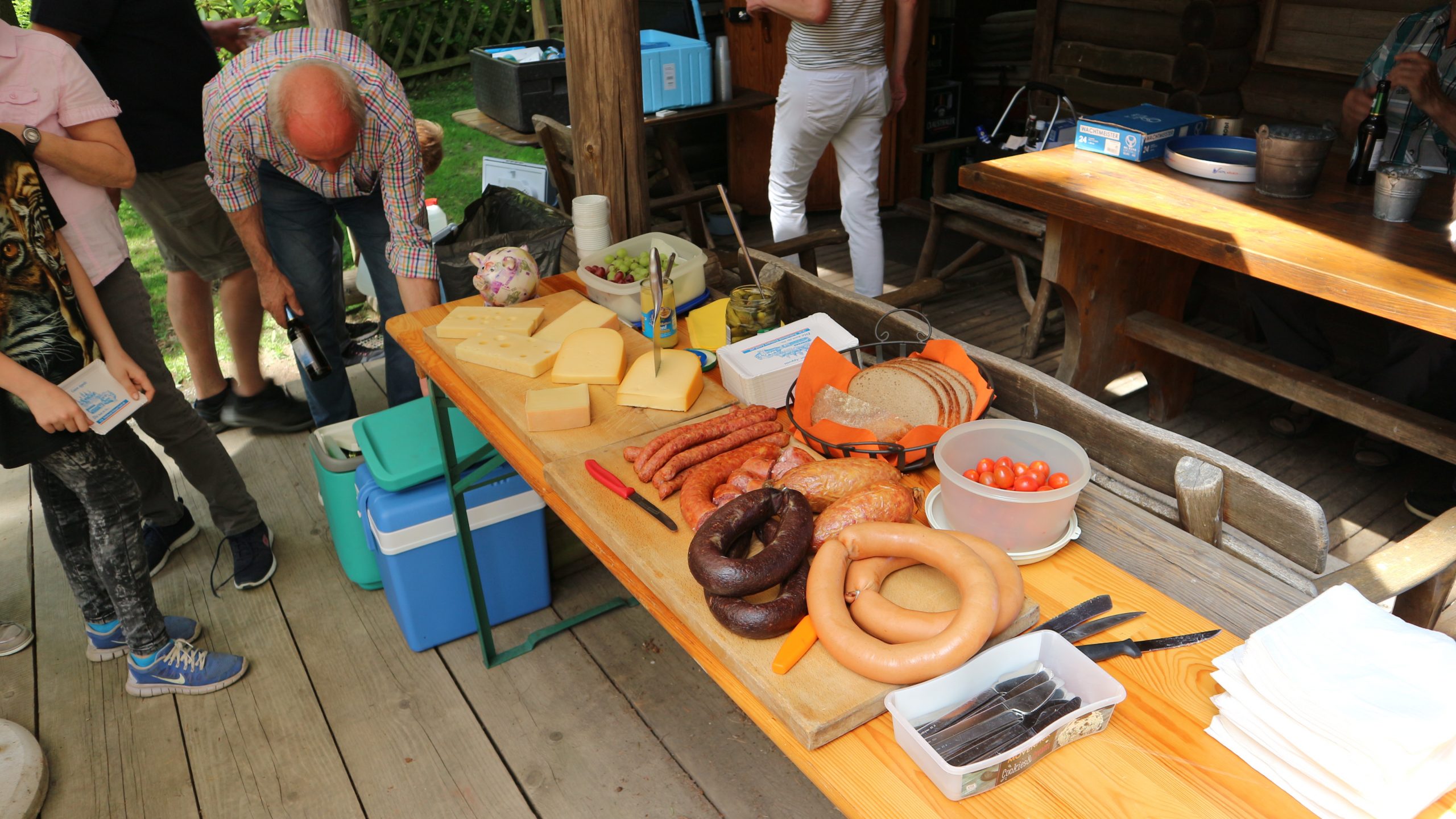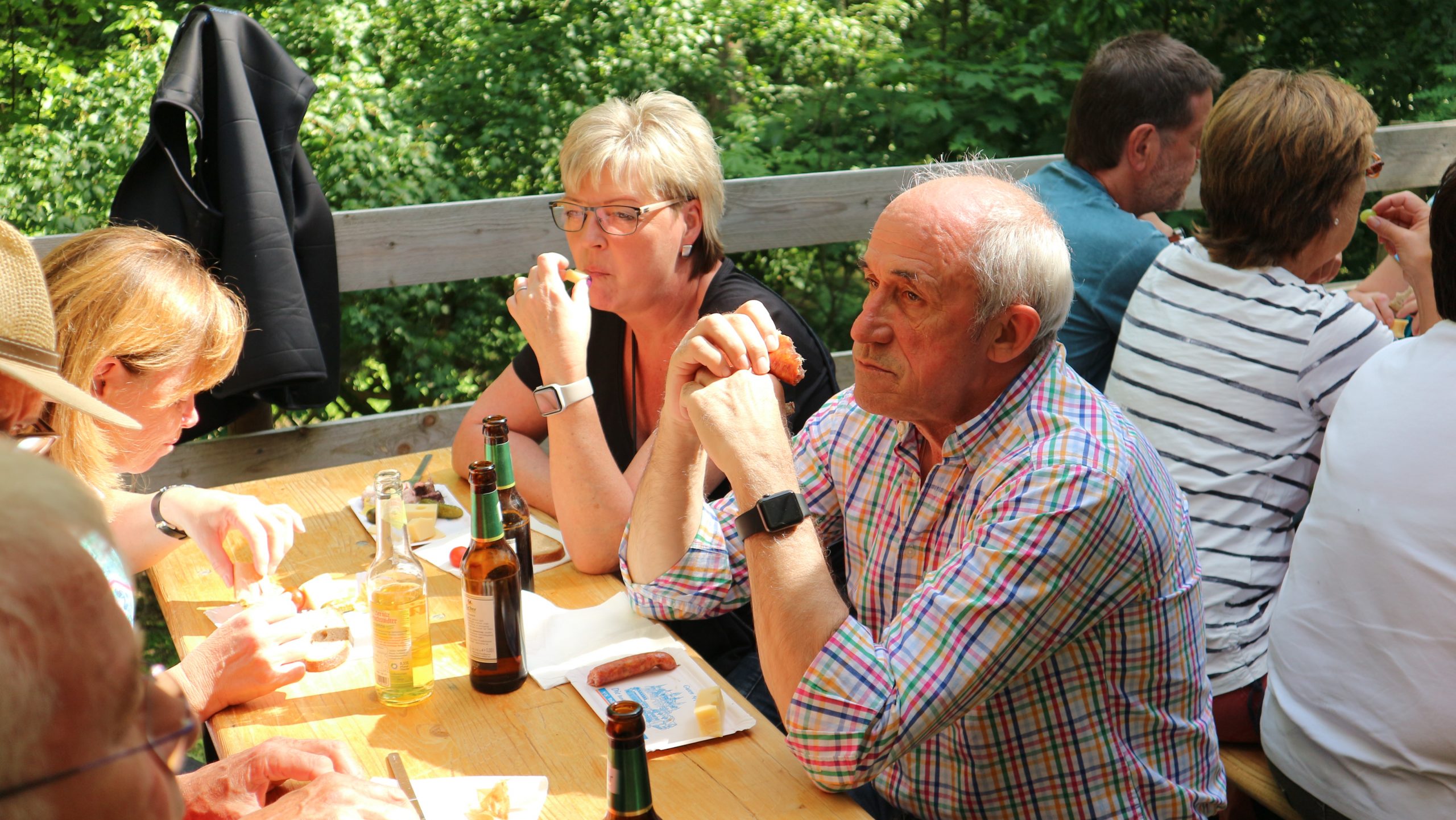 Anschließend fuhren wir zur idyllisch gelegenen Eschbacher Jagdhütte, wo ein rustikaler Imbiss auf uns wartete. In froher und gemütlicher Runde plauderten die Teilnehmer über den gut organisierten Ausflug und ließen den informativen, sonnigen Waldtag ausklingen. Zum Abschluss bedankte sich der Vorstandvorsitzend Reiner Holl im Namen des Vereines mit Geschenken bei unsrem Experten Guido Raith und den Fahrern Harald Bender und Volker Schmidt.