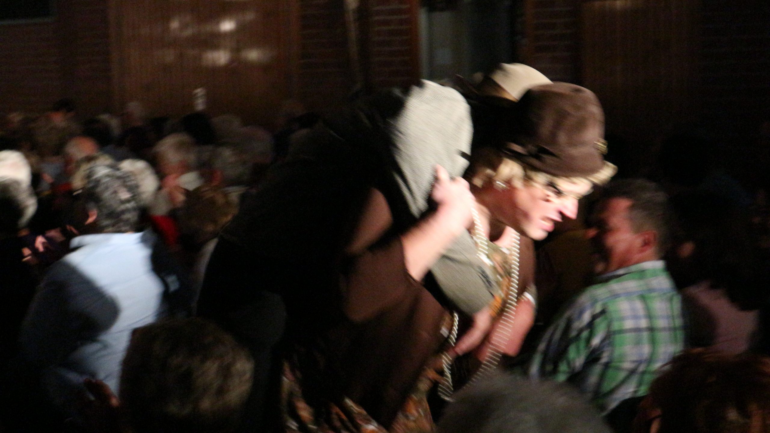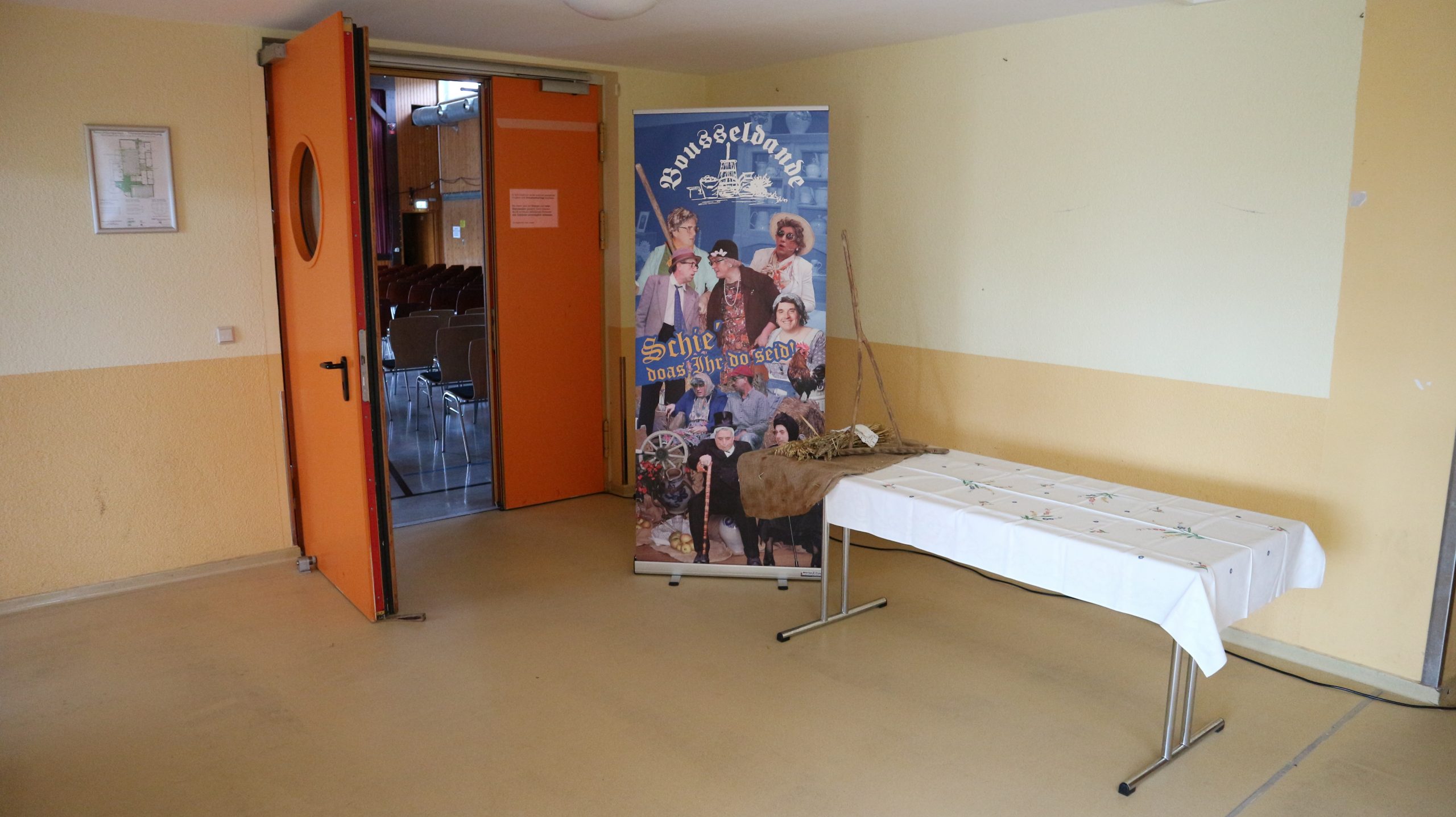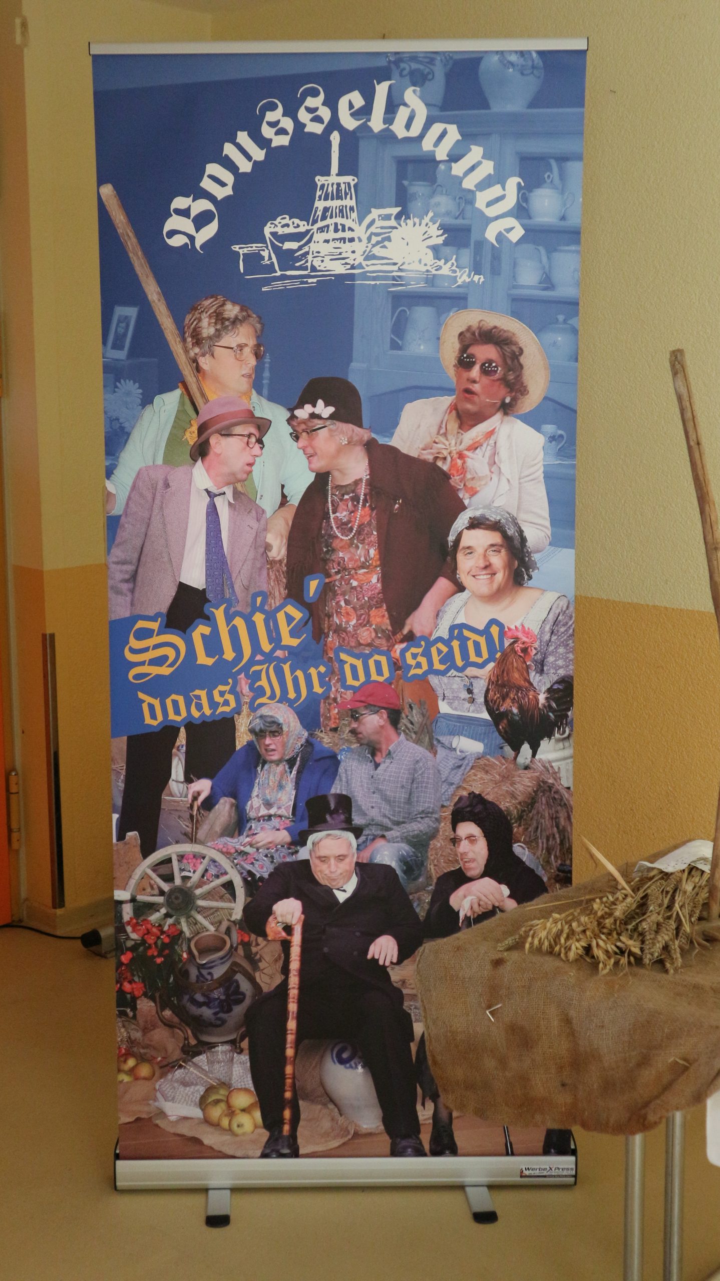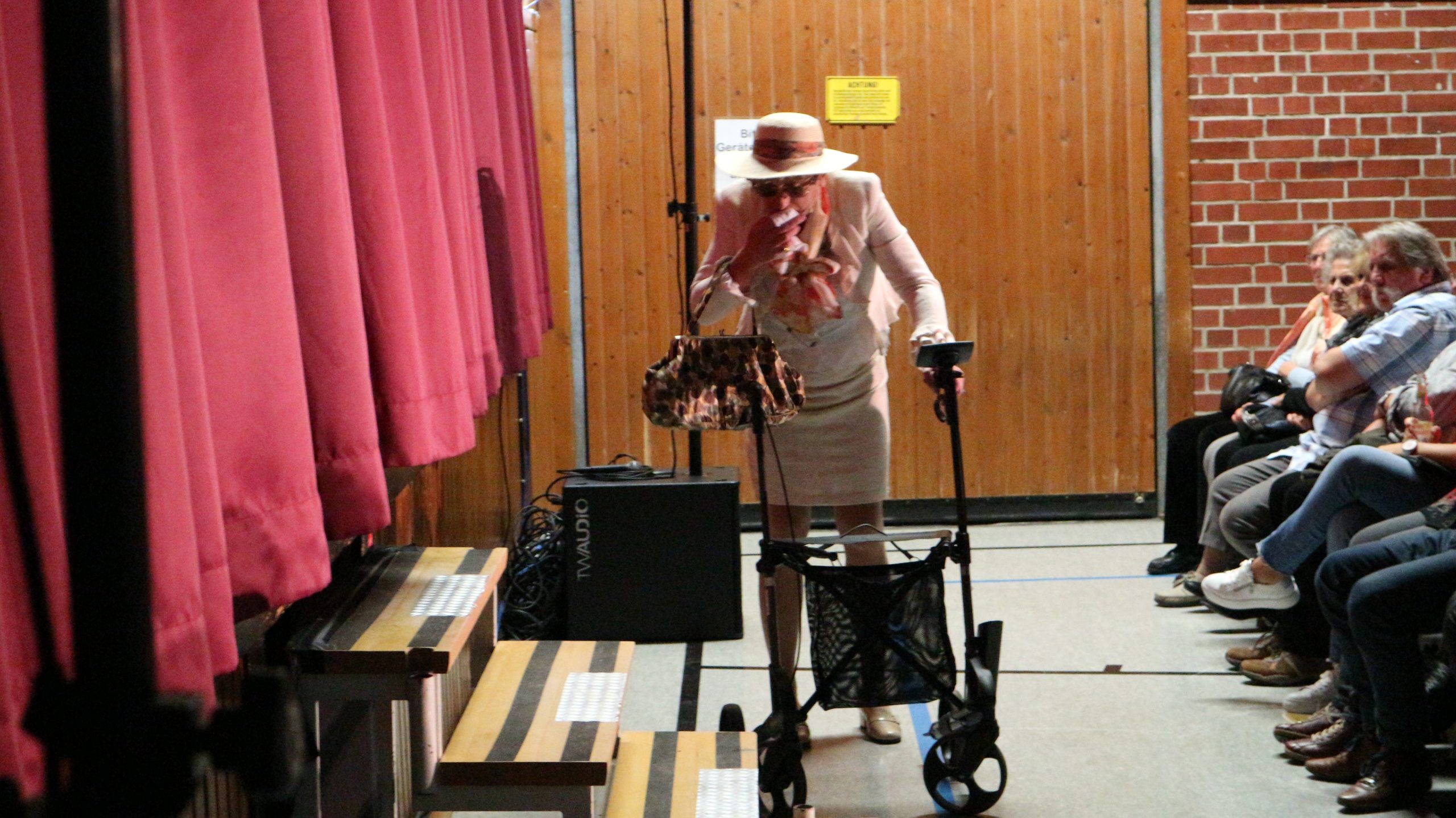 Mit einem schicken Rollator, der sogar ein Navigationsgerät hat, suchte sich die erste Bousseldande ihren Weg Richtung Publikum. In ein Kostümchen gewandet, Hütchen nebst Perücke passten einwandfrei dazu, blieb sie bei einem Gast „hängen“, fragte ihn aus und verabredete sich gleich im Anschluss an die Show mit ihm. So schick und geleckt die eine, so bodenständig und ganz und gar nicht schick die andere. In der Kittelschürze mit derbem Schuhwerk und einer Mütze auf den Haaren kam die zweite auf den Plan. Schon entwickelten sich aberwitzige Dialoge zwischen den beiden, bei denen Navigationsgeräte und Computerkurse, Internetseiten und Likes sowie der Kirchhof eine tragende Rolle spielten. „Ich habe 86 Bekannte und Freunde“, trumpfte die Kostümbousseldande auf und von jedem wisse sie, was er gerade mache. Das sei keine große Kunst, schnappte die andere zurück, das wisse sie auch. „Die liege alle uffem Kirchhof“, so die Pointe. Dass man Männer am besten in der Kurzzeitpflege kennenlernen kann, dass Nussschokolade und Gebiss sich nicht wirklich vertragen und dass der Hit von Schlagersängerin Gitte, „Ich will keine Schokolade“, auch bei einem Mundartabend gut ankommen, bewiesen sie bestens. Für Rainer Holl, den Vorsitzenden des Vereins Eschbacher Ortsgeschichte, der beste Beweis dafür, dass Mundart immer noch immens wichtig ist. Er ermunterte die Gäste dazu, selbst Mundart zu sprechen und so das kulturelle Erbe der Region hochzuhalten.