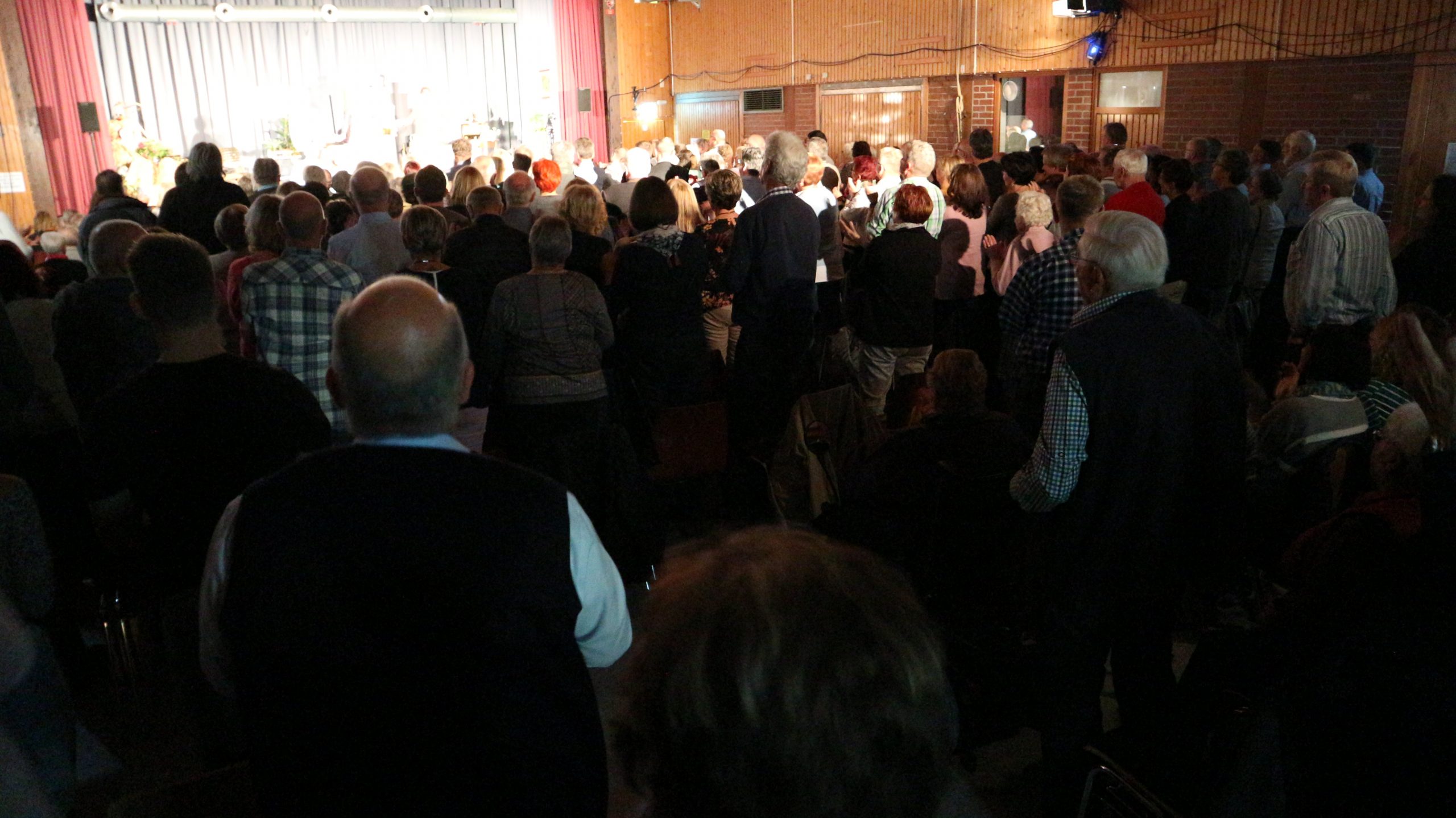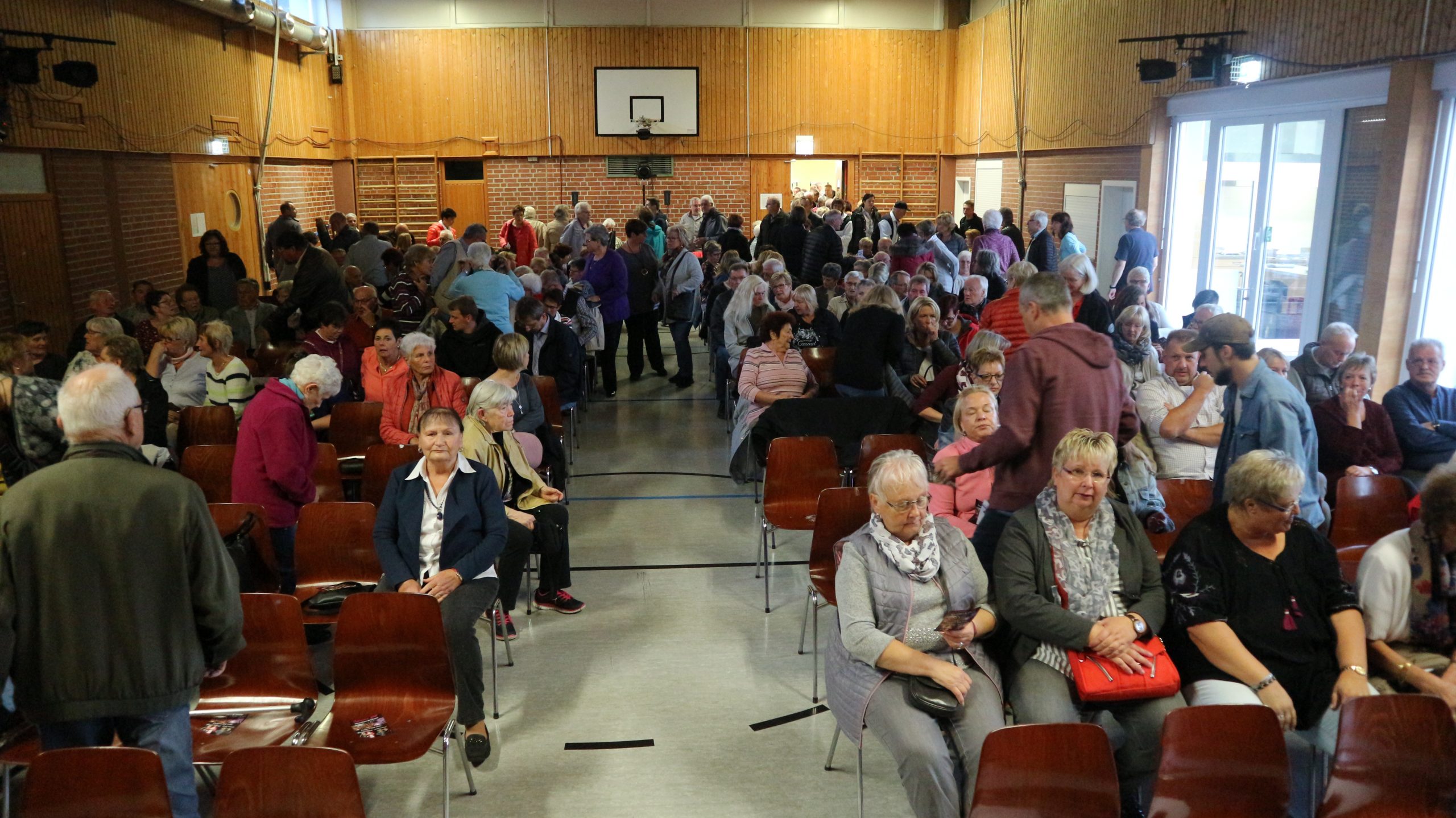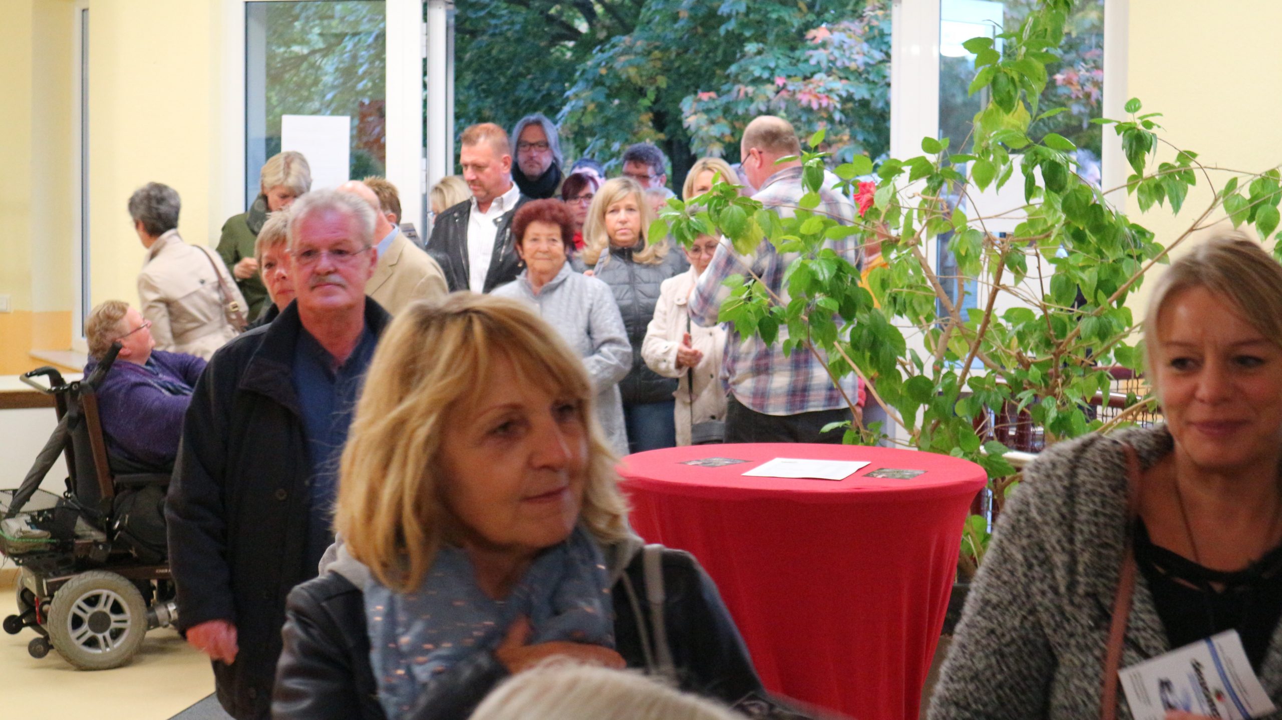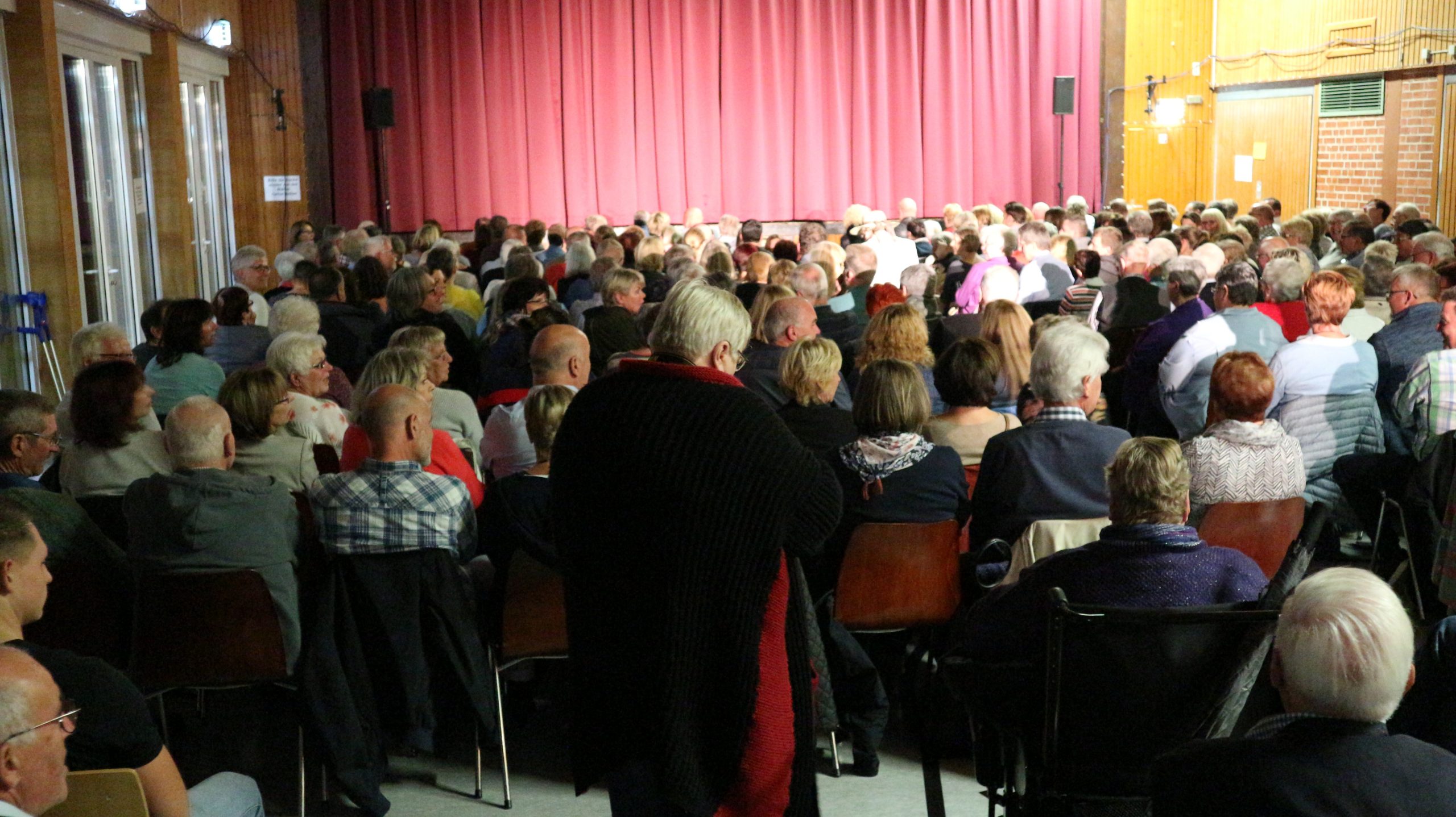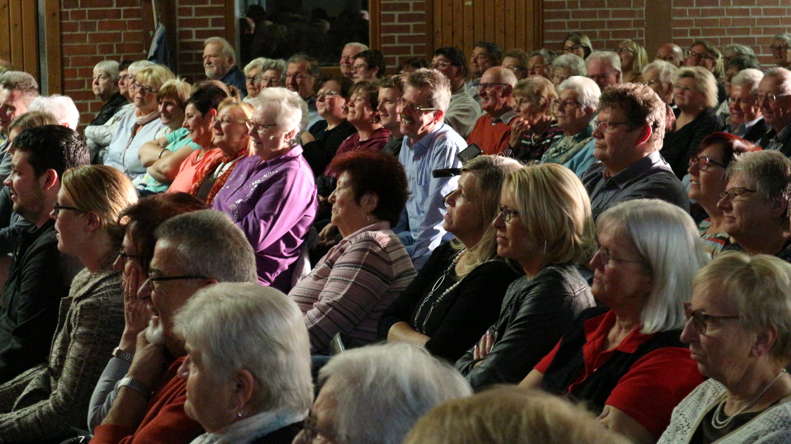 Pünktlich um 18:30 Uhr drängen sich die Besucher aus Nah und Fern in das Bürgerhaus.