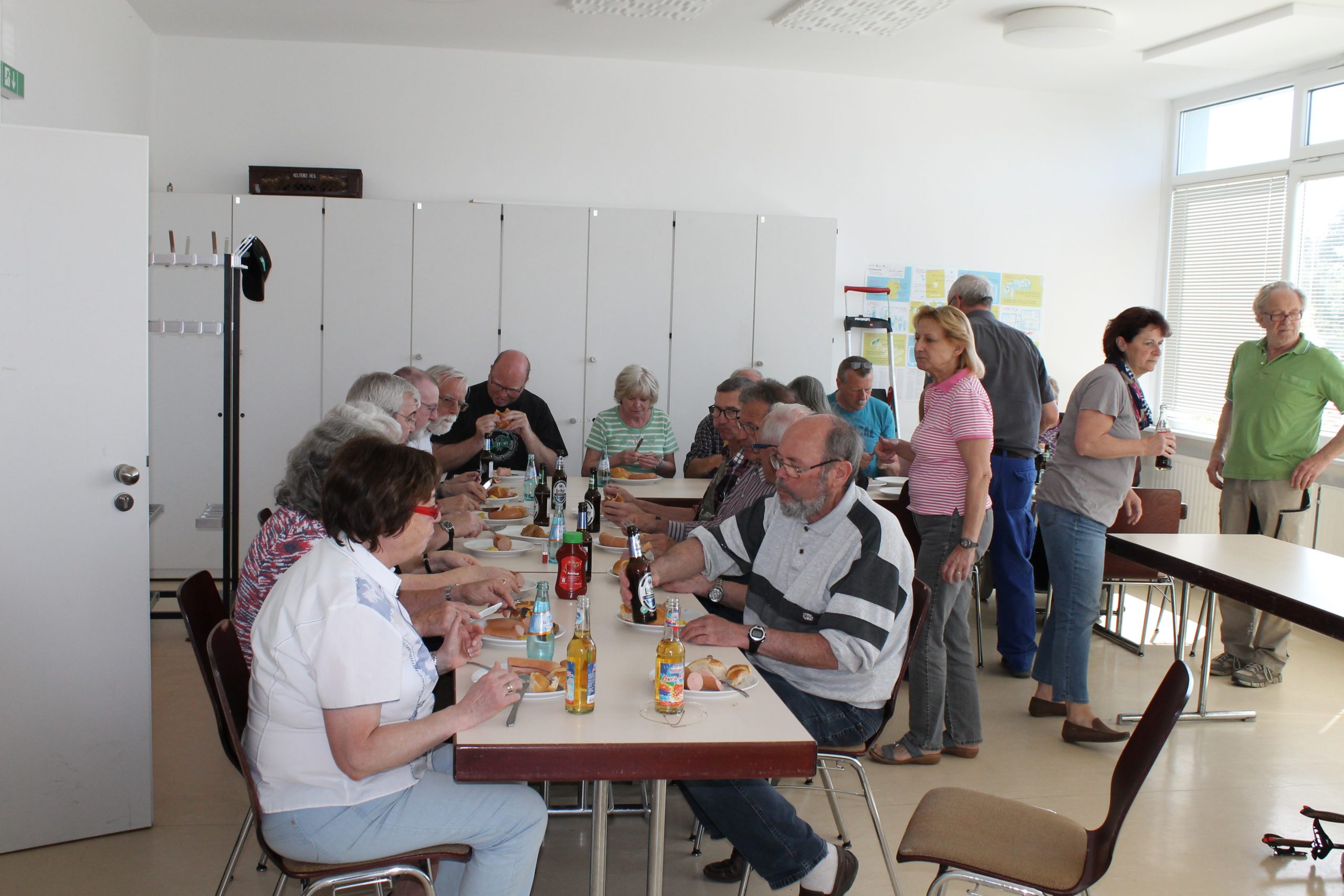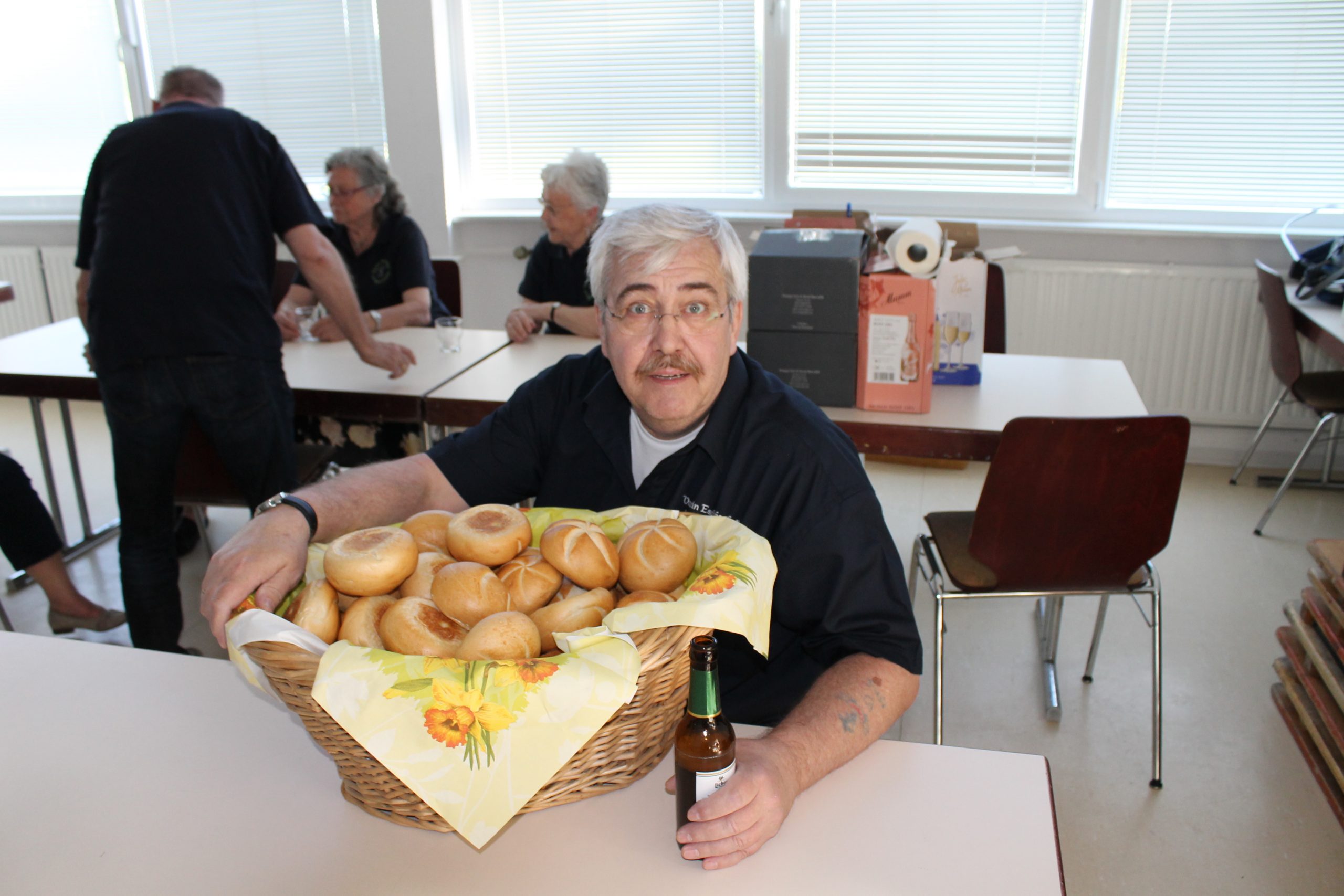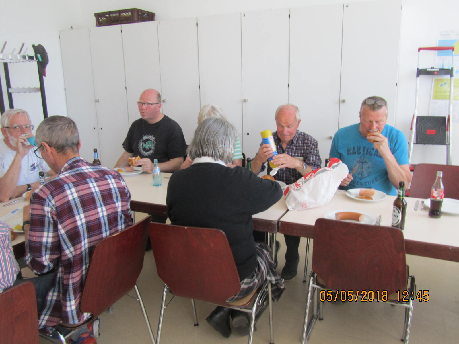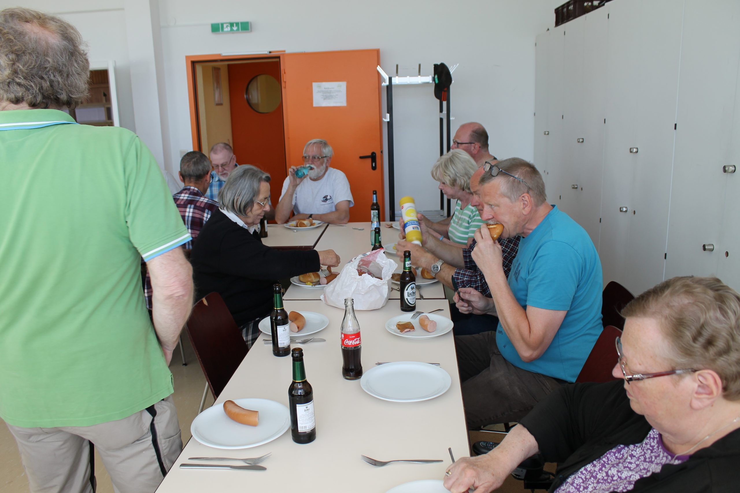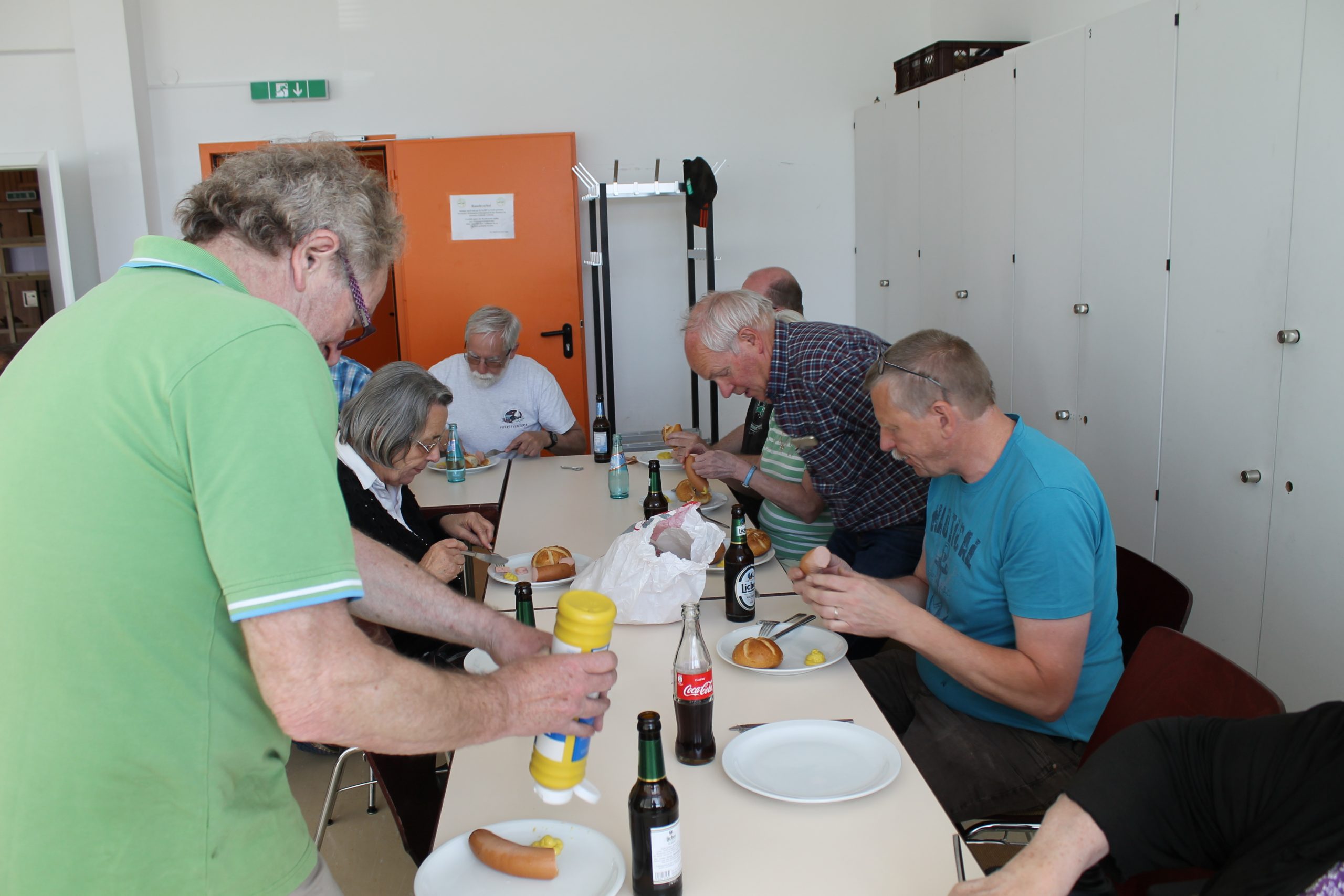 PAUSE! Um 12:20 Uhr nahmen alle Mitstreiter  ein kleines Vesper zur Stärkung ein, bevor der Aufbau weiter vorangetrieben wurde.