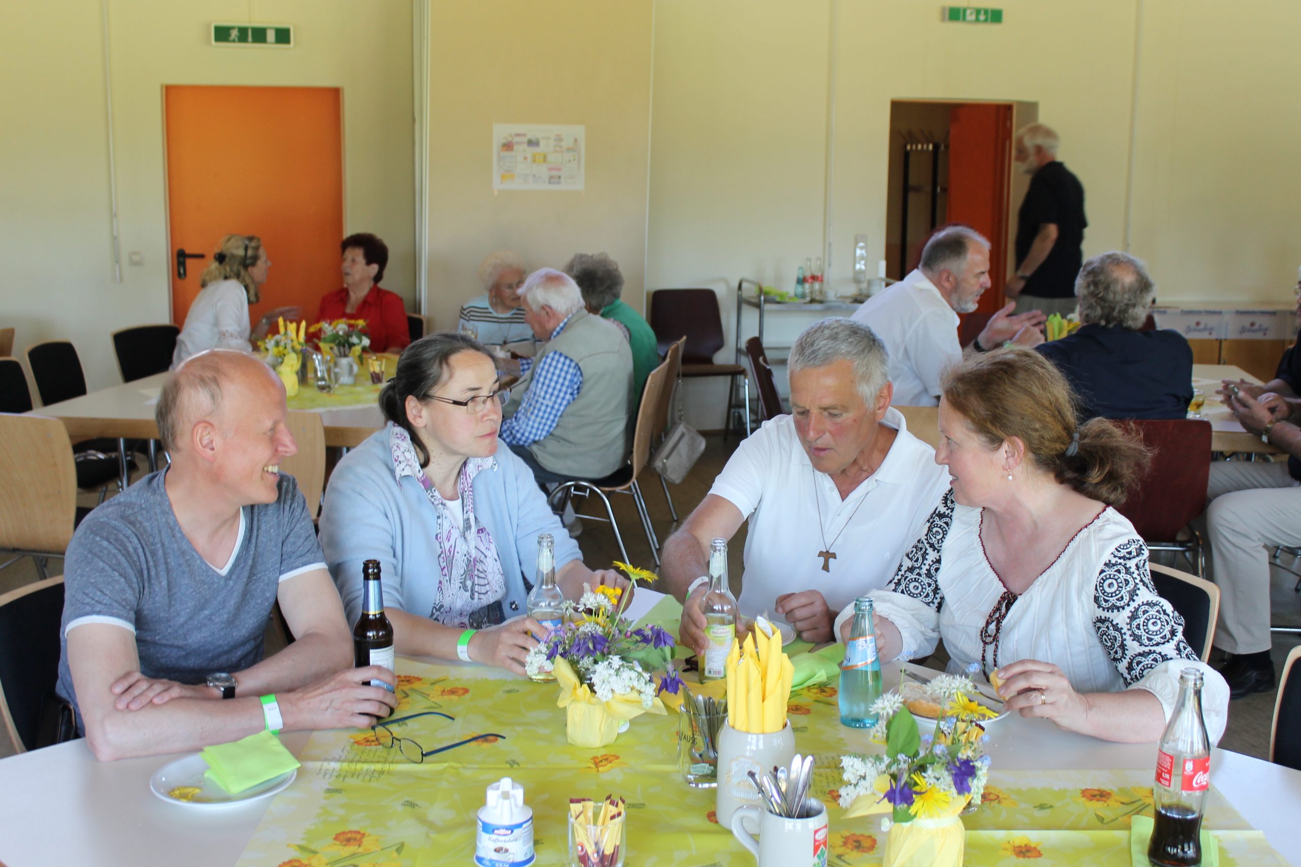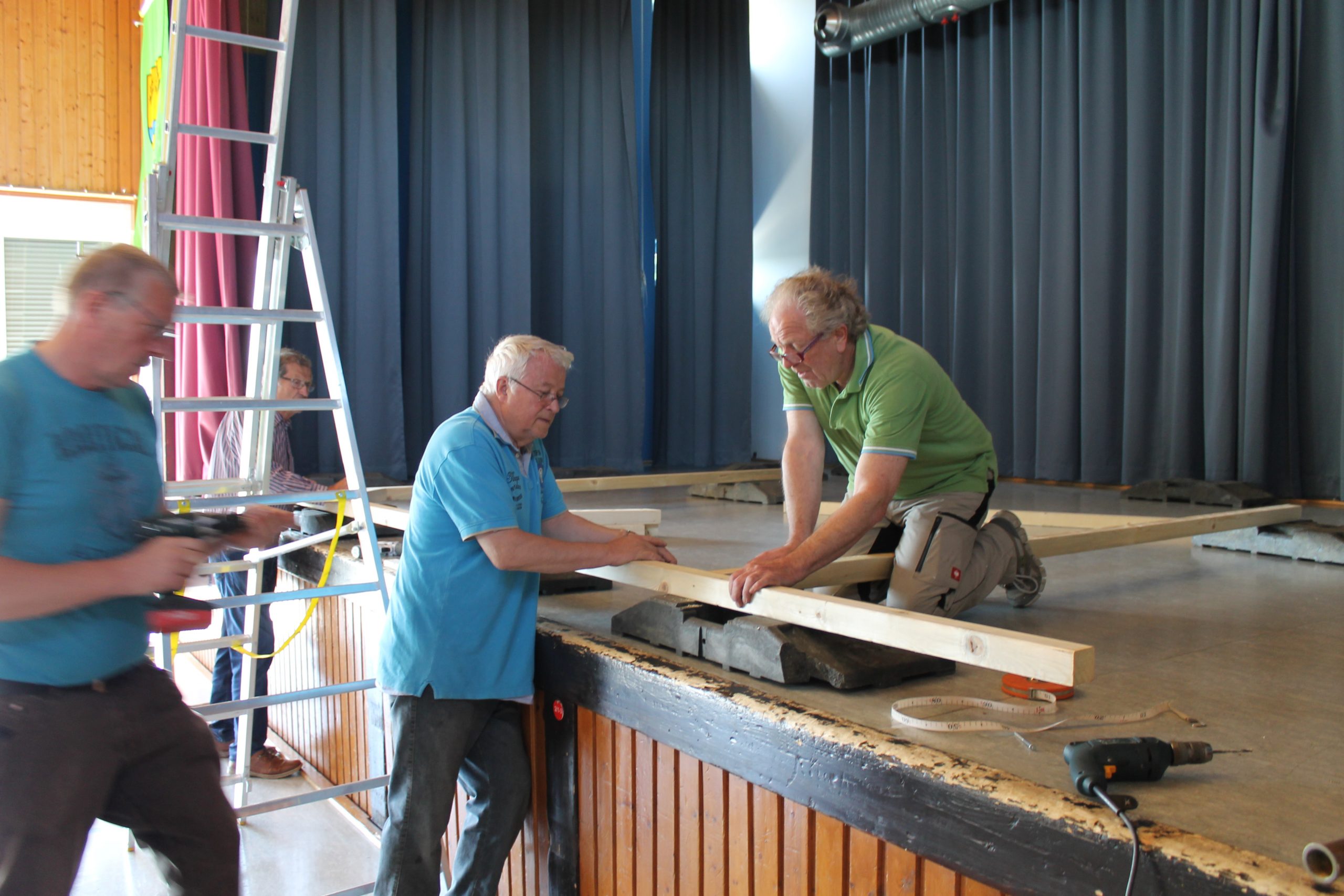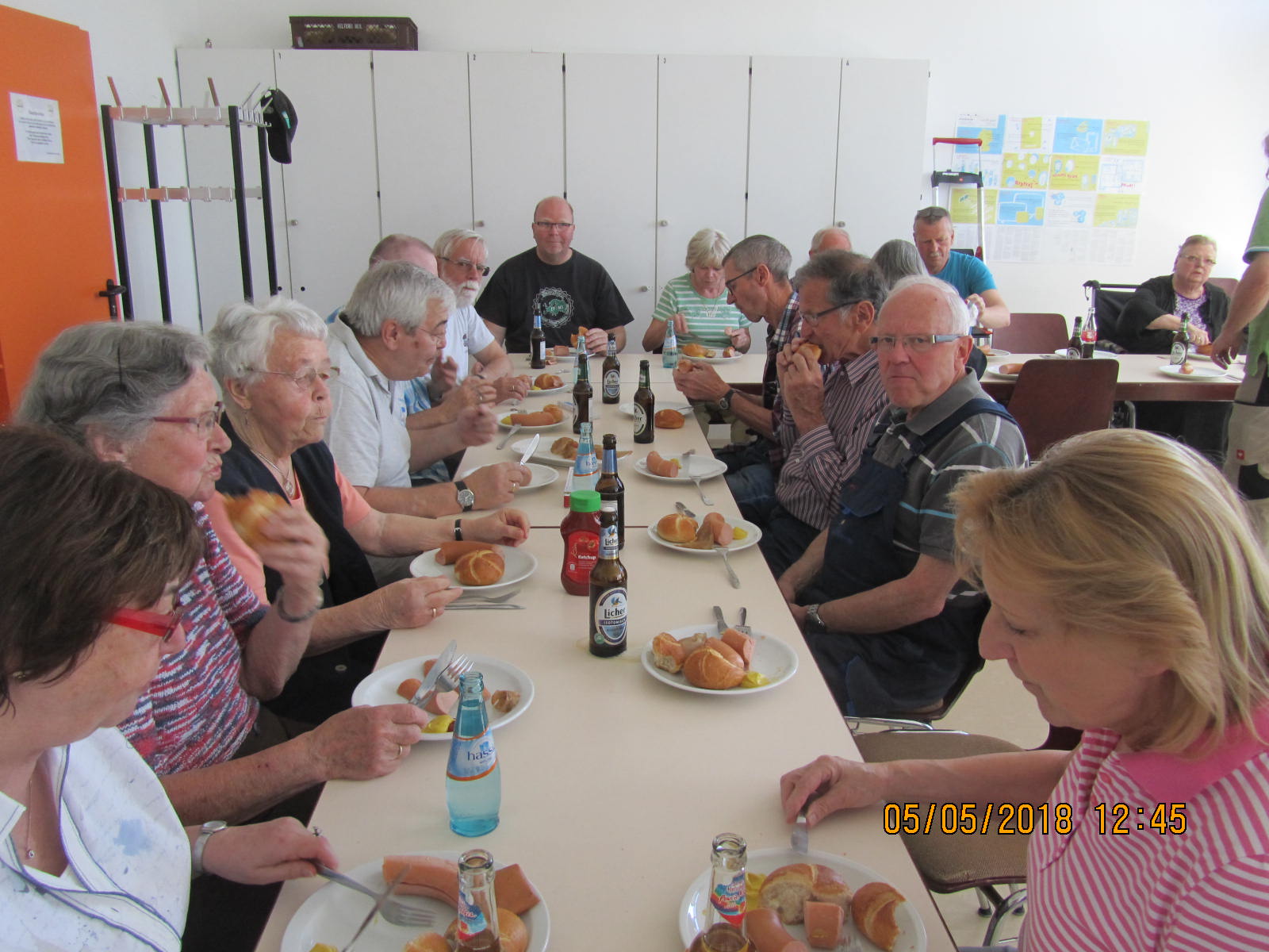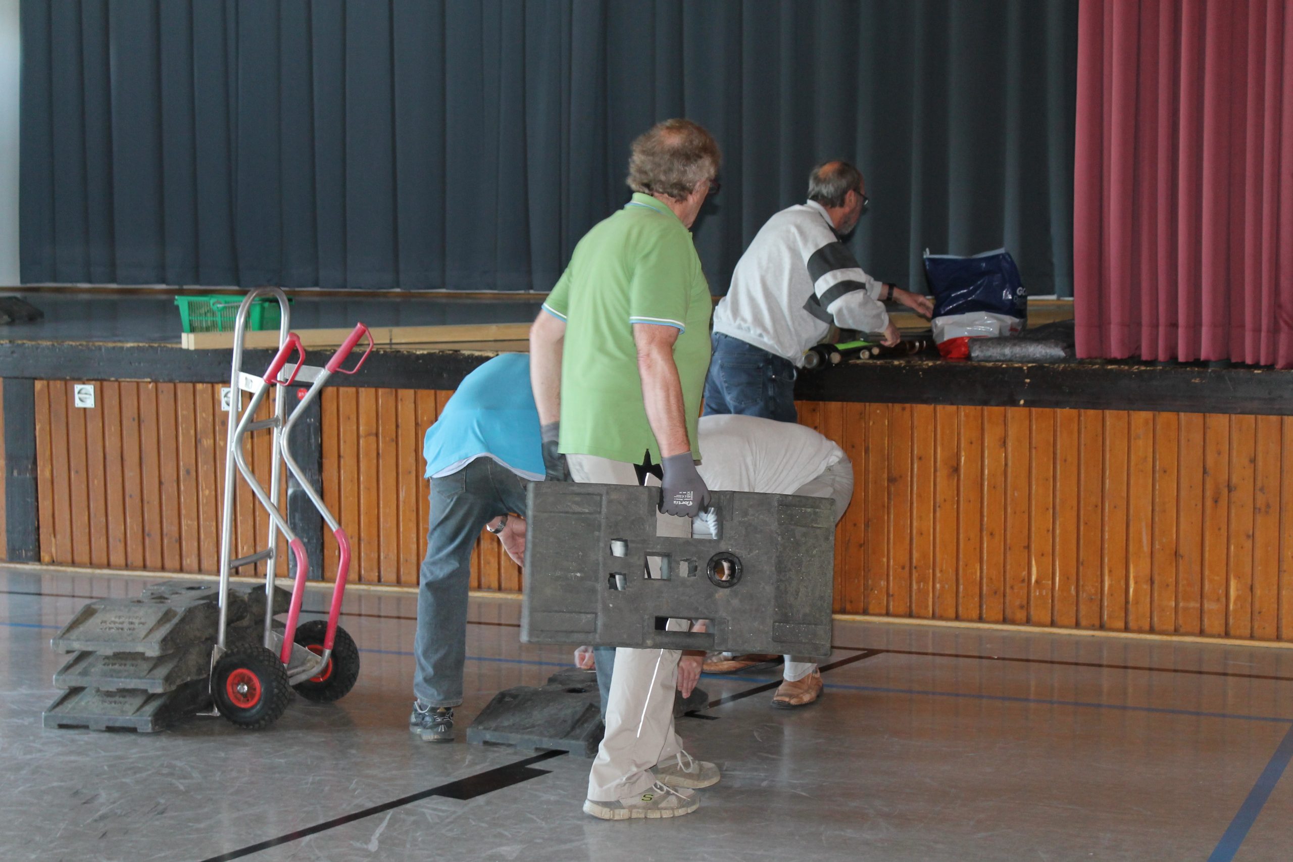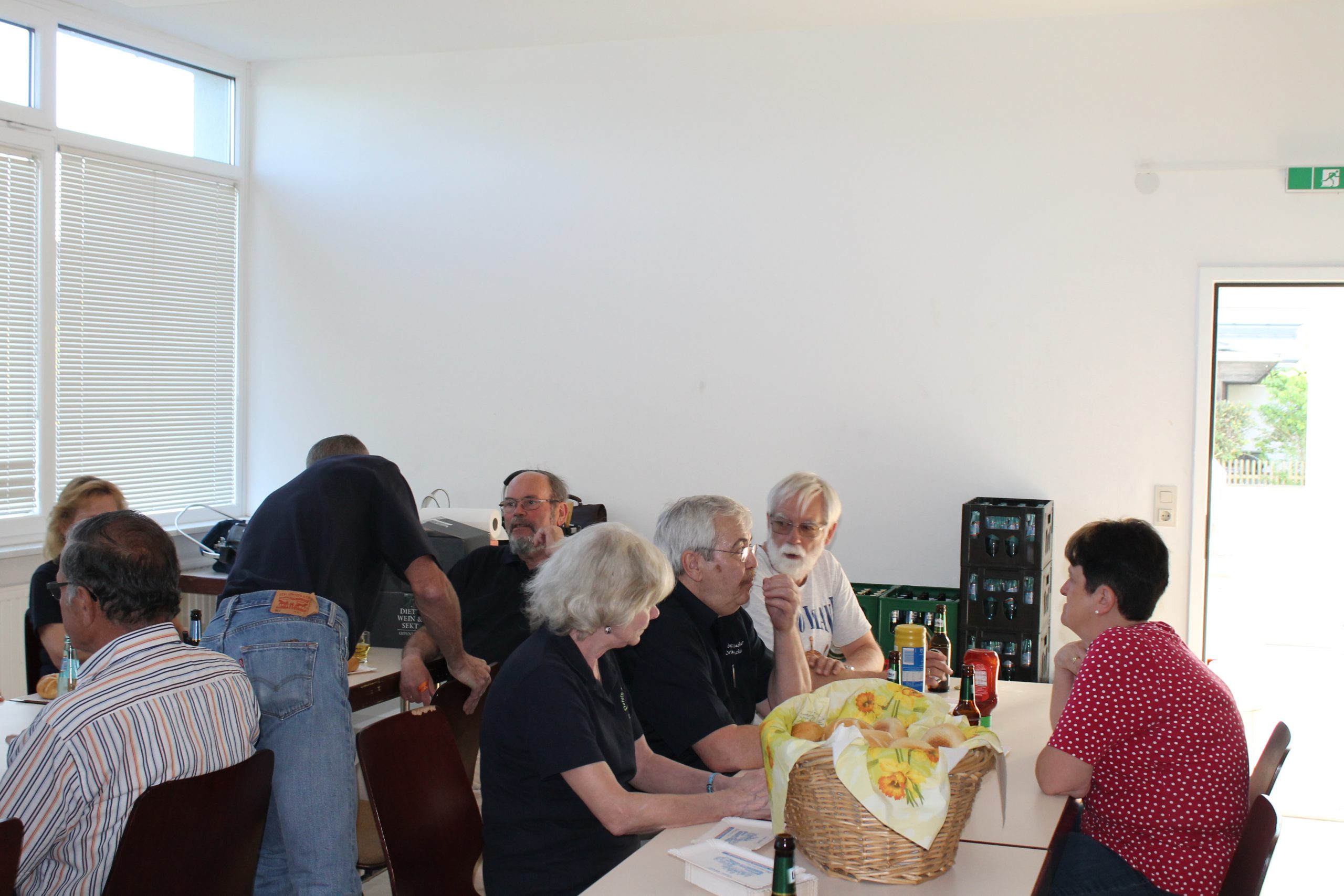 PAUSE! Um 12:20 Uhr nahmen alle Mitstreiter  ein kleines Vesper zur Stärkung ein, bevor der Aufbau weiter vorangetrieben wurde.