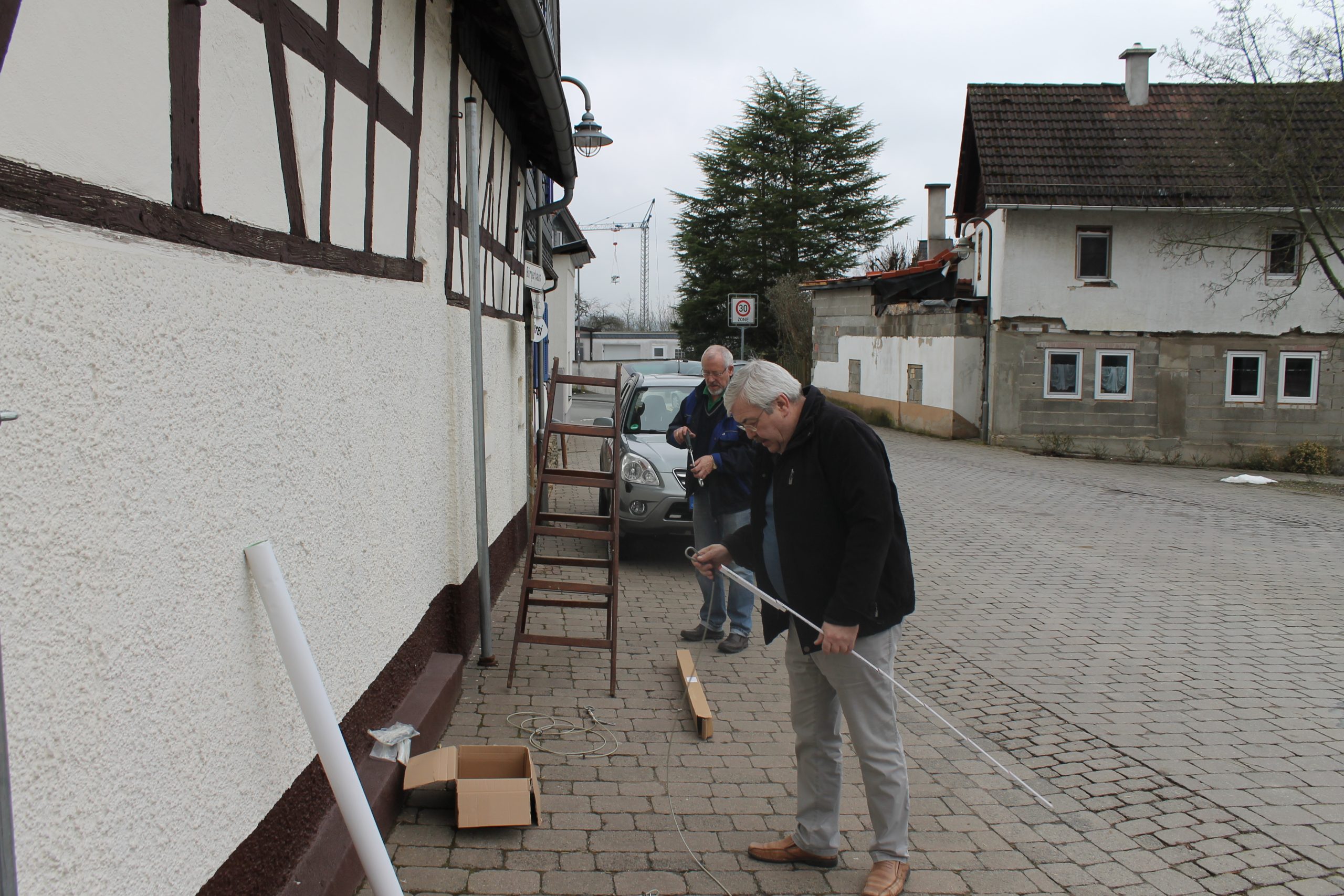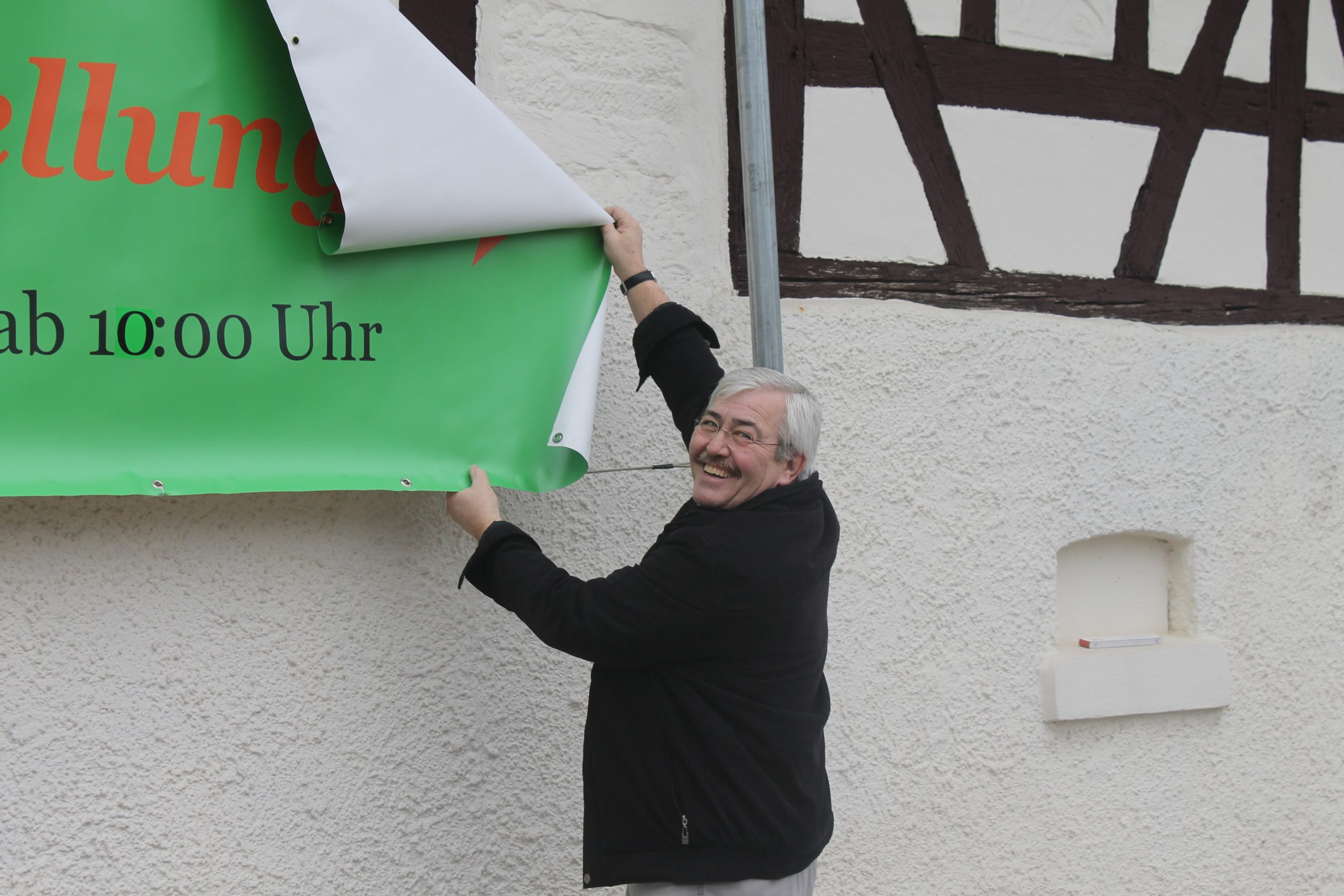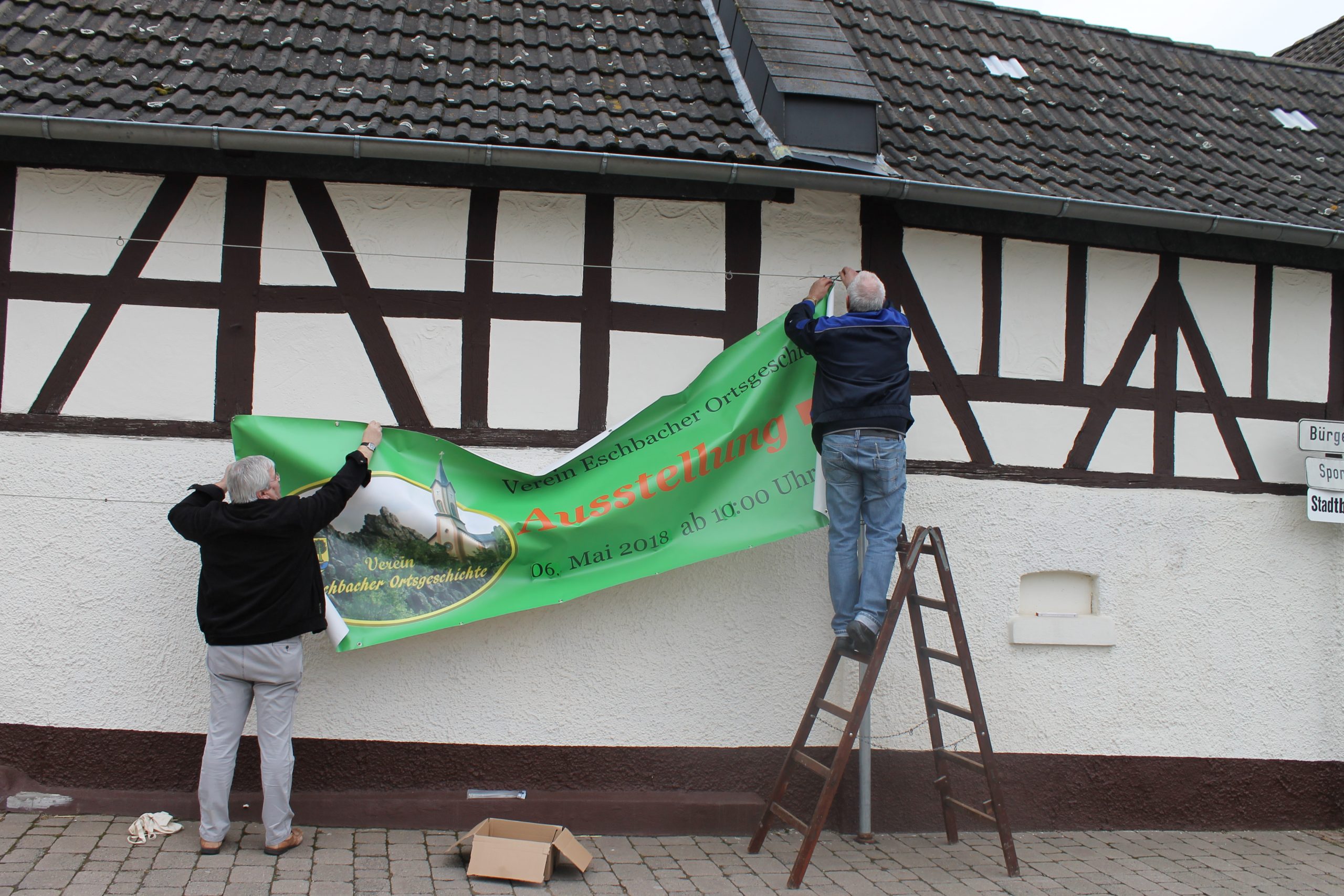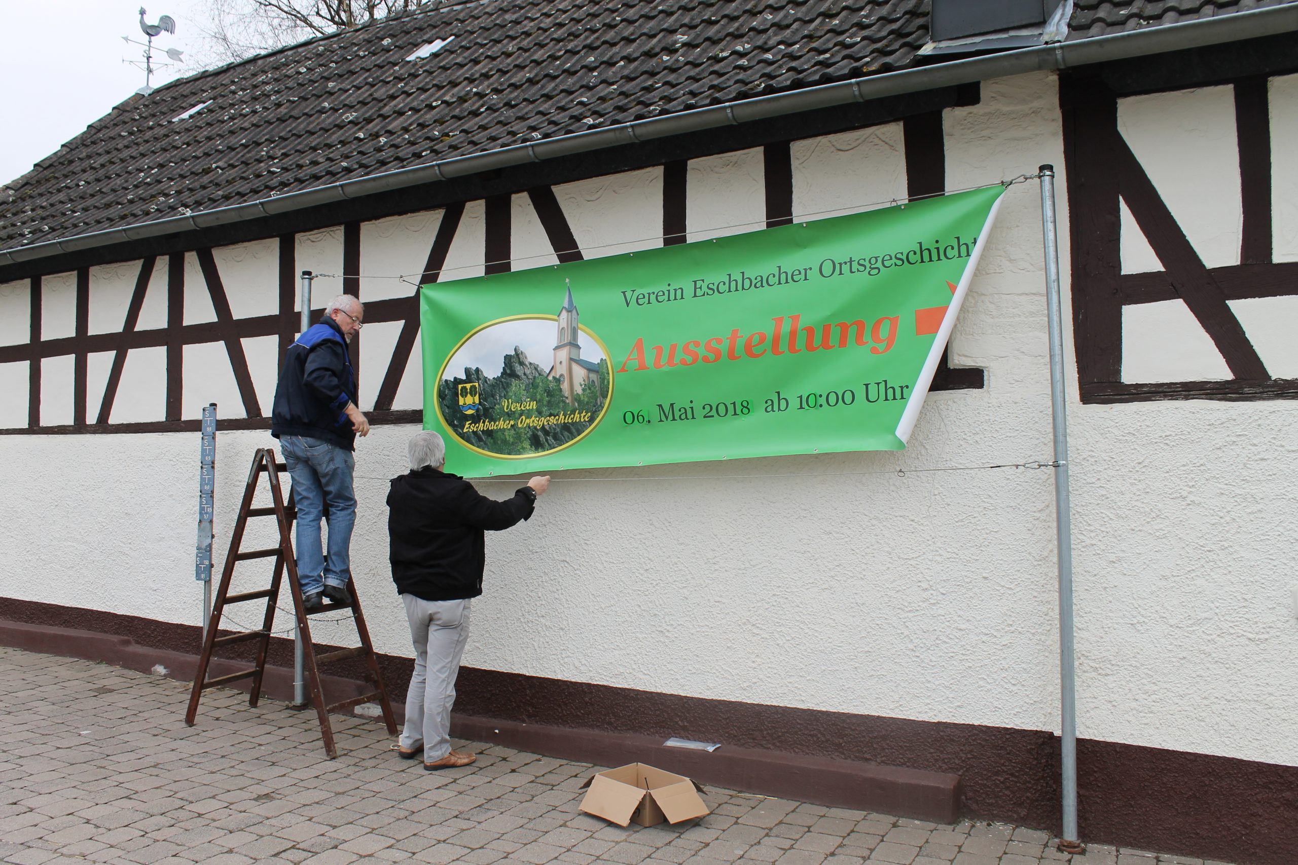 Bereits Mittwoch, den 23.03.2018 hängten Ortwin Ruß und Ronny Löw den Ausstellungs-Banner an der Bushaltestelle Kirche.