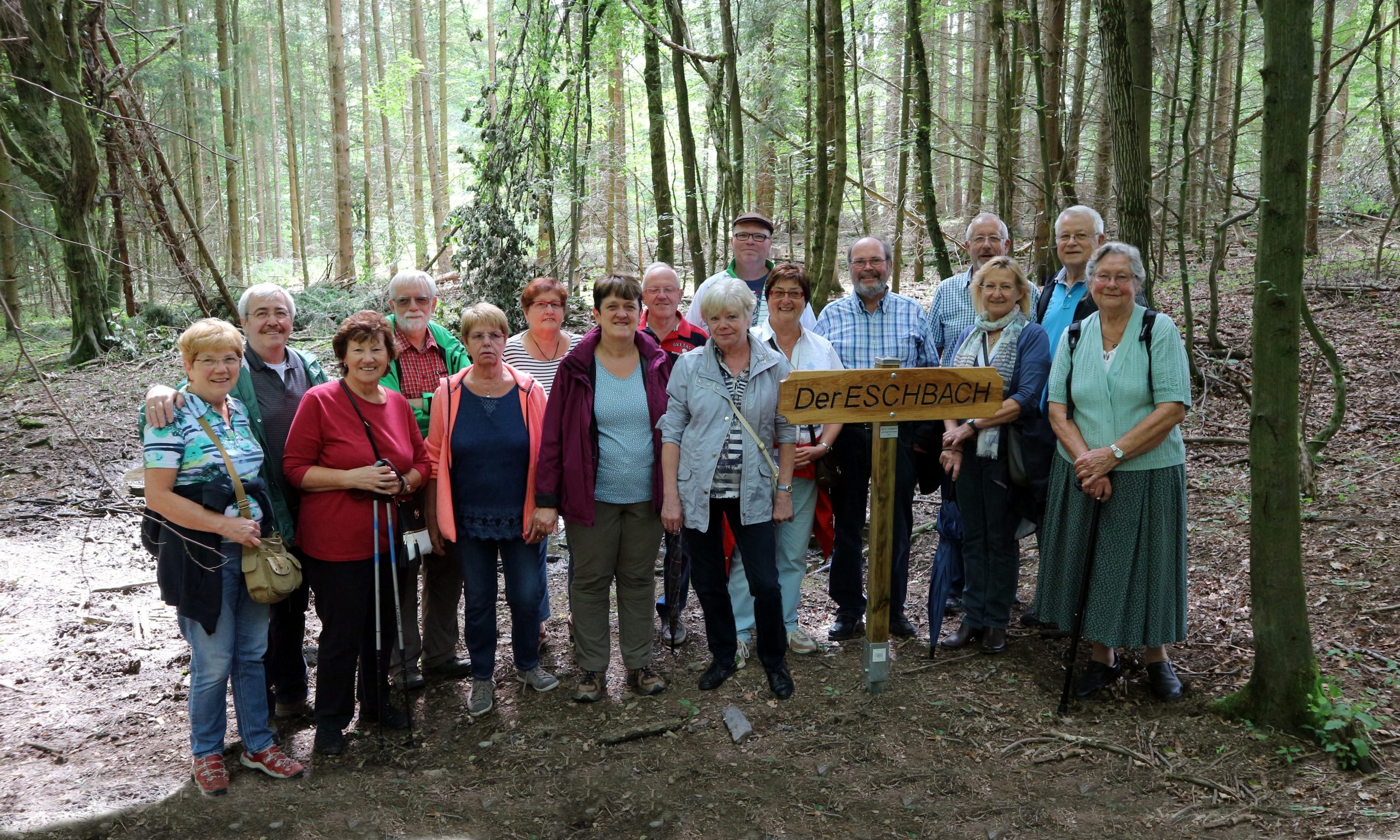 Am Samstag, den 15.07.2017 trafen sich 16 Mitglieder des Vereins Eschbacher Ortsgeschichte mit ihren Partnern um 15:00 Uhr im Maibacher Weg, um gemeinsam dem Lauf des Eschbachs von der Quelle zu folgen.