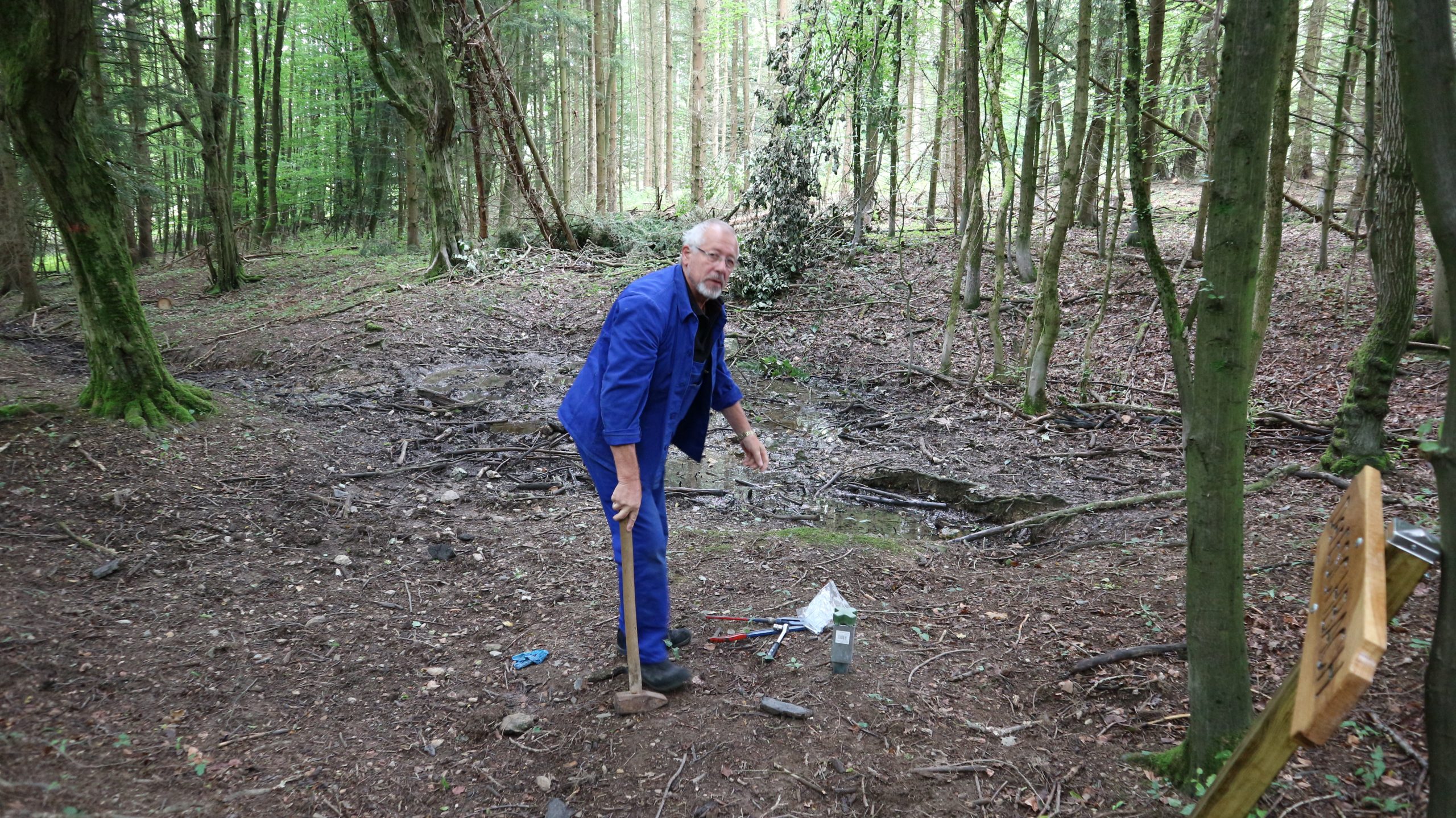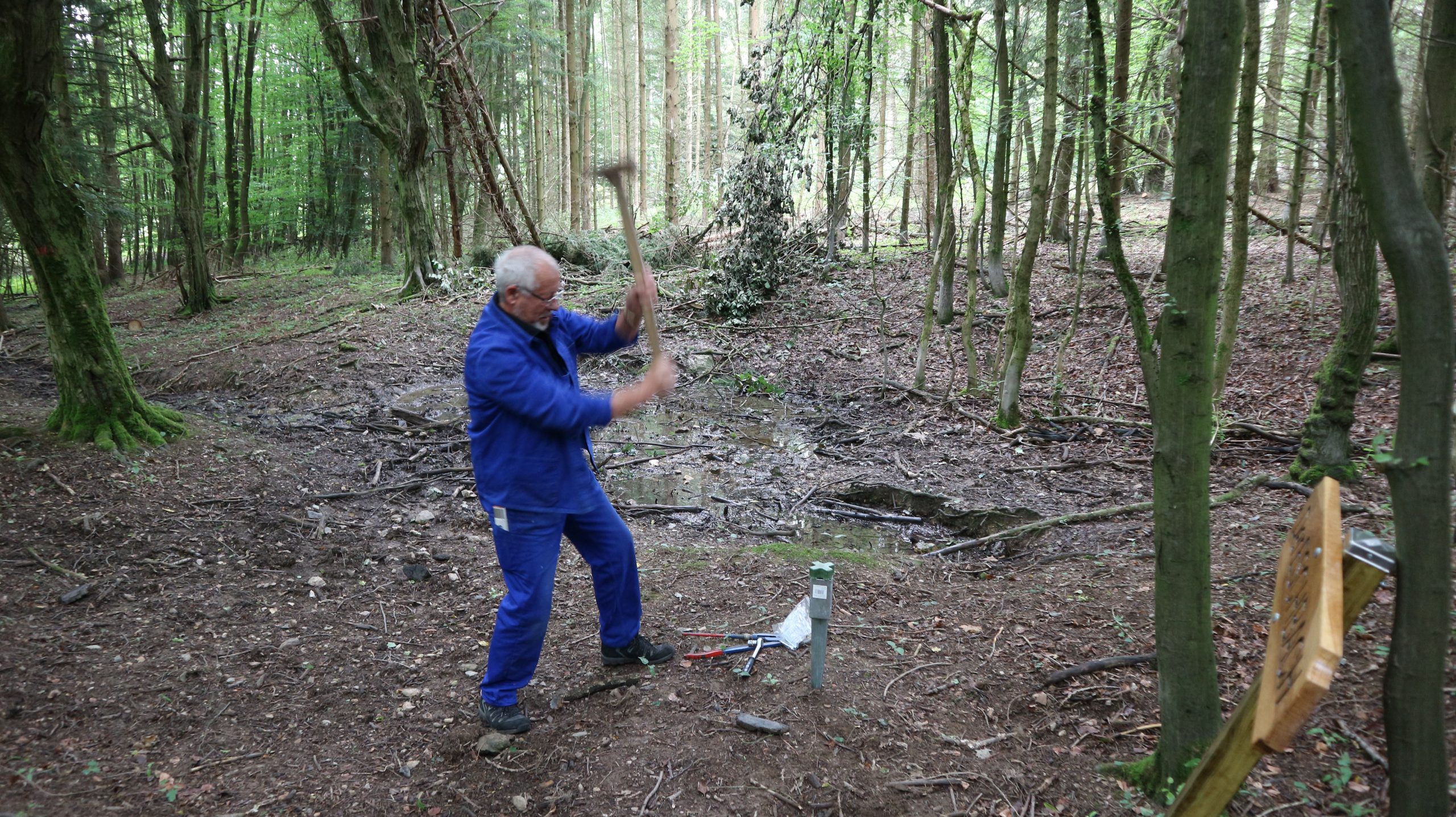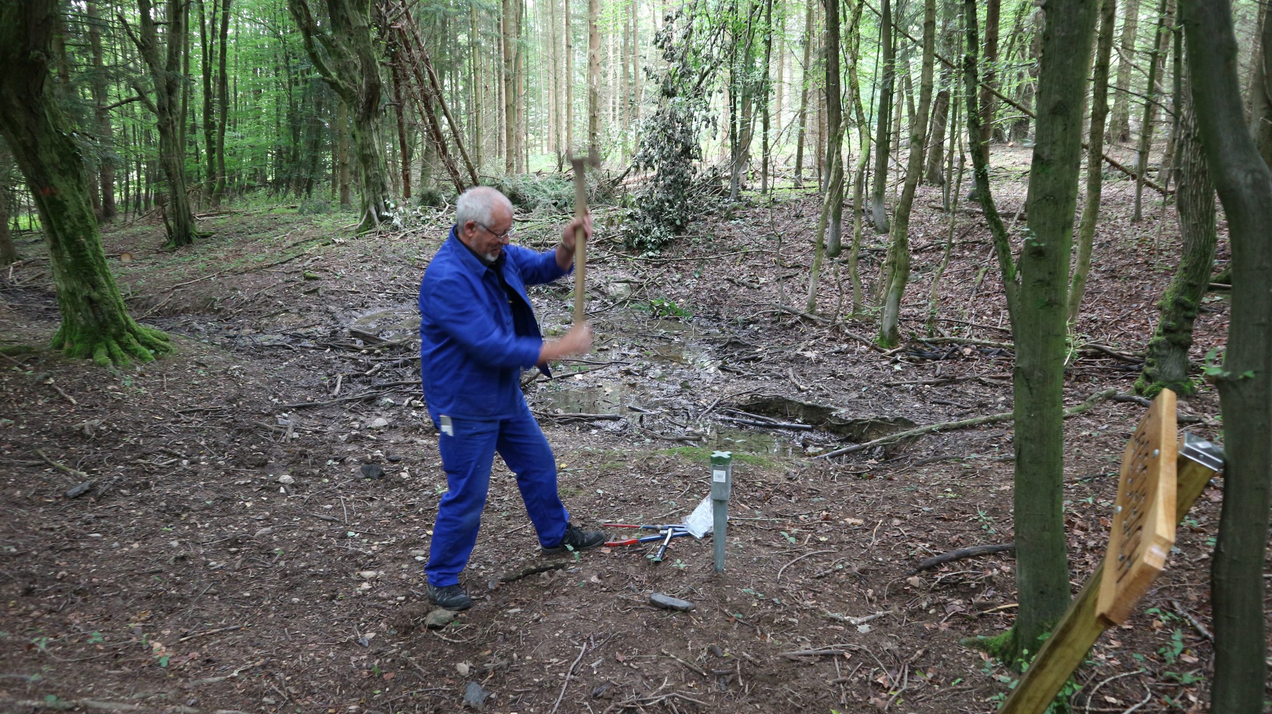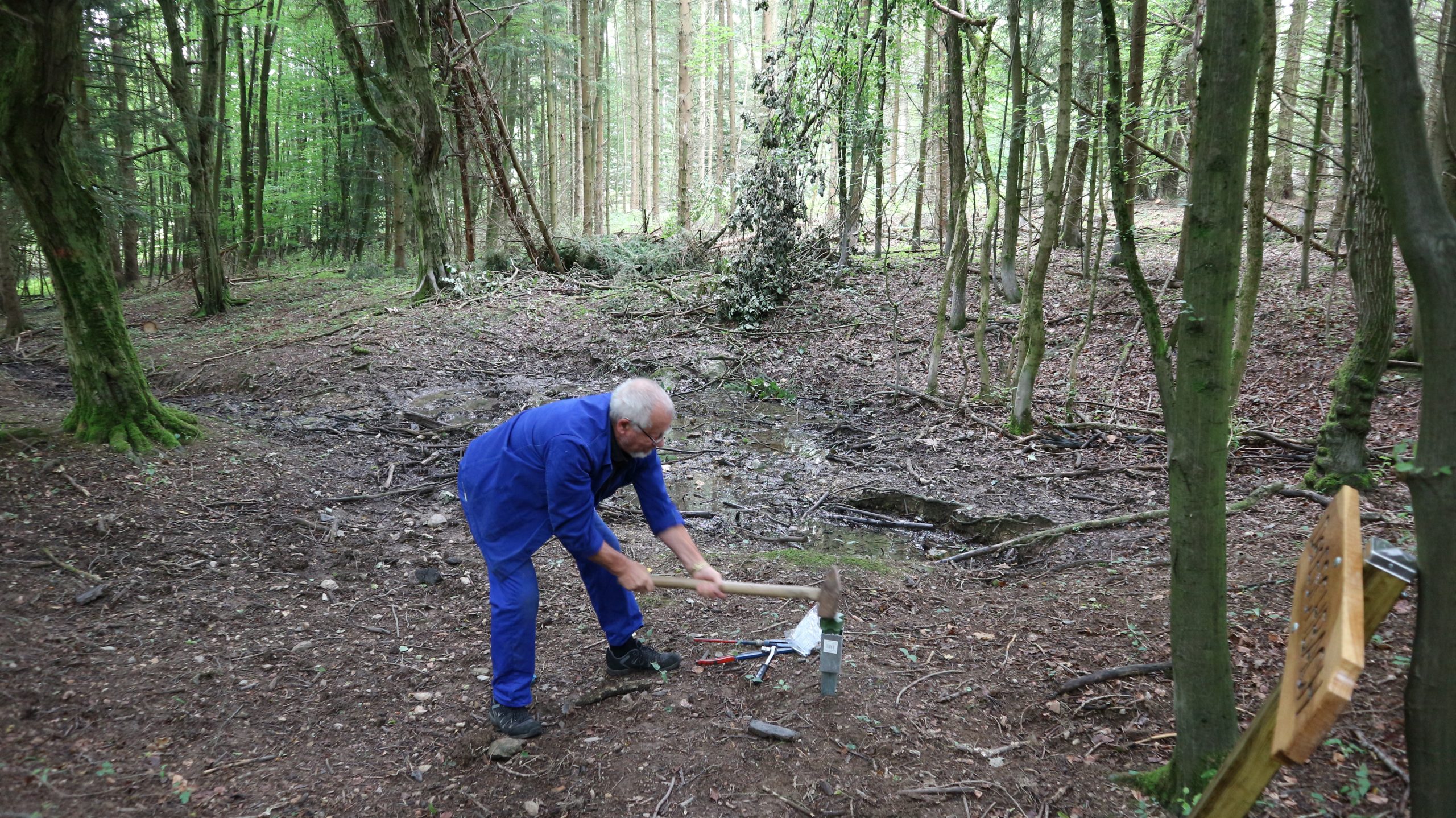 Am 27.04.2017 trafen sich Förster Mathias Groß und Ronny Löw zur Besichtigung der Quelle. Um ein Hinweisschild aufstellen zu dürfen, bedarf es der Erlaubnis des Försters.