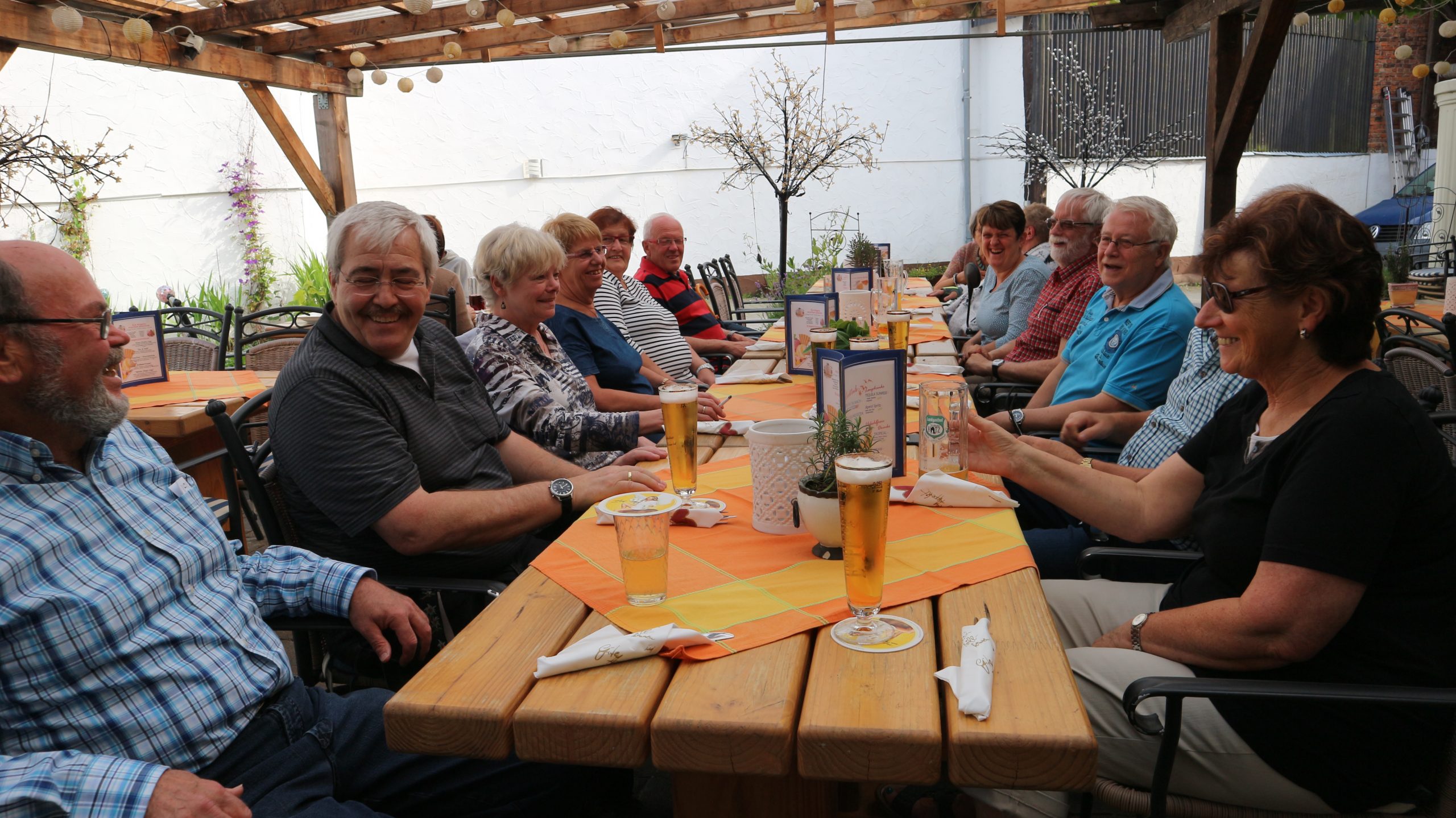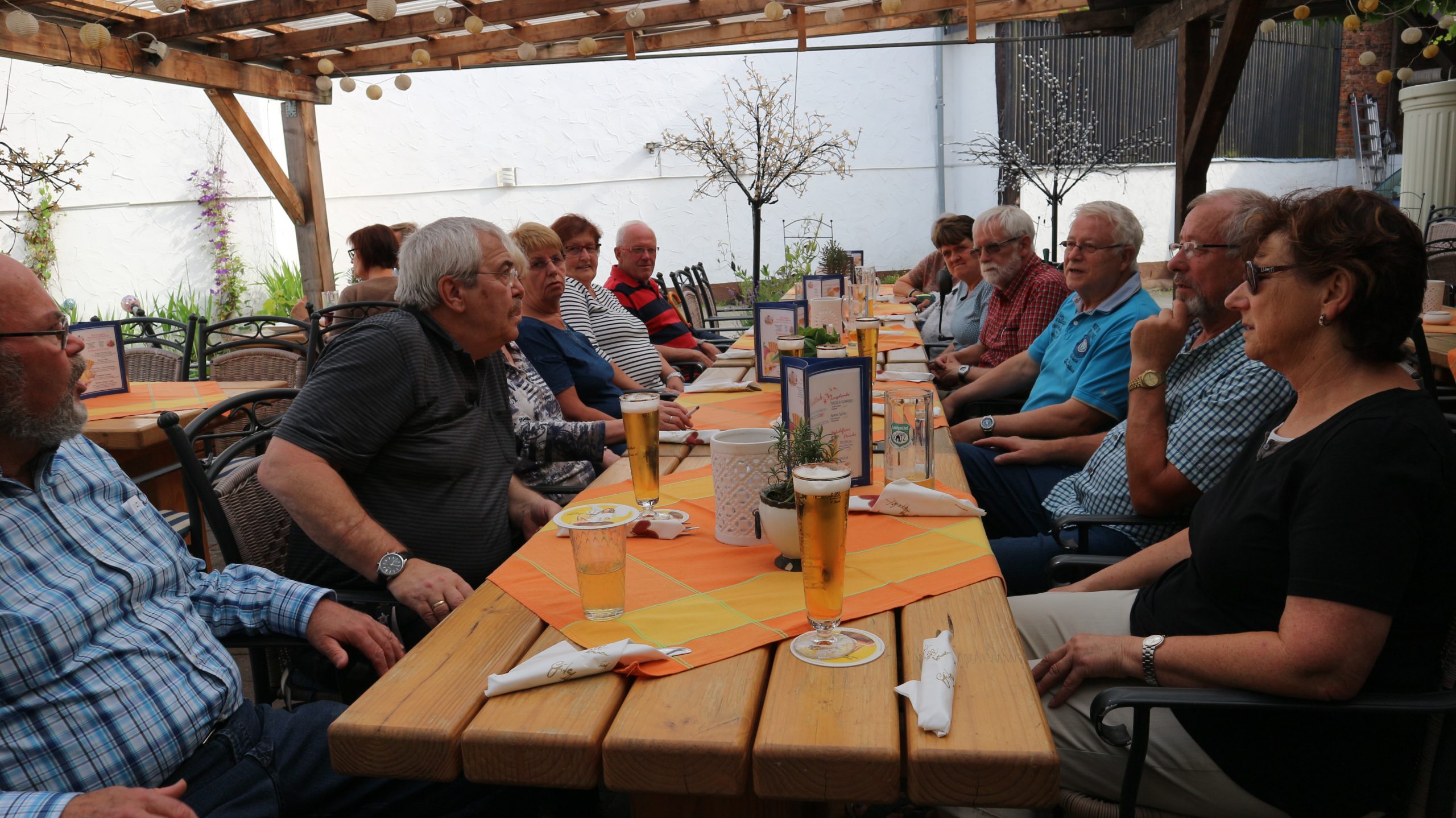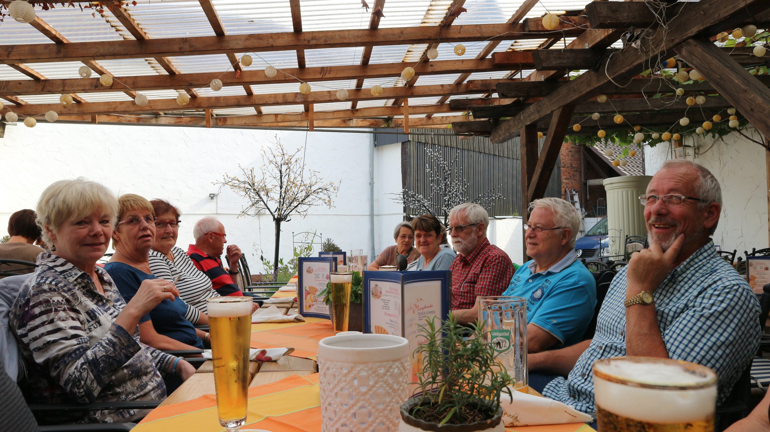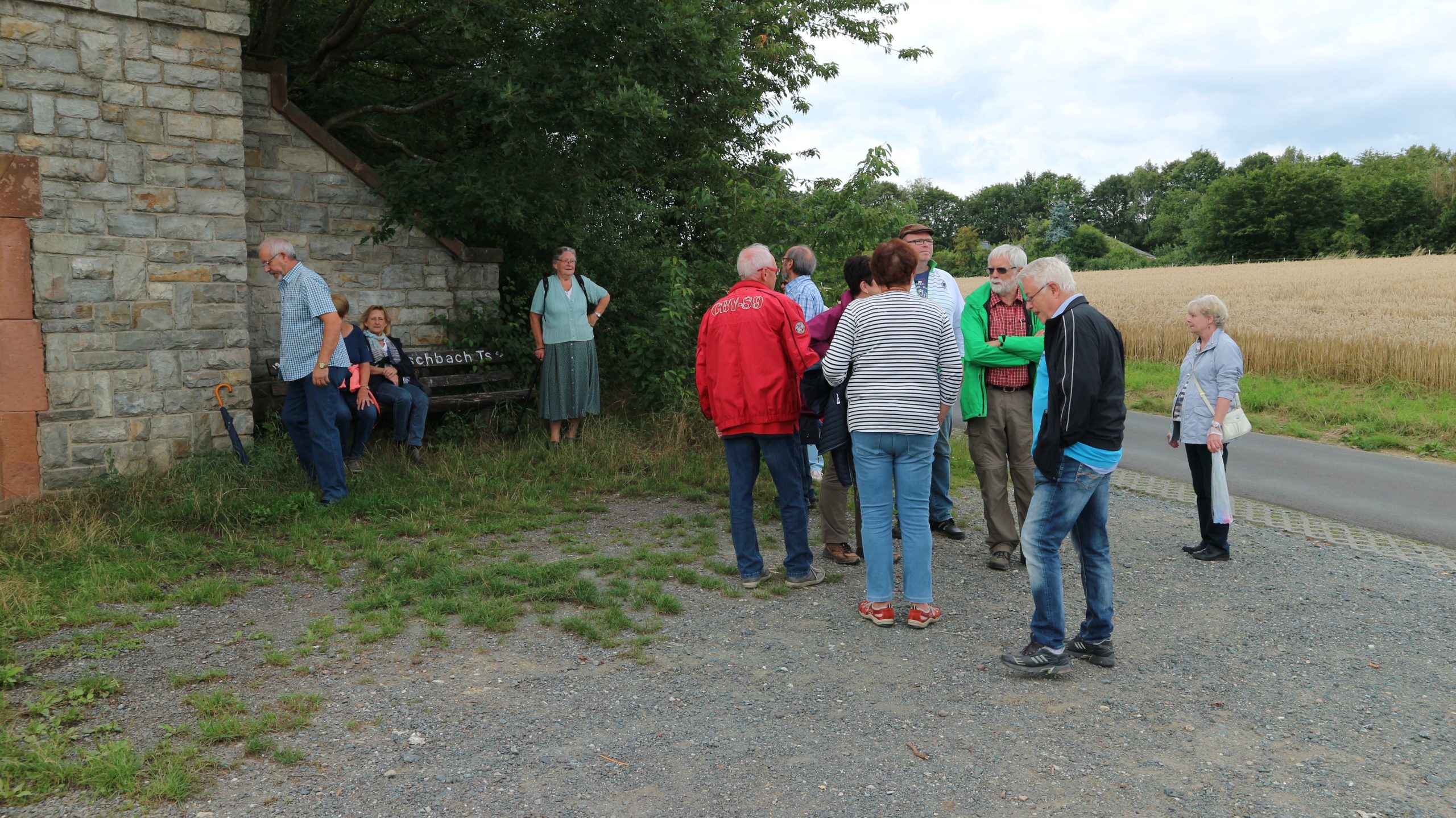 Die Gruppe allerdings nahm einen kürzeren Weg durch die Hohlstraße bis zur Eschbacher Katz, wo sie die interessante Wanderung gemütlich bei einem Gläschen Revue passieren ließ.