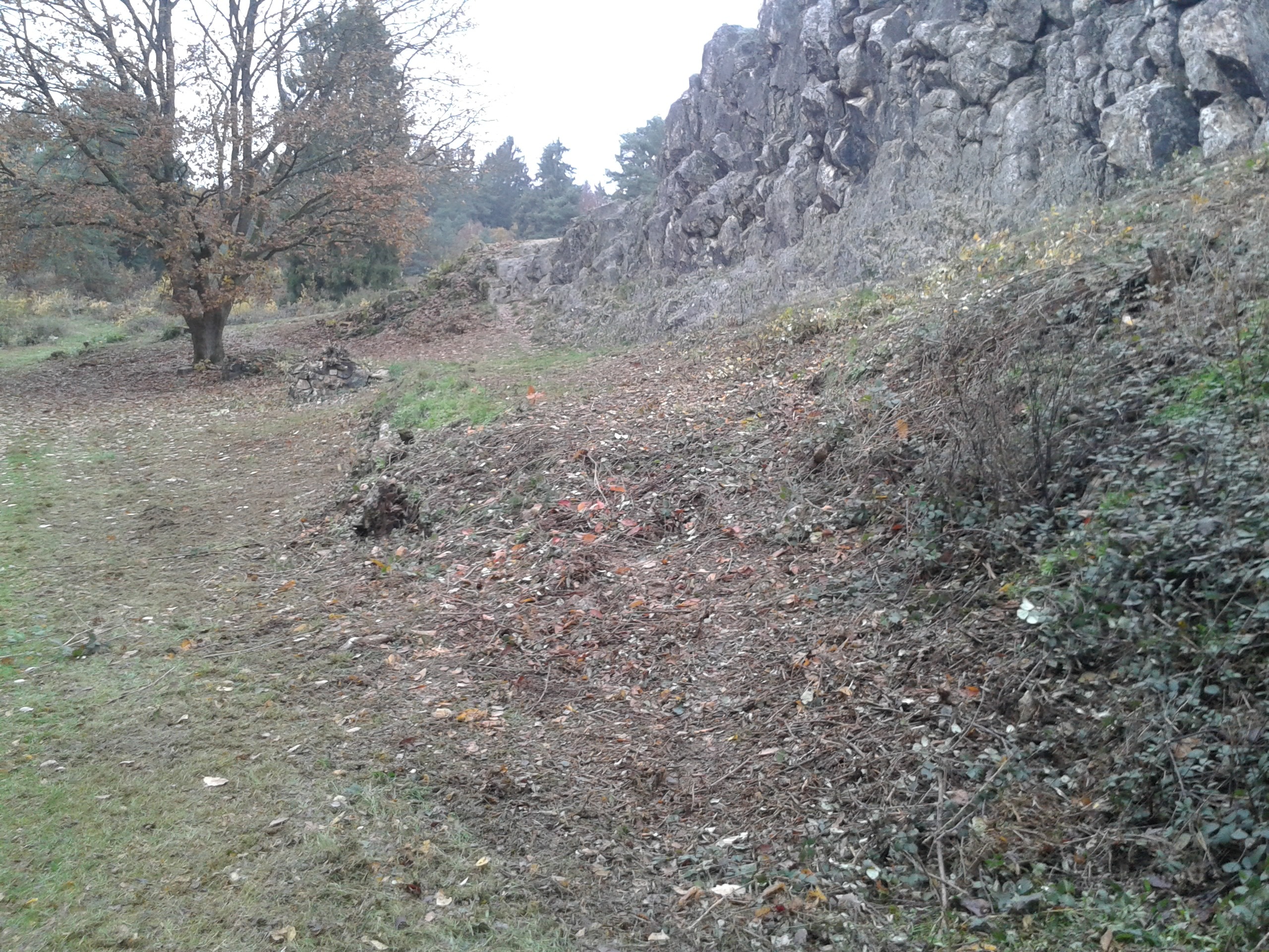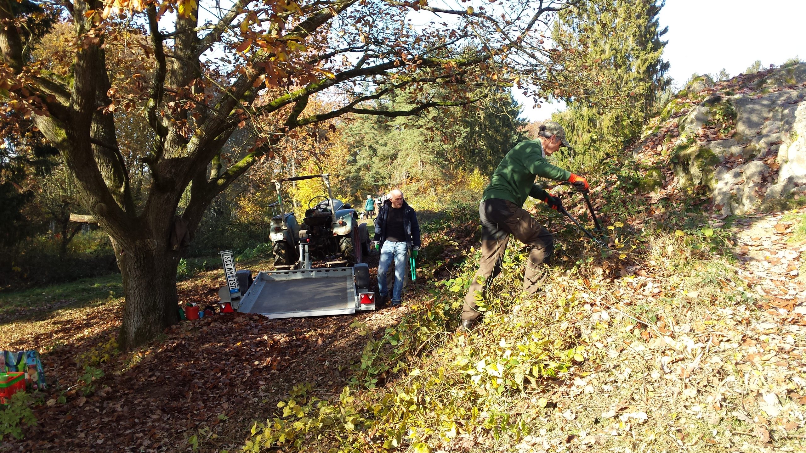 Das abgeschnittene Ast- und Buschwerk beförderten die Vereinsmitglieder zum Abschluss am Nachmittag an den von Naturpark vorgesehenen Platz westlich des Felsens. Es wird dort den Tieren als Unterschlupfmöglichkeit dienen.