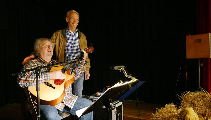 Nach der Begrüßung durch unseren 1. Vorsitzenden Reiner Holl begann Siegward Roth aus den Buch “E Geschicht fier sich” vorzulesen. Nach 30 Minuten wechselte er den Platz mit Berthold Schäfer, der dann in die Saiten seiner Gitarre griff. In der Pause konnten die Besucher sich mit frischgebackenen Brezeln und Laugenstangen stärken und für den Durst gab es allerlei Getränke im Angebot. Danach laß Siegward Roth für weitere 30 Minuten aus seinem neuen Buch “Band 2” und Berthold Schäfer übernahm und krönte das Ende der Veranstaltung mit weiteren hessischen Liedern auf platt.