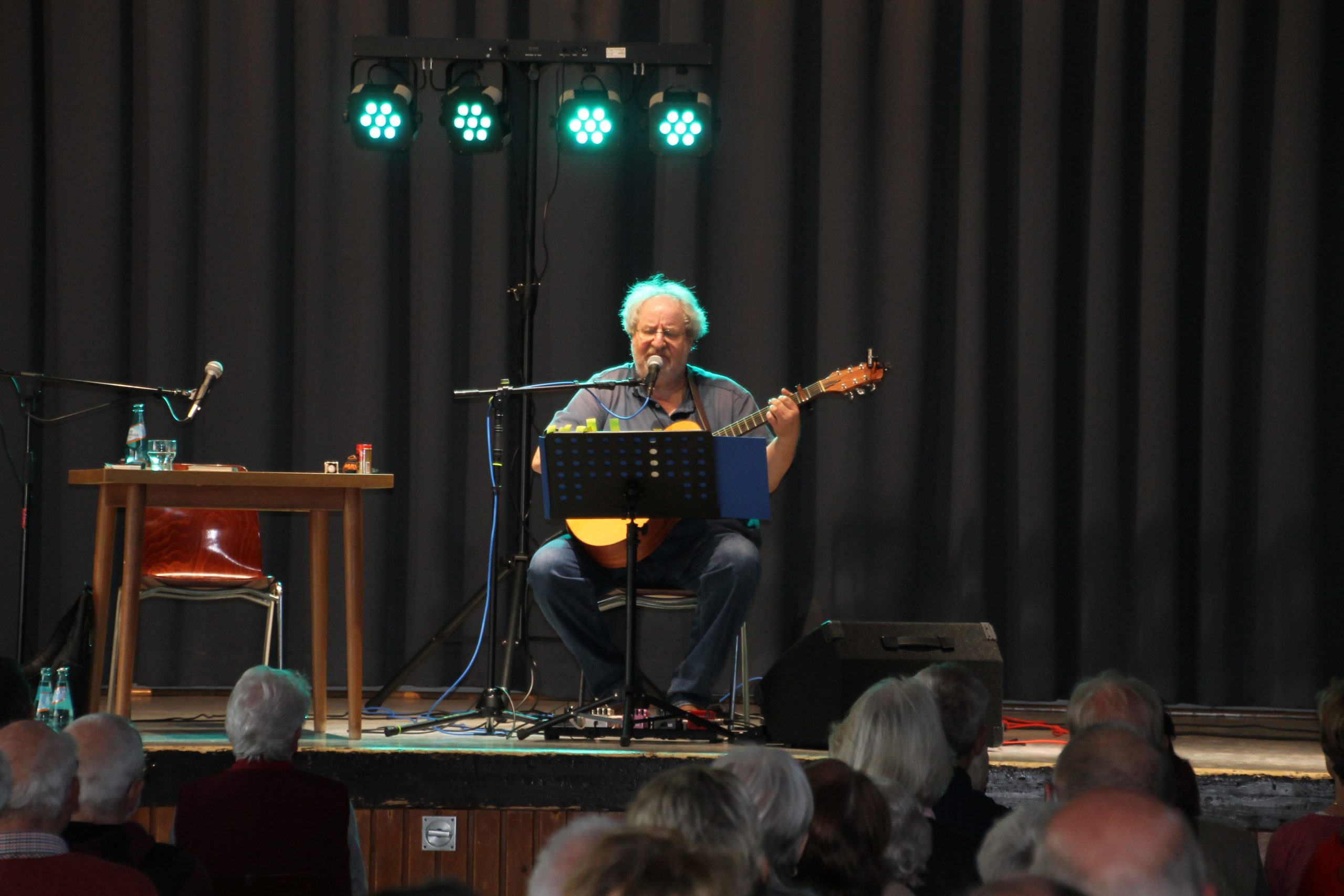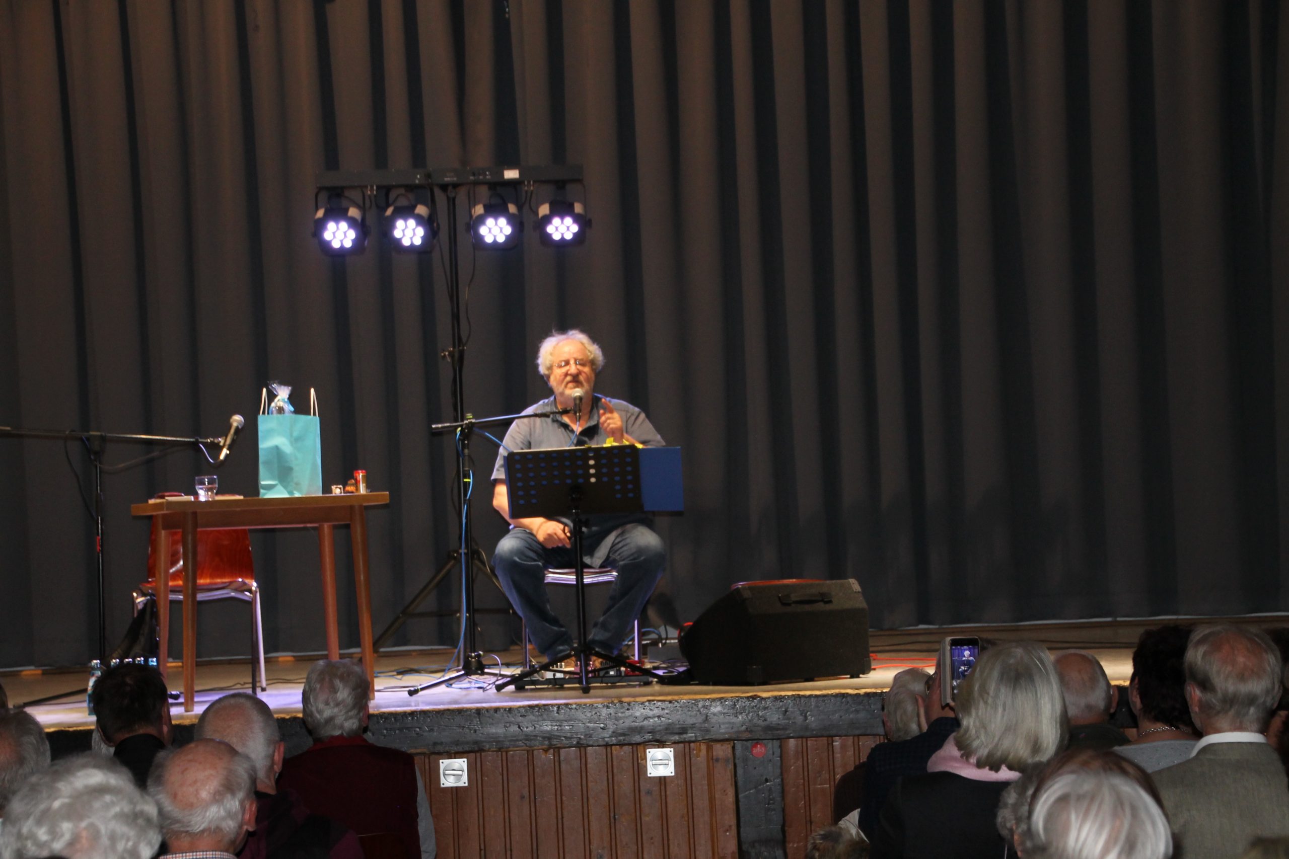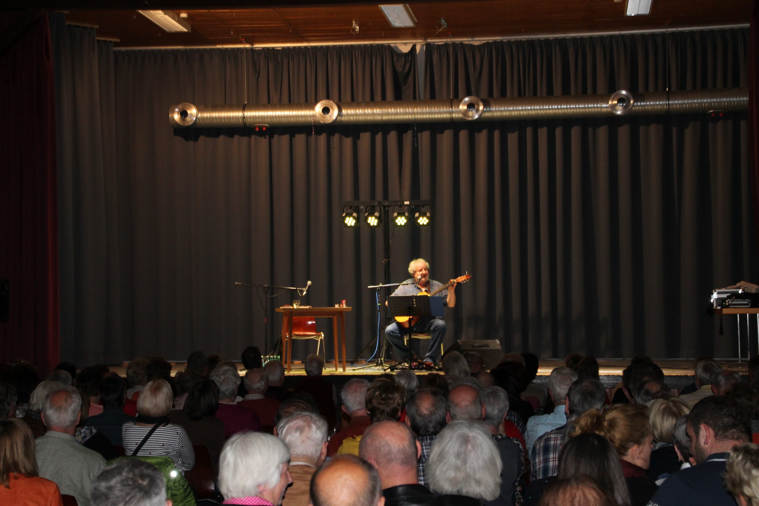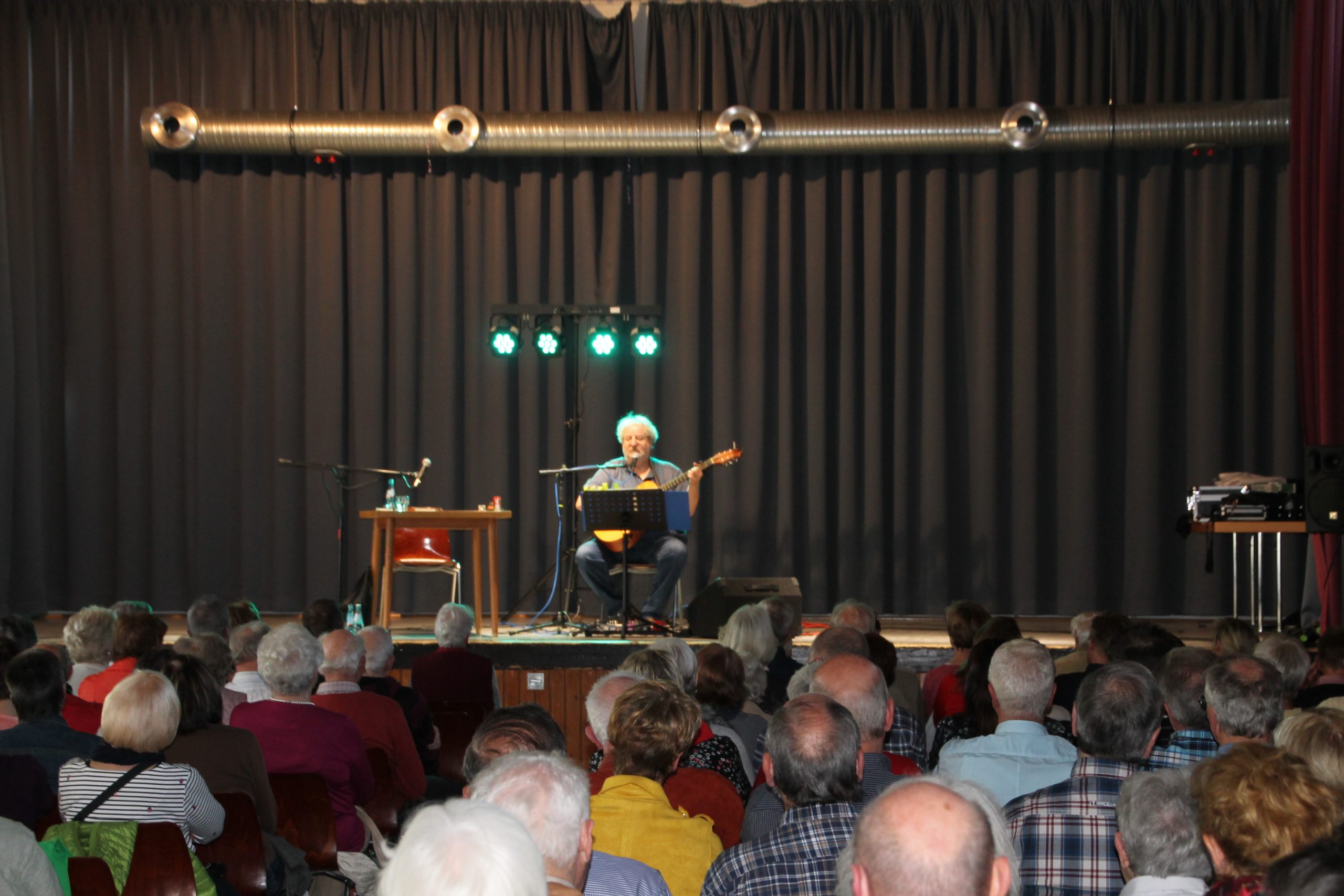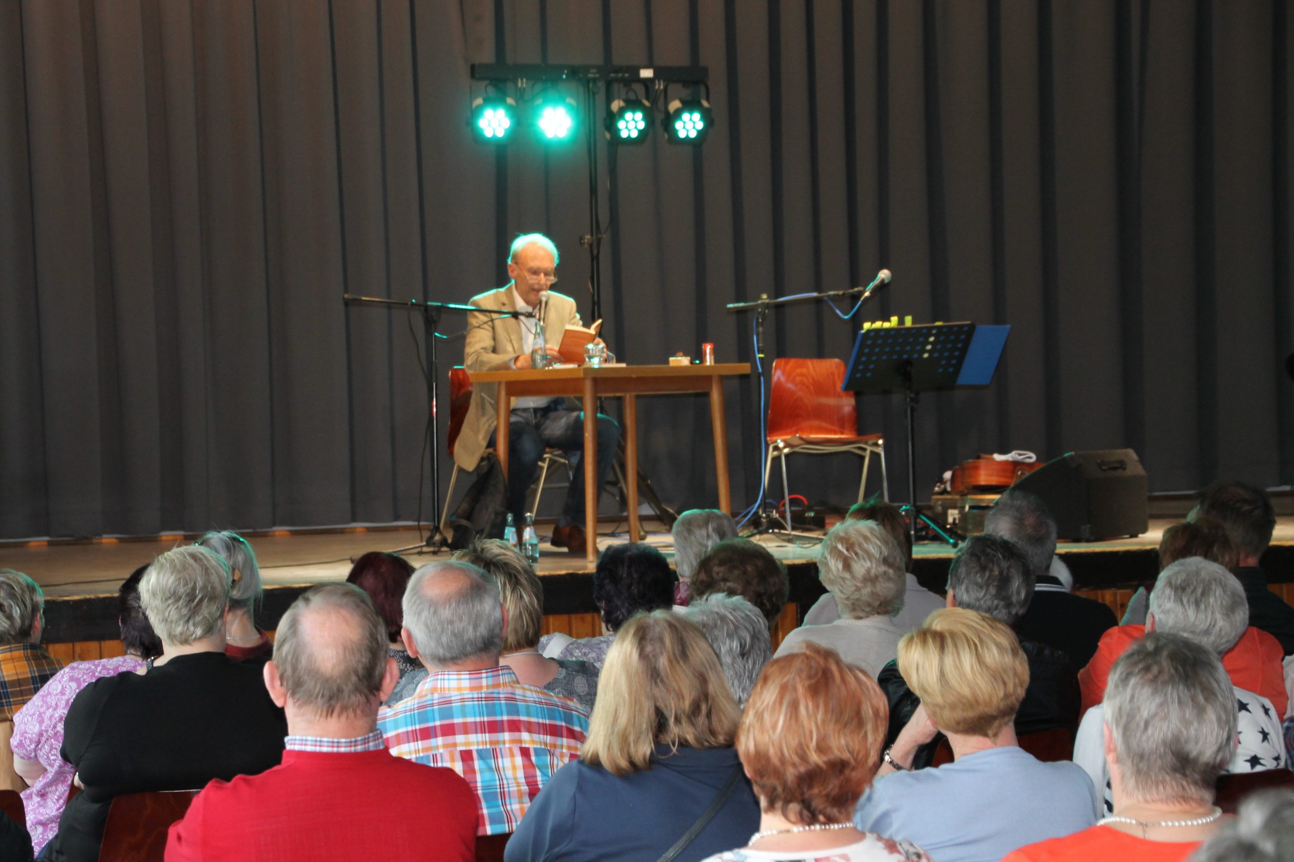 Nach der Begrüßung durch unseren 1. Vorsitzenden Reiner Holl begann Siegward Roth aus den Buch “E Geschicht fier sich” vorzulesen. Nach 30 Minuten wechselte er den Platz mit Berthold Schäfer, der dann in die Saiten seiner Gitarre griff. In der Pause konnten die Besucher sich mit frischgebackenen Brezeln und Laugenstangen stärken und für den Durst gab es allerlei Getränke im Angebot. Danach laß Siegward Roth für weitere 30 Minuten aus seinem neuen Buch “Band 2” und Berthold Schäfer übernahm und krönte das Ende der Veranstaltung mit weiteren hessischen Liedern auf platt.