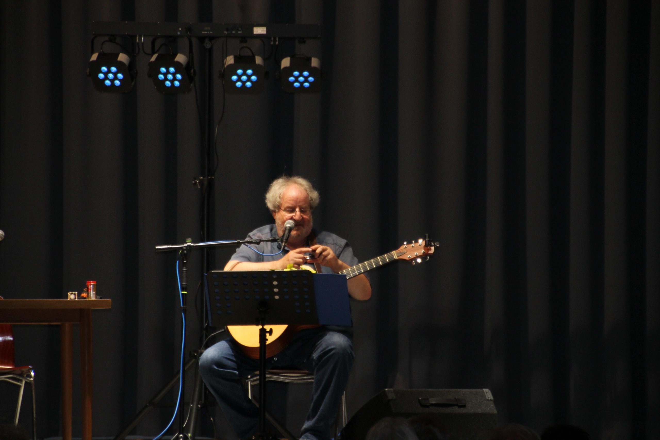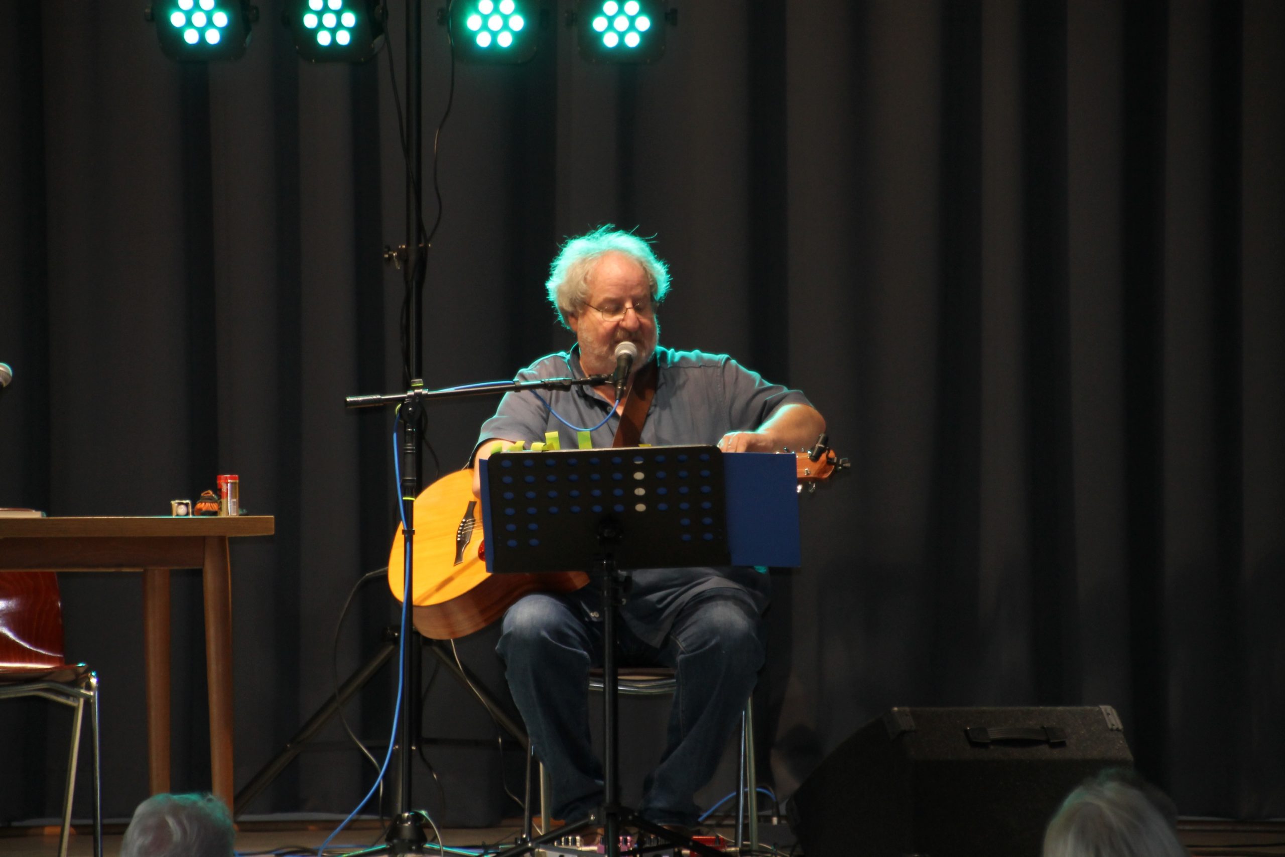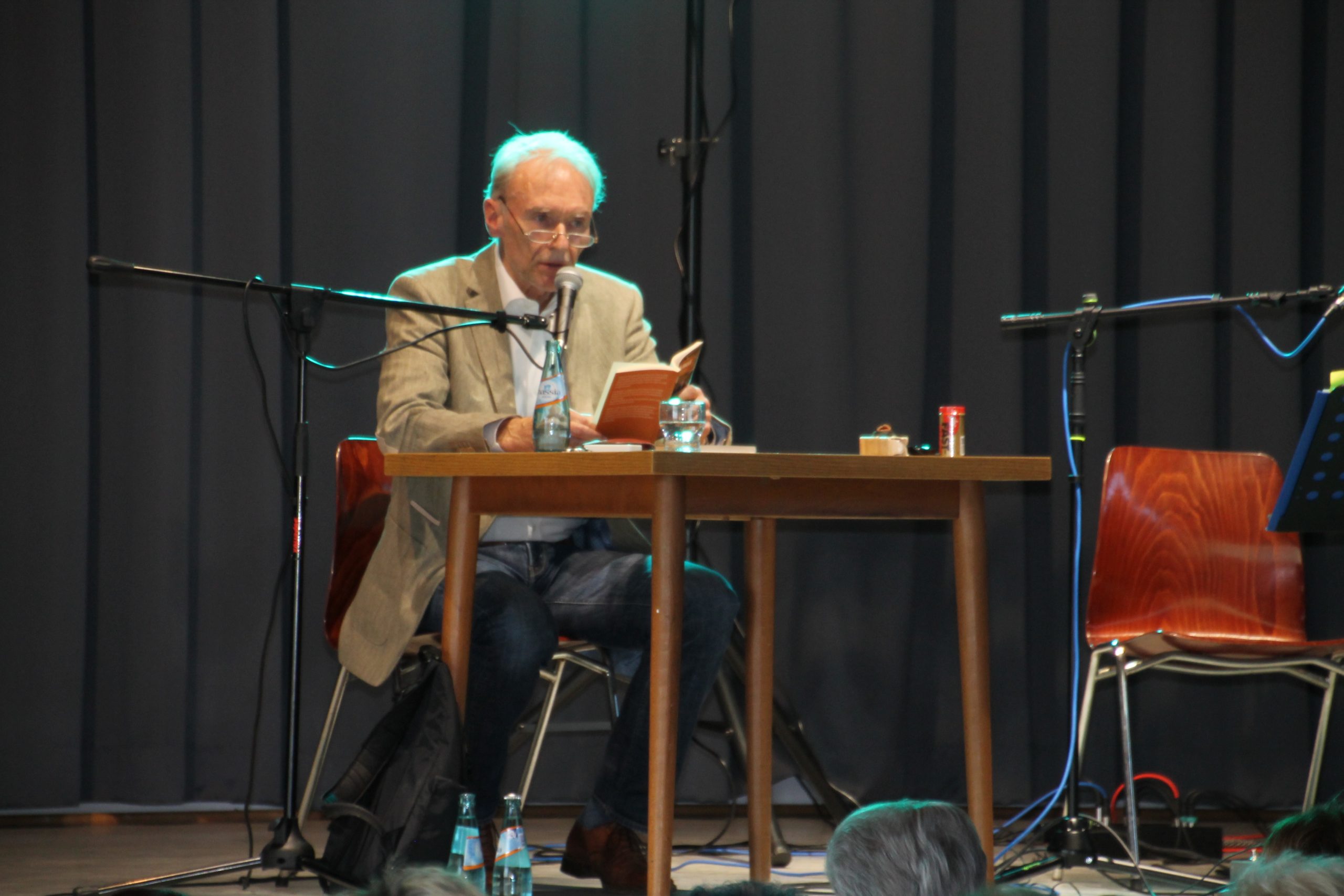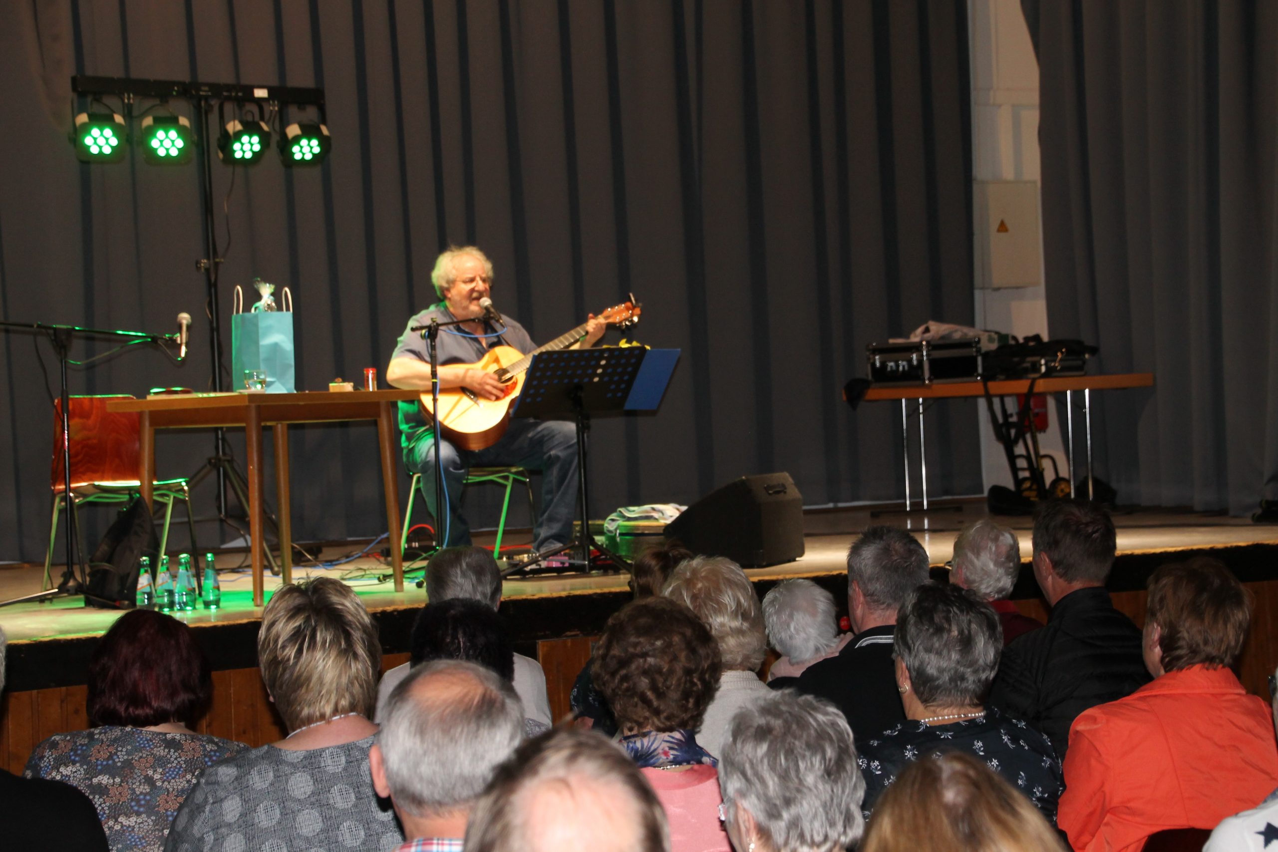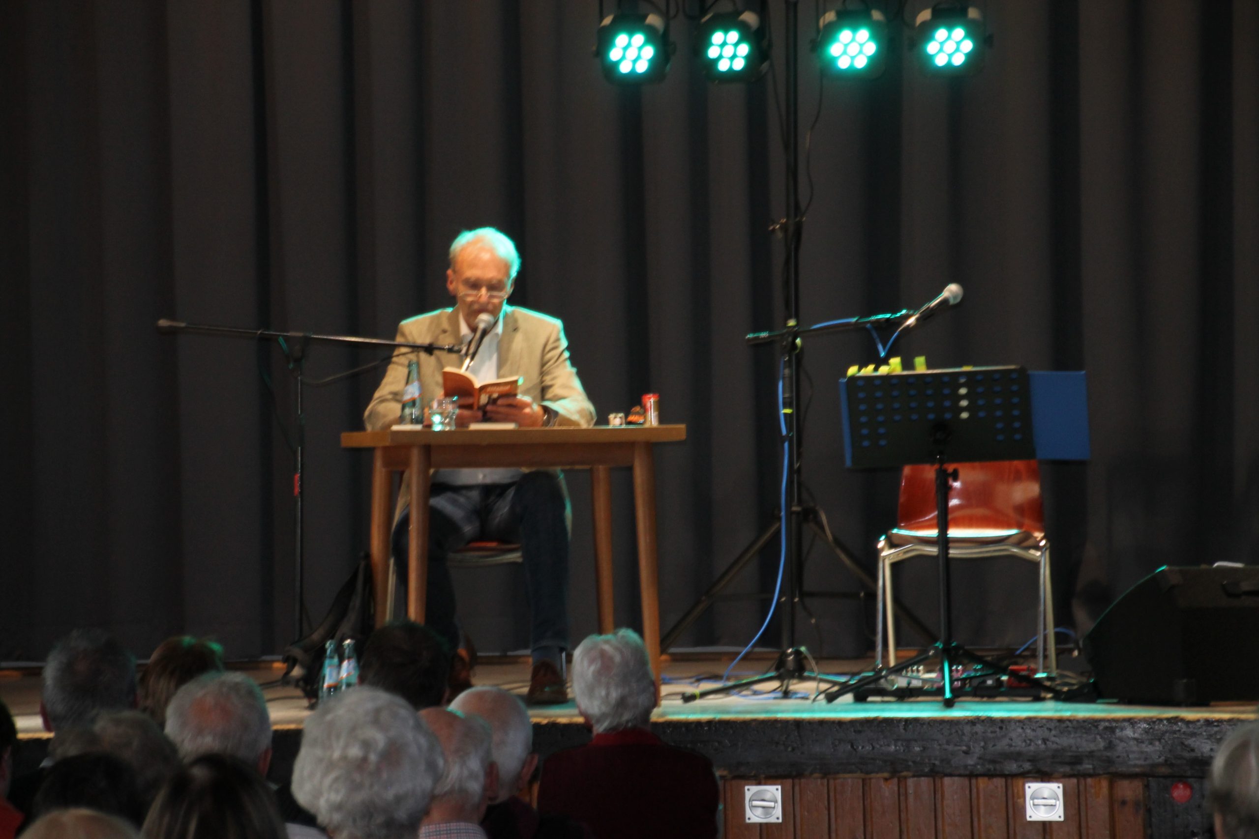 Nach der Begrüßung durch unseren 1. Vorsitzenden Reiner Holl begann Siegward Roth aus den Buch “E Geschicht fier sich” vorzulesen. Nach 30 Minuten wechselte er den Platz mit Berthold Schäfer, der dann in die Saiten seiner Gitarre griff. In der Pause konnten die Besucher sich mit frischgebackenen Brezeln und Laugenstangen stärken und für den Durst gab es allerlei Getränke im Angebot. Danach laß Siegward Roth für weitere 30 Minuten aus seinem neuen Buch “Band 2” und Berthold Schäfer übernahm und krönte das Ende der Veranstaltung mit weiteren hessischen Liedern auf platt.