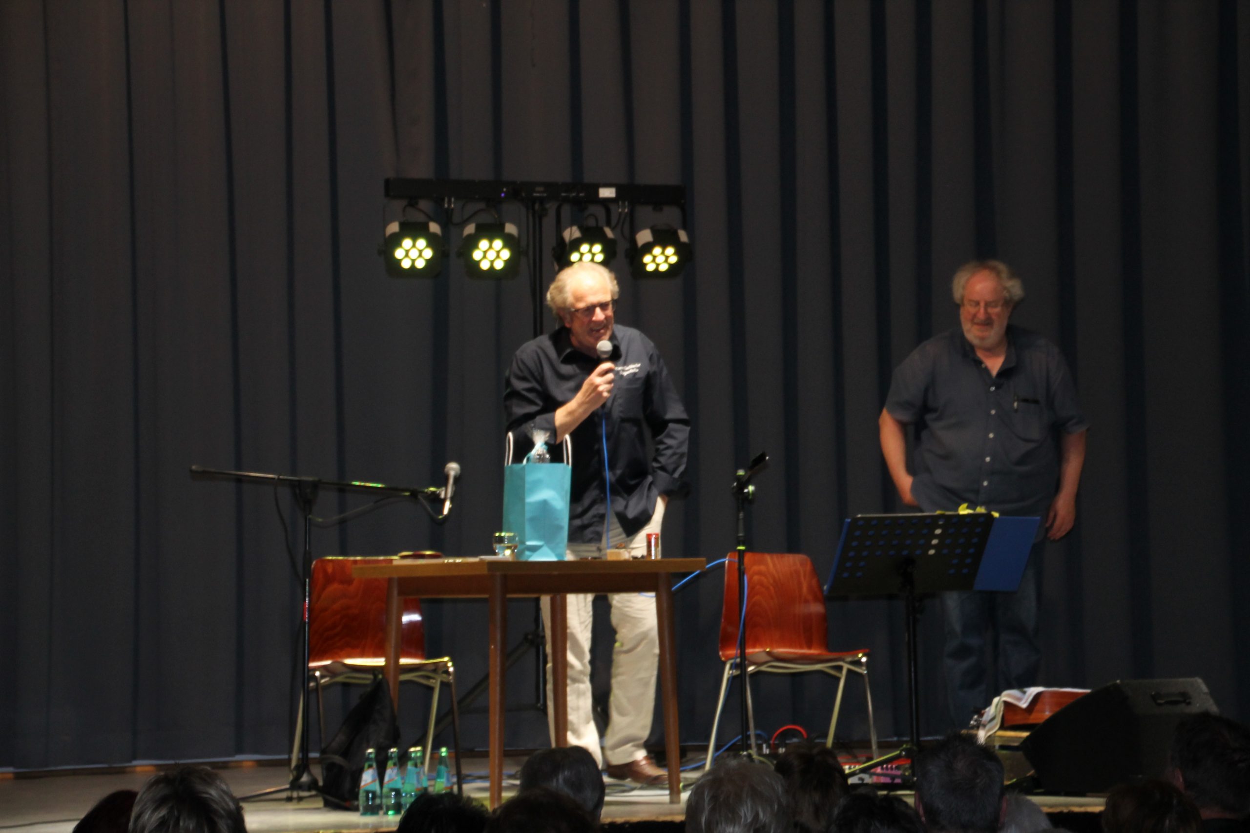 Am 17. Mai 2019 veranstaltete der Verein Eschbacher Ortsgeschichte wieder einen bunten Abend. Dazu traten Siegward Roth und Berthold Schäfer (beide bekannt durch “Fäägmeel”) im Bürgerhaus Eschbach auf. Siegward Roth reiste dazu eigens aus München an, um hier eine Lesung aus seinen zwei Büchern zu halten. Berthold Schäfer, Gründer von “Meelstaa” begeisterte das Publikum mit seinen mittelhessischen Liedern. So durfte auch die “Rure Roiwe Ropp Maschin” bei seiner musikalischen Darbietung nicht fehlen.