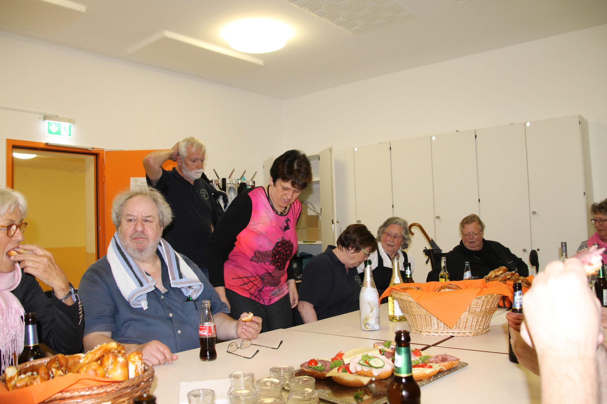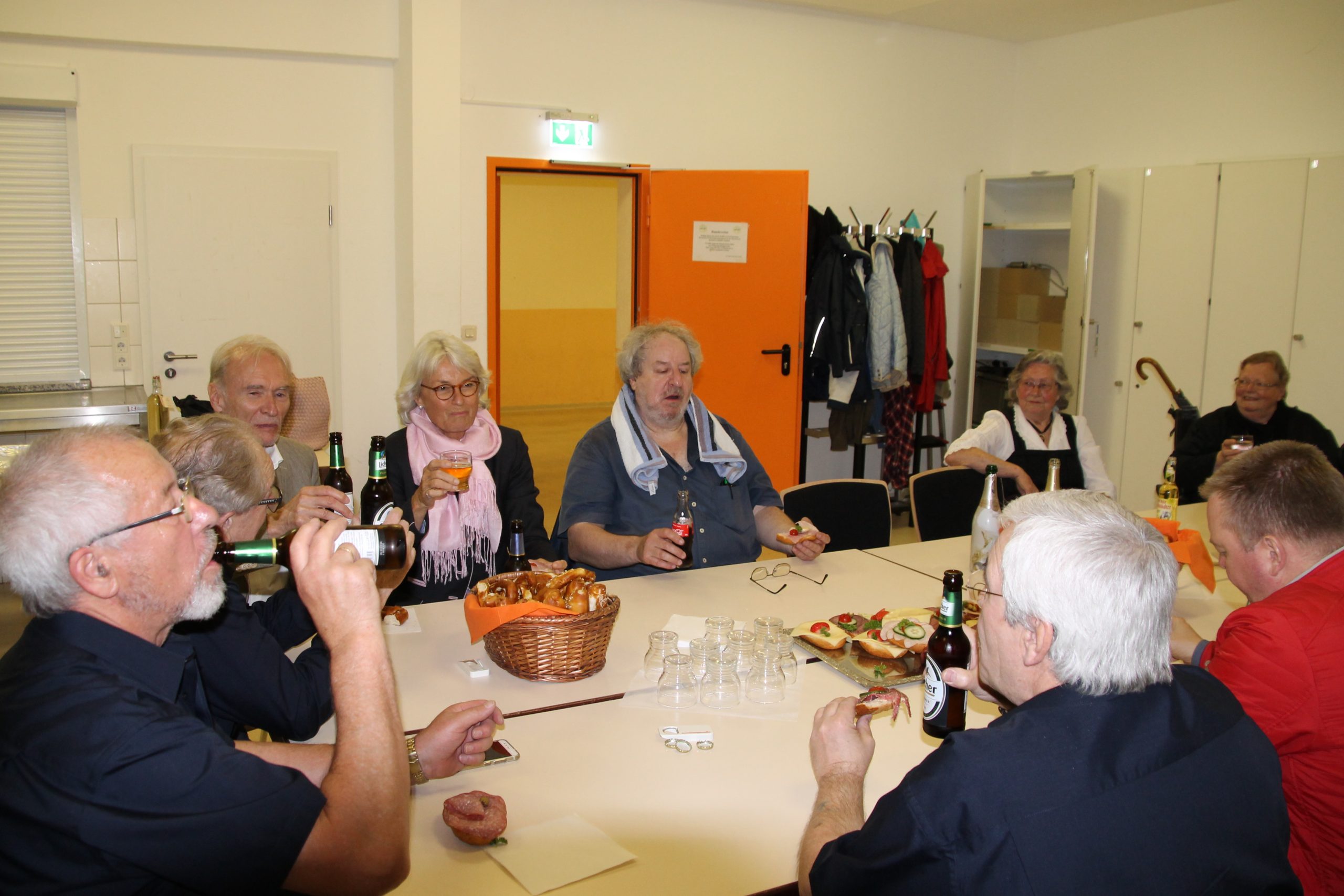 Nach dem Abbau und Aufräumen des Saales fanden sich die Darsteller mit Begleitern und unsere fleißigen Helfer in der Bibliothek zu einem kleinen Nacht- Vesper ein, und alle waren sich einig – das war ein gelungener Abend!