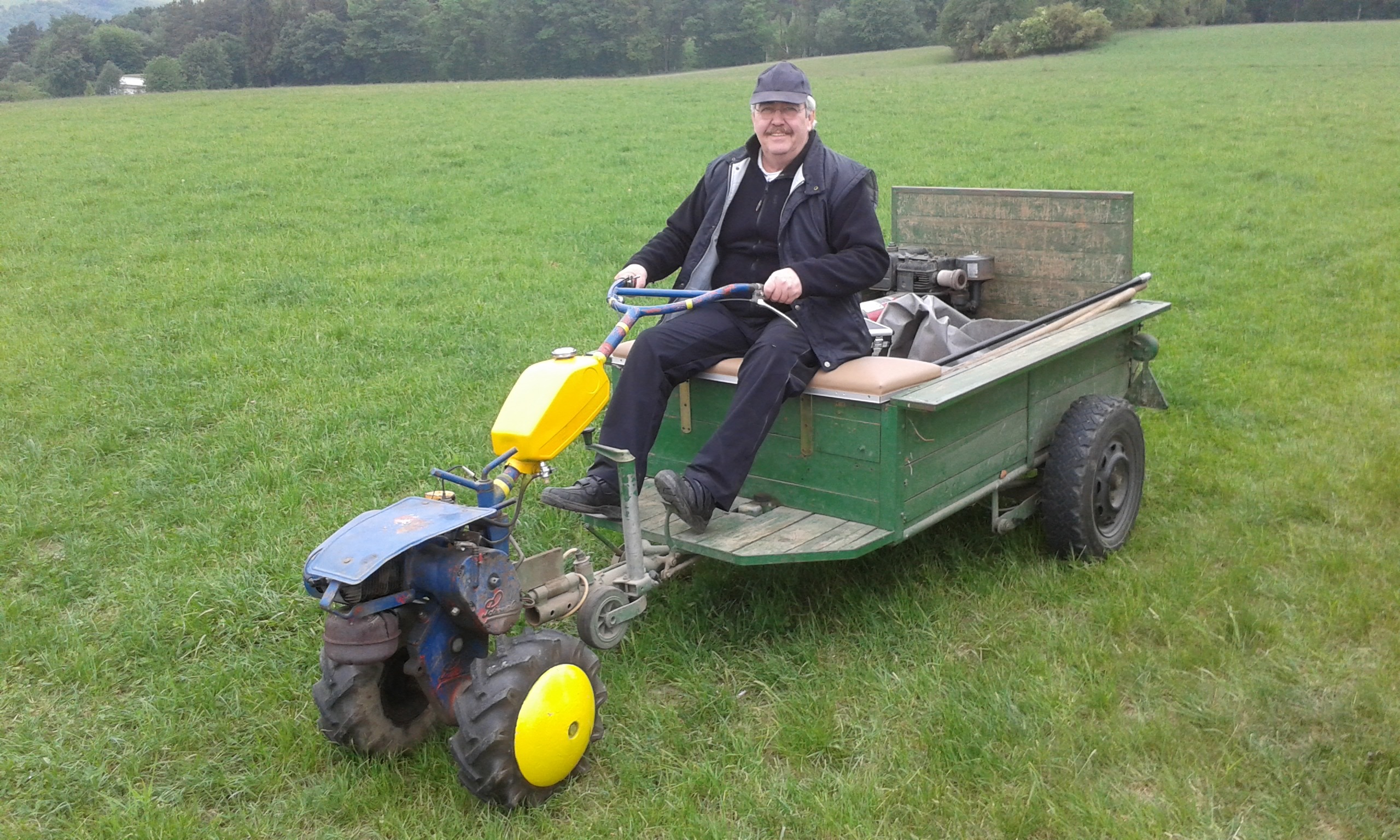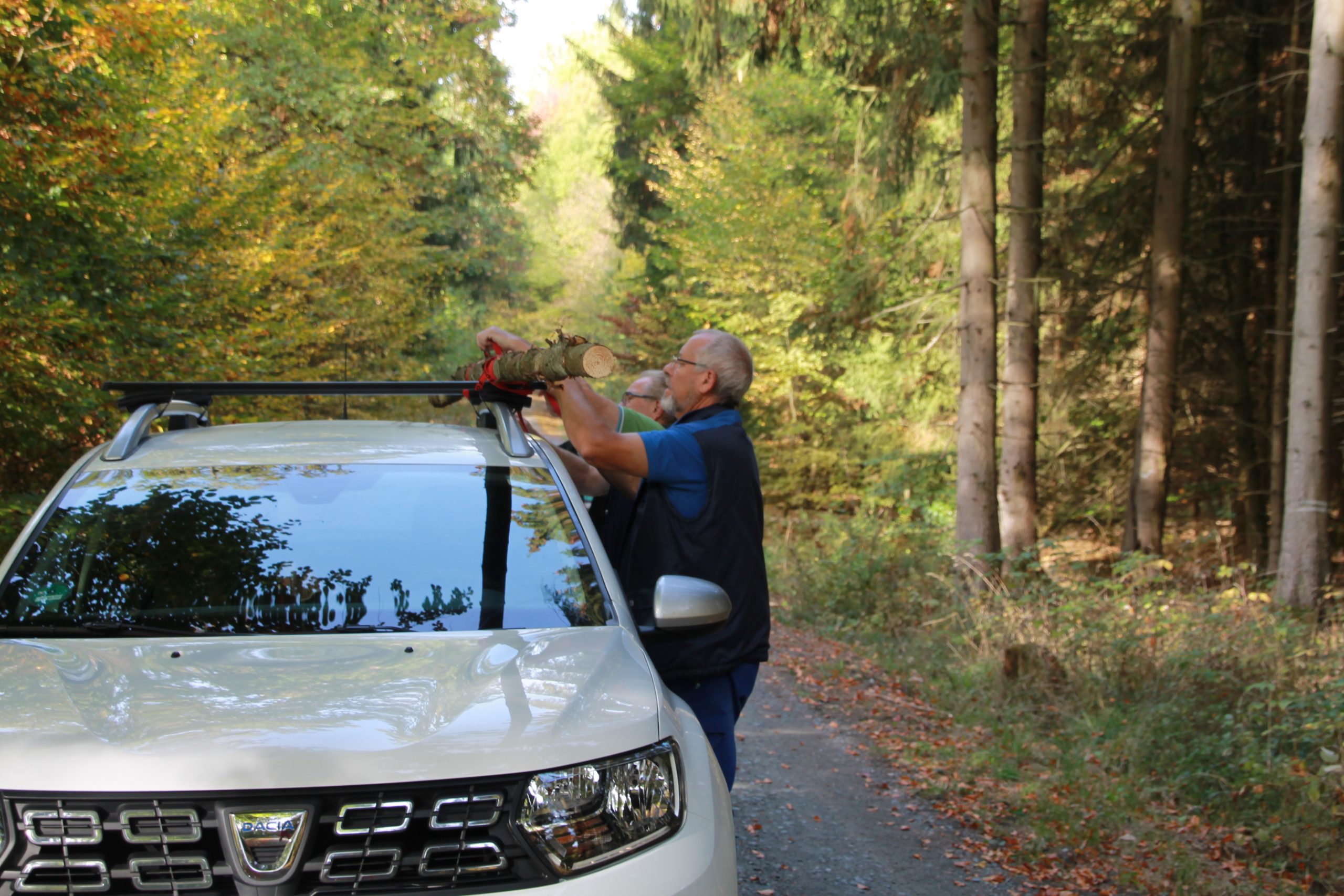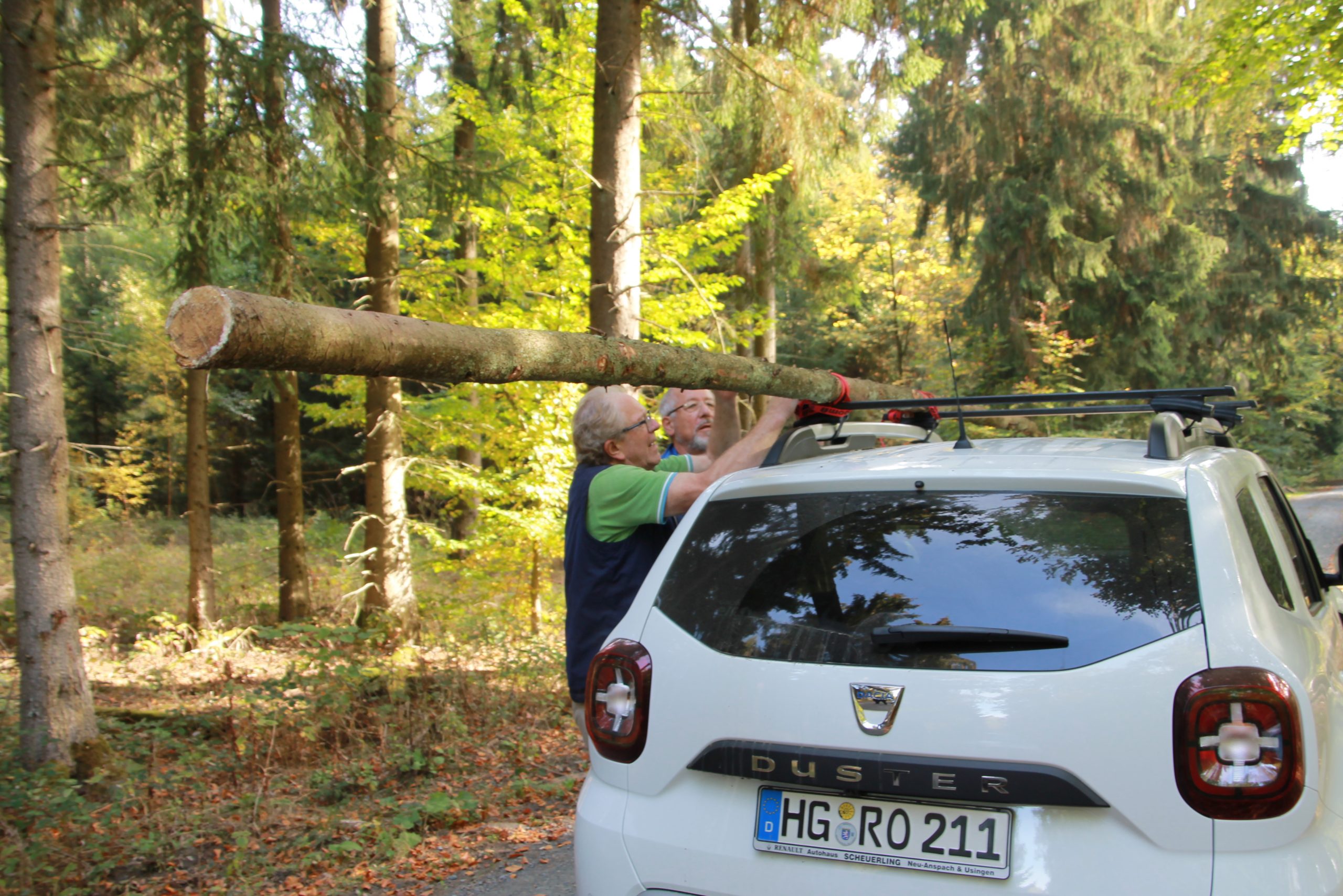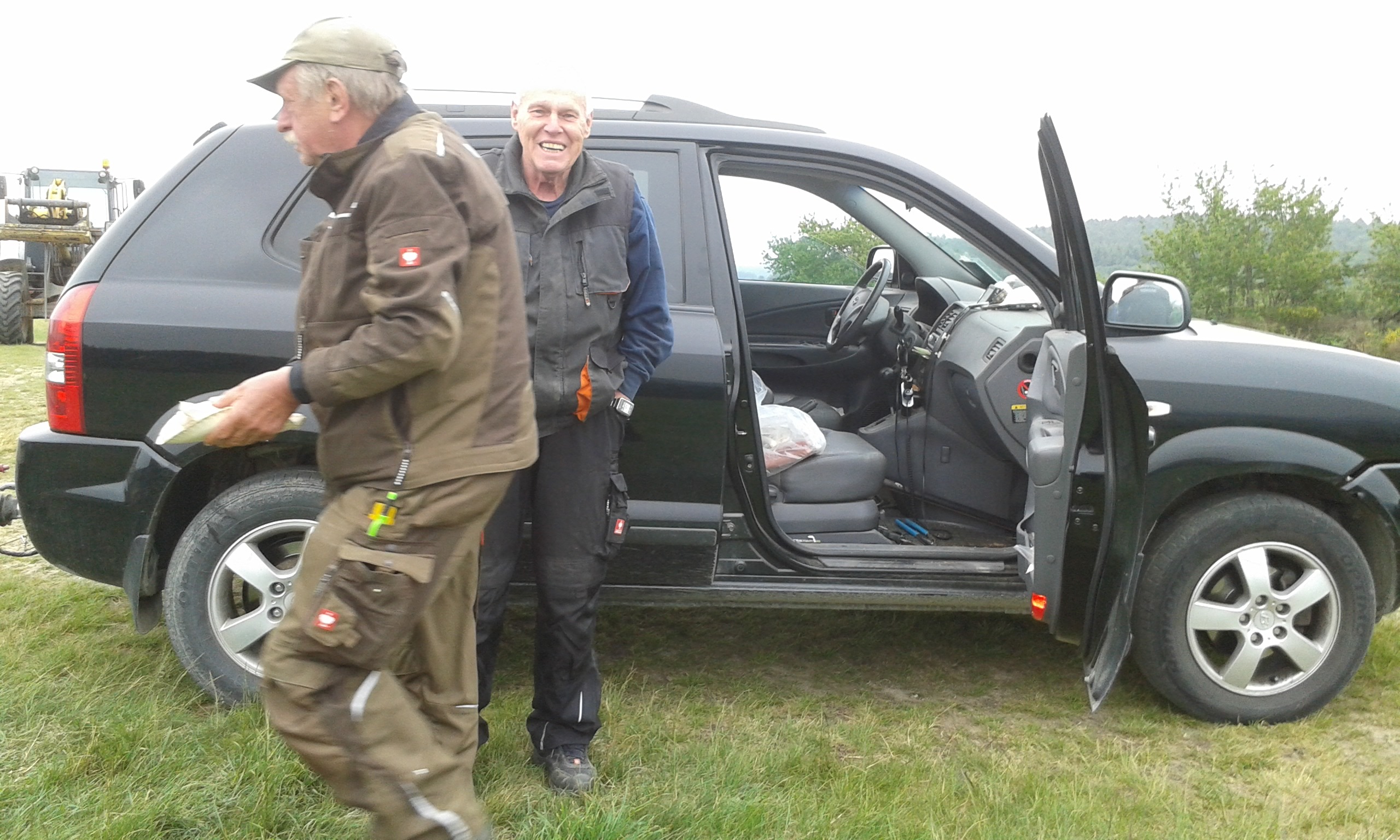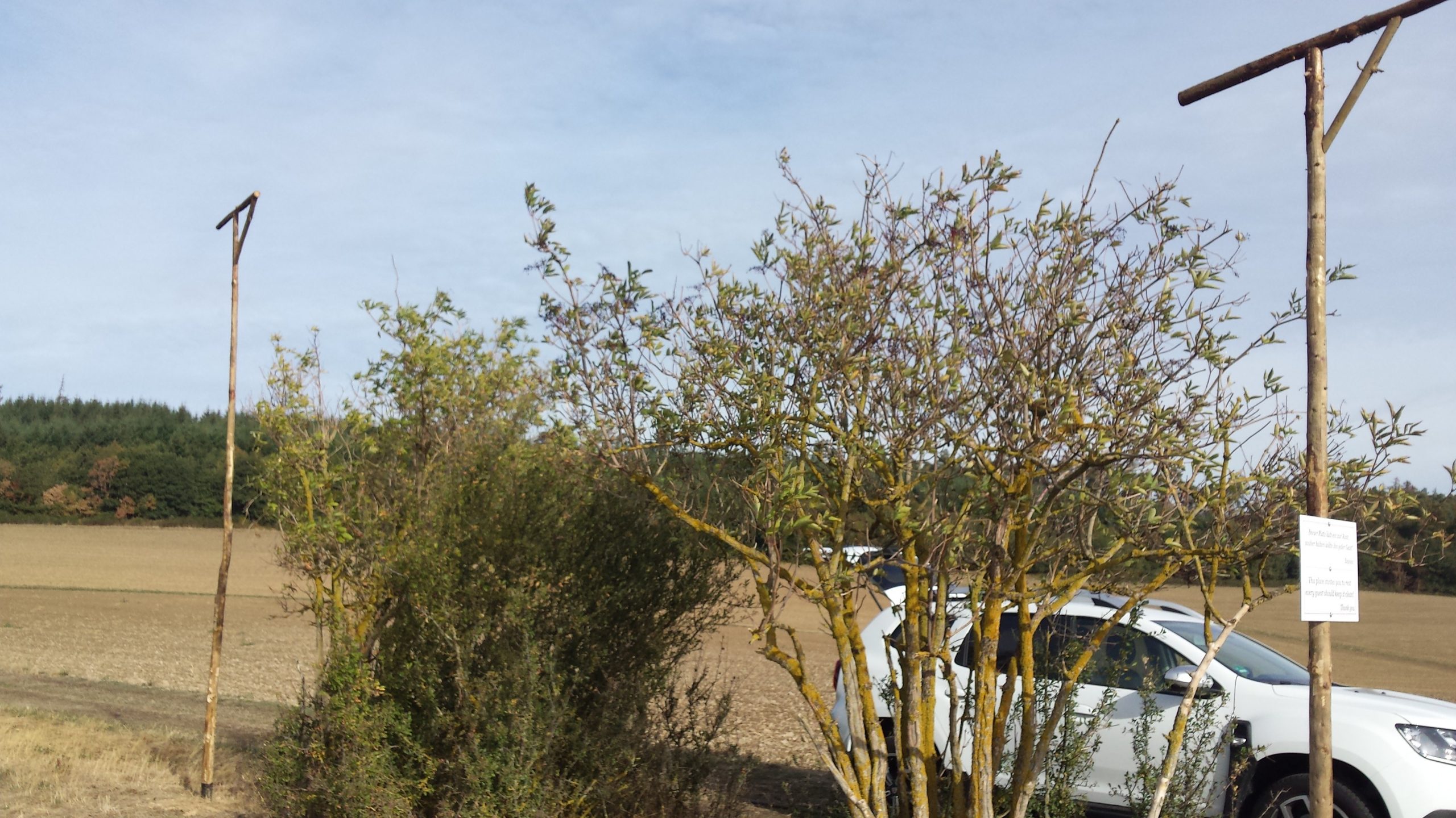 Freitag morgens um 09:00 Uhr holte Ortwin Ruß seinen Vereinskollegen Ronny Löw mit seinem Vehikel ab um auf dem Pfaffenkopf die Stelle für die neue Sitzgruppe vorzubereiten. Hierzu wurde die noch alte Ruhebank mit Hilfe von Hans-Jörg Scheidler und seinem Radlader ausgegraben und auf die Michelbacher Waldseite transportiert. Hier wurden zwei 60 cm tiefe Löcher mittels eines hydraulischen Bohrers, den Dietmar Herr mit seinem Traktor bediente, gegraben und die Ruhebank eingelassen. Nach etwa einer Stunde stand die Ruhebank fest am Michelbacher Waldrand und wir konnten nun den Platz der neuen Sitzgruppe aufbereiten.