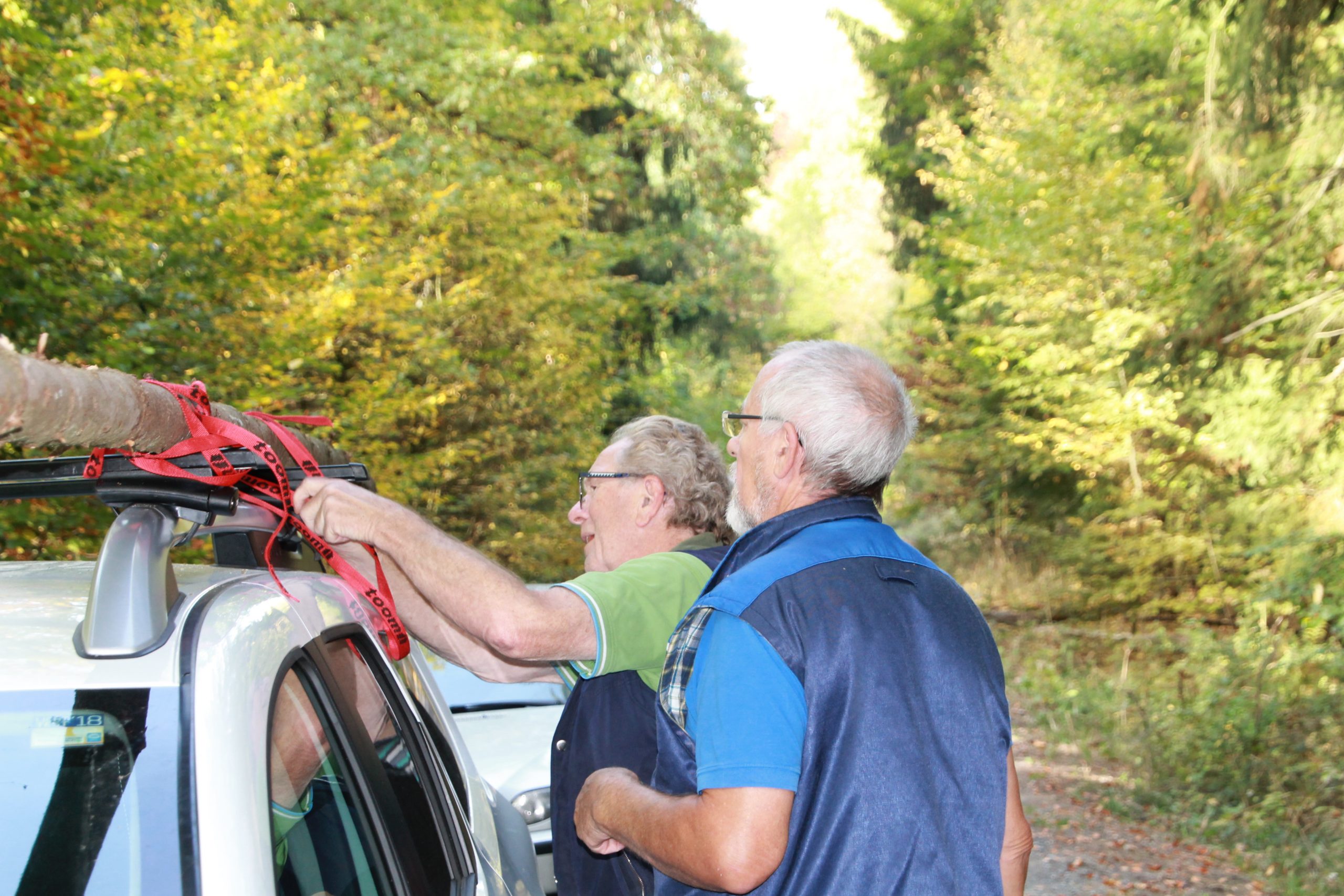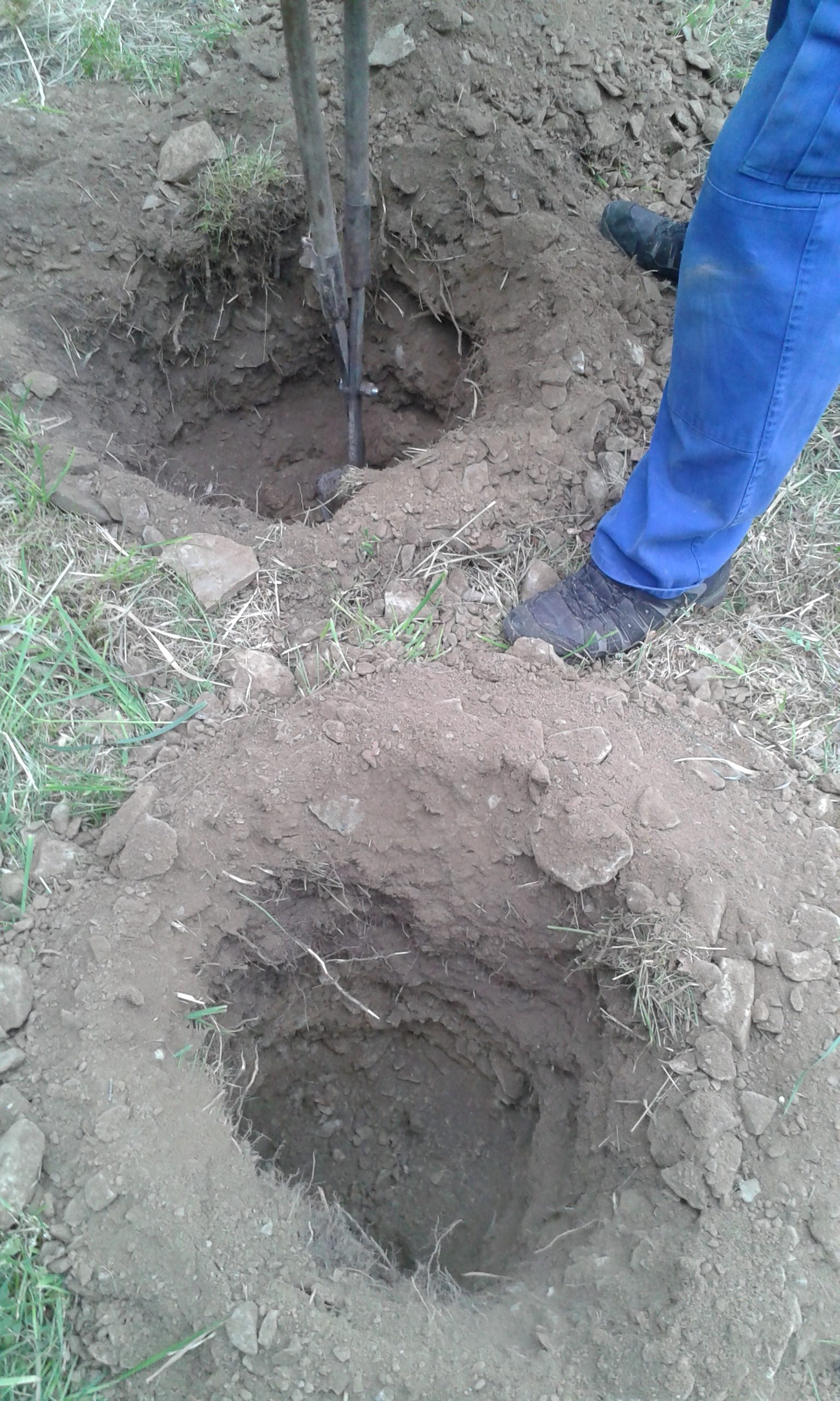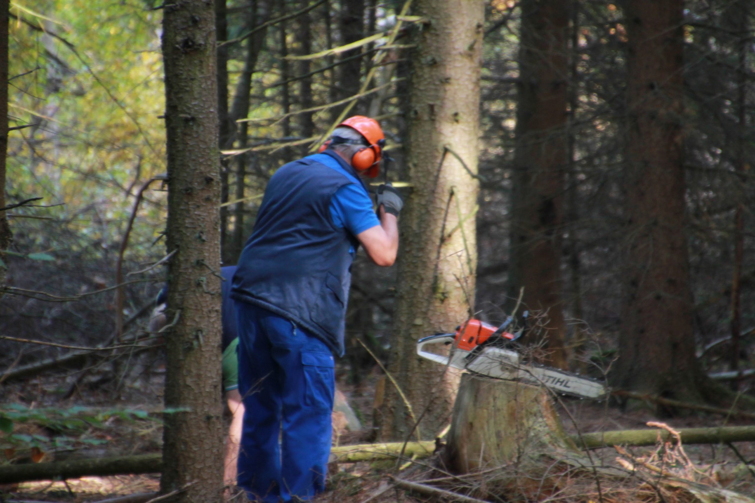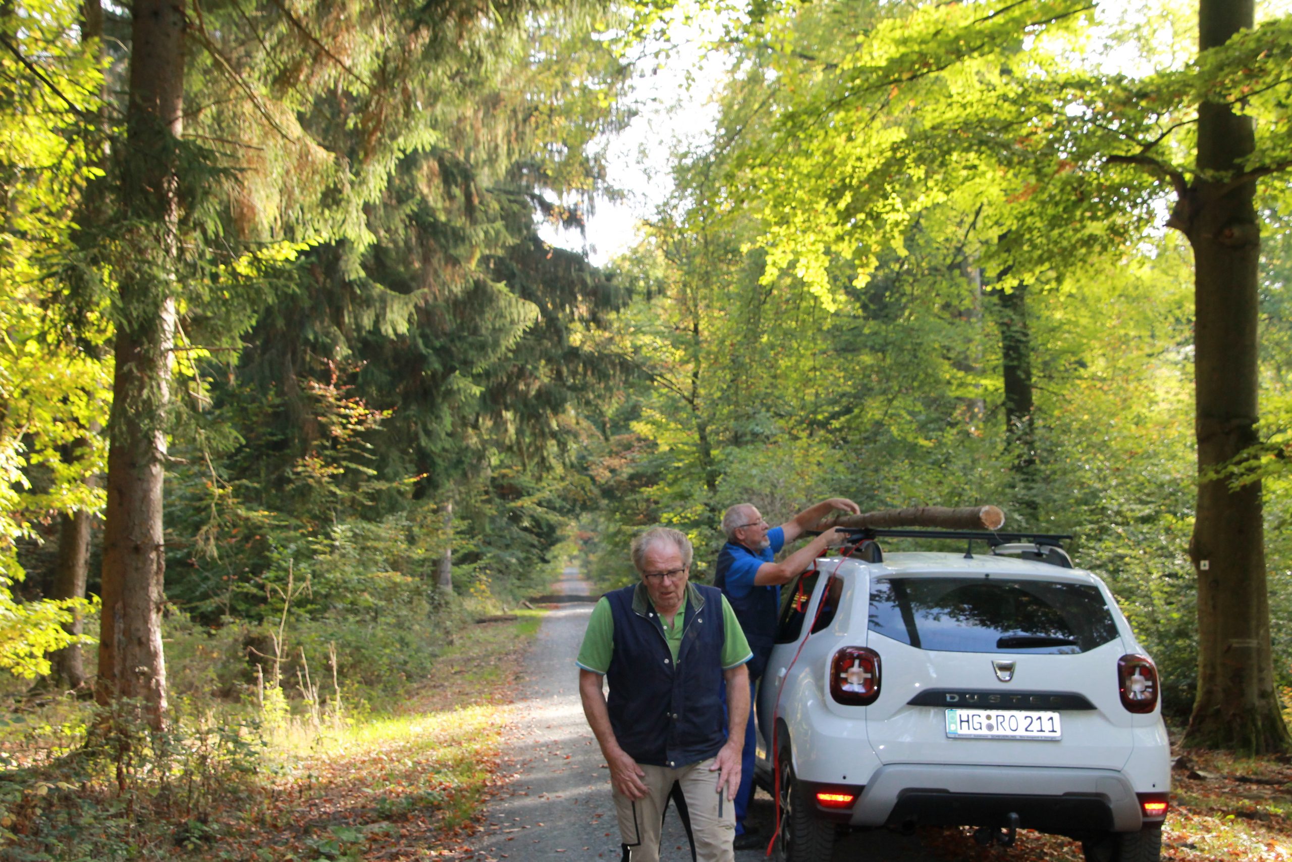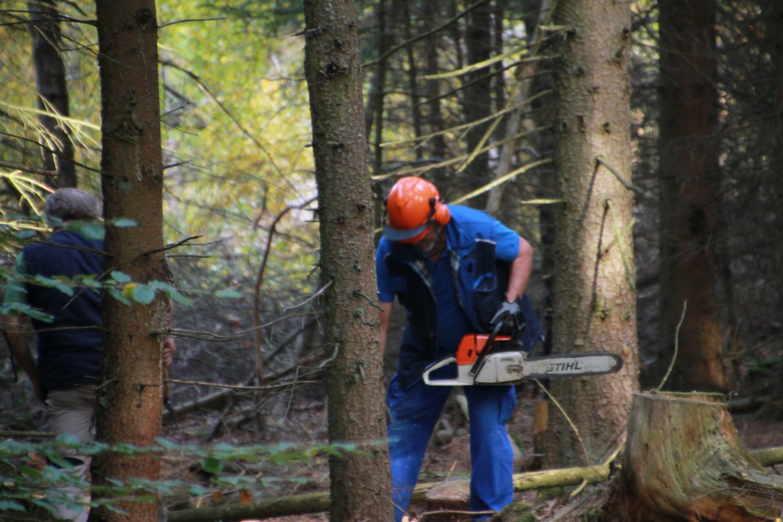 Freitag morgens um 09:00 Uhr holte Ortwin Ruß seinen Vereinskollegen Ronny Löw mit seinem Vehikel ab um auf dem Pfaffenkopf die Stelle für die neue Sitzgruppe vorzubereiten. Hierzu wurde die noch alte Ruhebank mit Hilfe von Hans-Jörg Scheidler und seinem Radlader ausgegraben und auf die Michelbacher Waldseite transportiert. Hier wurden zwei 60 cm tiefe Löcher mittels eines hydraulischen Bohrers, den Dietmar Herr mit seinem Traktor bediente, gegraben und die Ruhebank eingelassen. Nach etwa einer Stunde stand die Ruhebank fest am Michelbacher Waldrand und wir konnten nun den Platz der neuen Sitzgruppe aufbereiten.