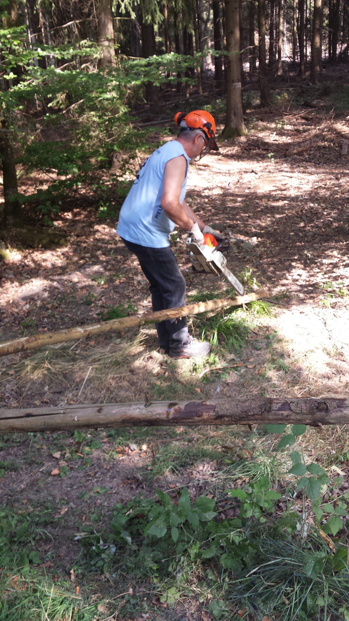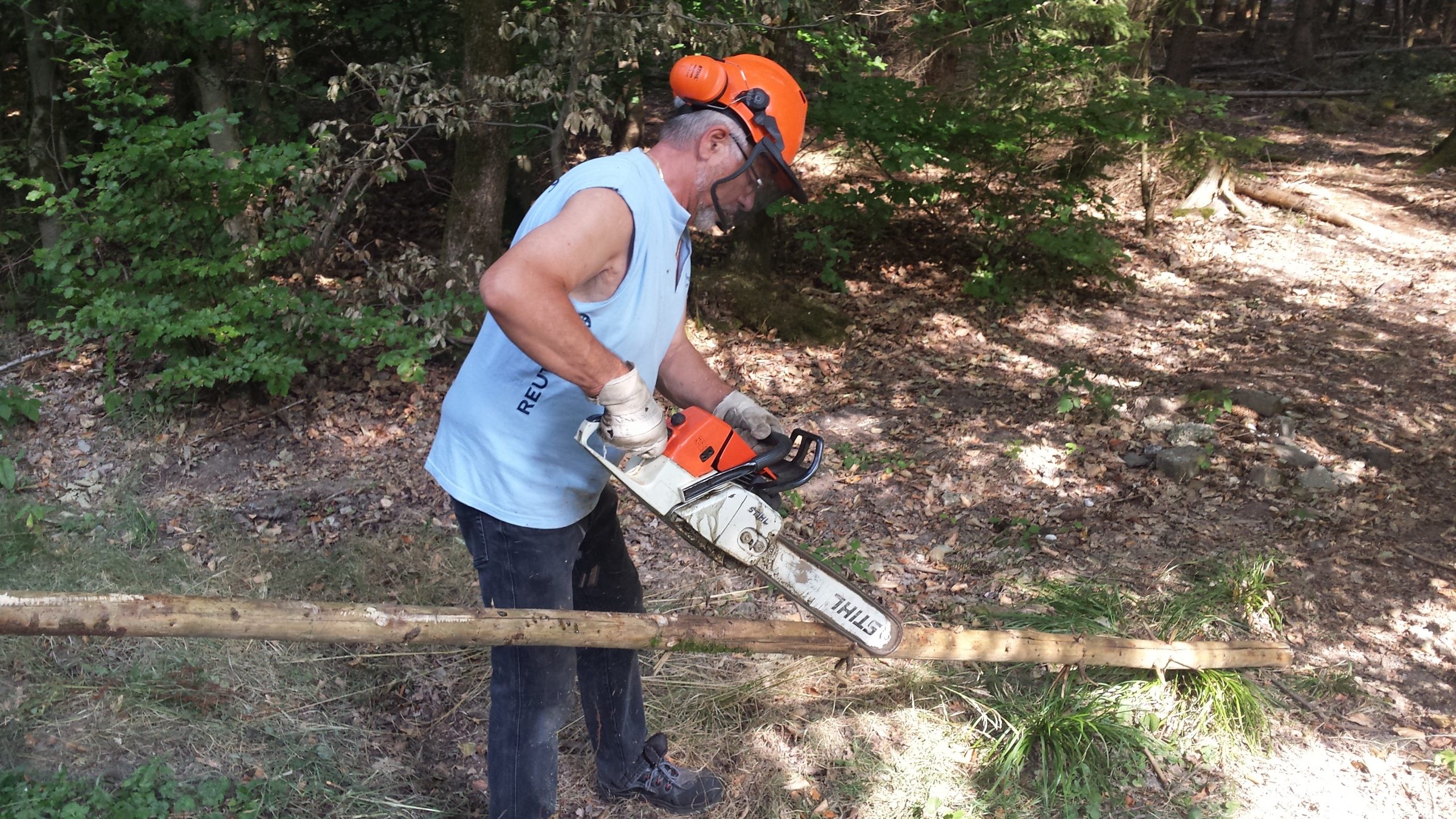 Pünktlich um 14:00 Uhr trafen wir uns wieder, um die von Gerhard Otto gelieferte Sitzgruppe zu platzieren. Wieder kam der Radlader von Hans-Jörg Scheidler zum Einsatz. Geschickt und mit viel Gefühl brachte er die einzelnen Elemente an Ort und Stelle. Mit gegrillten Würstchen und kalten Getränken schlossen wir um 15:00 Uhr unsere Bauarbeiten ab.