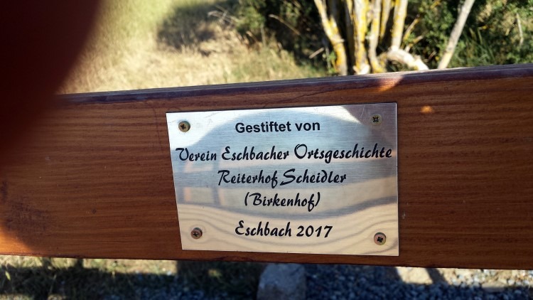 Am 18. Mai 2018 war es endlich soweit. Die neue Eschbacher Sitzgruppe, gespendet vom Verein Eschbacher Ortsgeschichte und Hans-Jörg Scheidler, konnte gestellt werden.