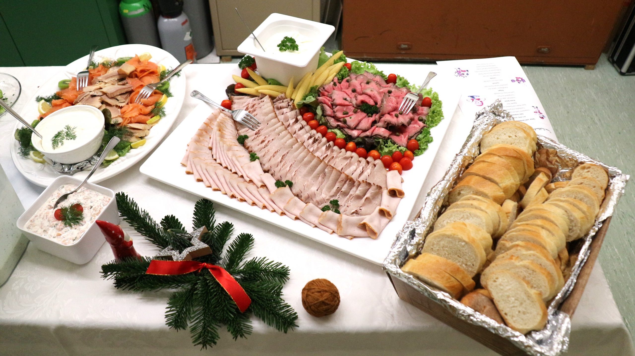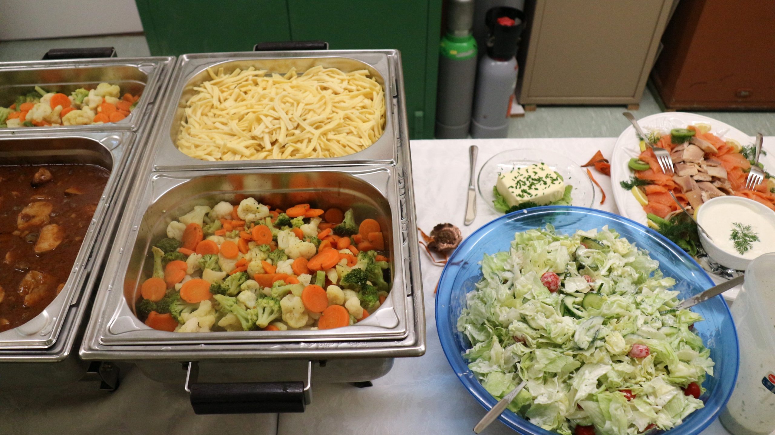 Bereits um 18:00 Uhr trafen sich die fleißigen Helfer. Tische wurden gestellt, Dekorationen aufgebracht und ganz wichtig das Fassbier wurde angezapft. Für das gute und ausreichende Essen sorgte die Metzgerei Roland Vogt unteranderem mit geräuchertem Lachs und Sahnemeerrettich, Forellenfilets mild geräuchert, Lendentopf „Jägerart“, Lachs mit einer feinen Zitronensoße, reichlich Beilagen und Nachtisch.