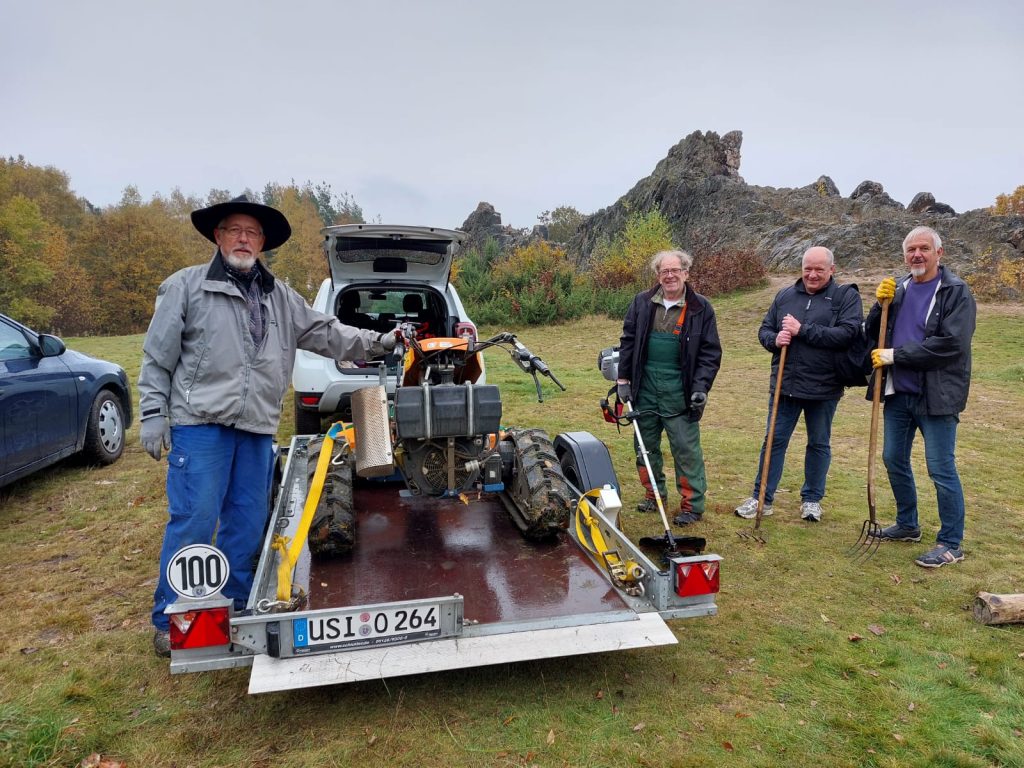 Am Samstag, den 30.10.2021 traf sich wieder eine (leider nur) kleine Gruppe mit Ast- und Heckenscheren, Motorsäge und Mulcher, um das Gelände unterhalb des Naturdenkmals “Eschbacher Klippen” zu pflegen.