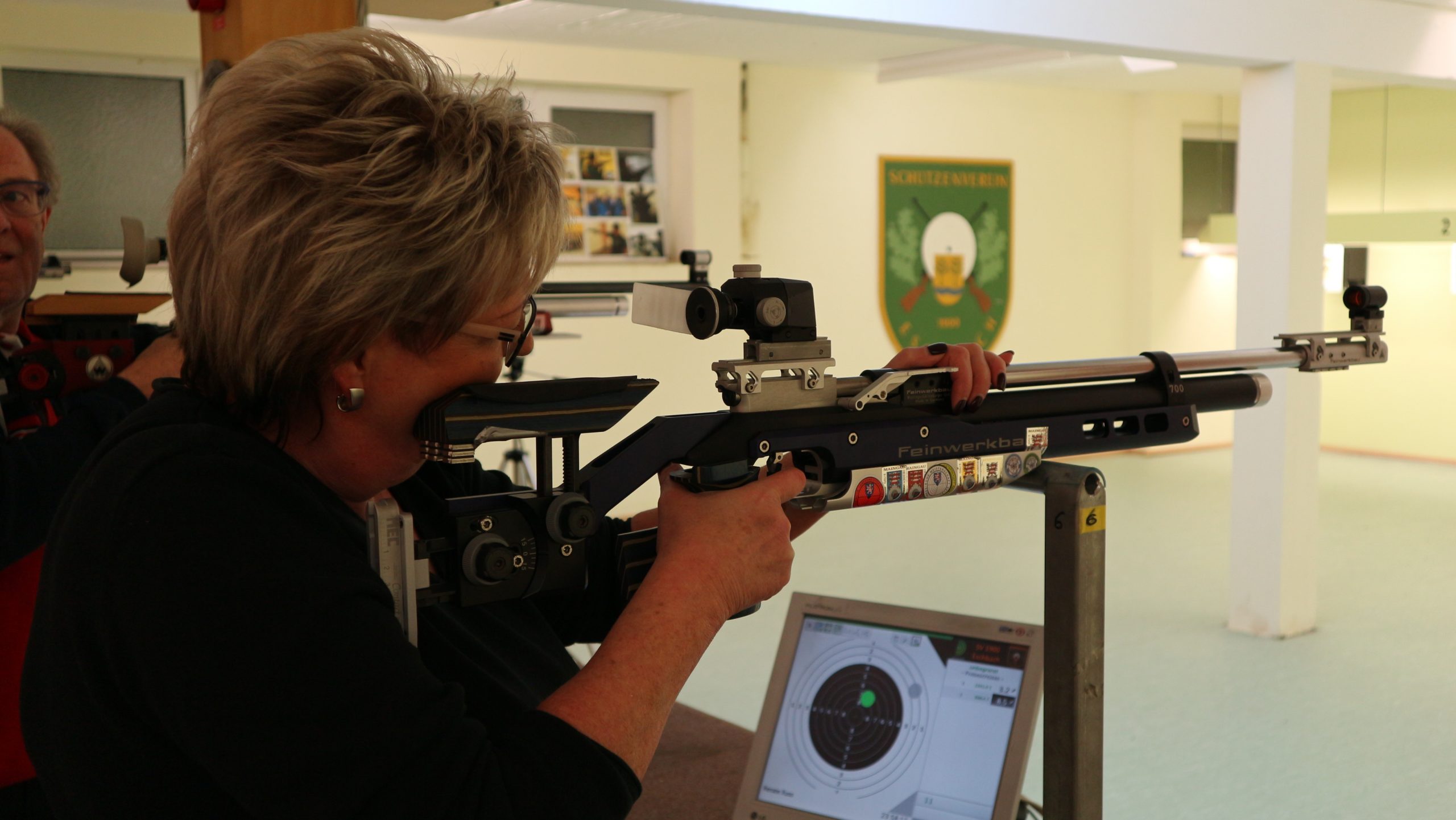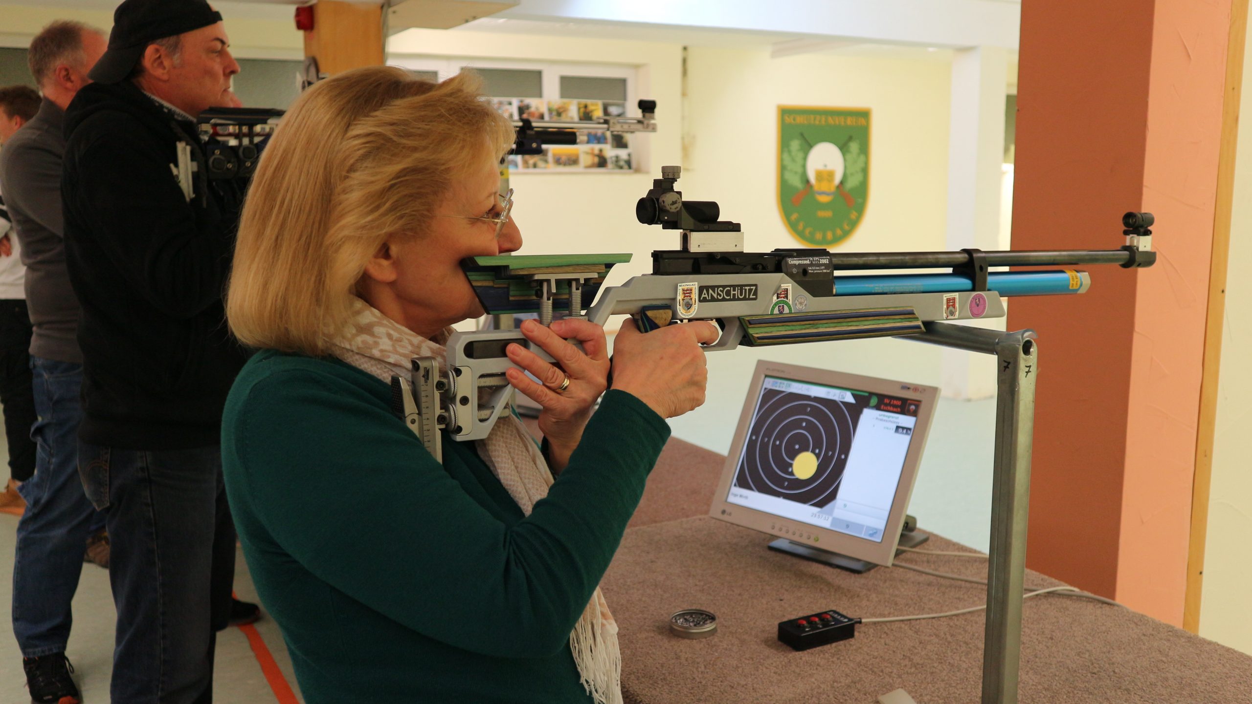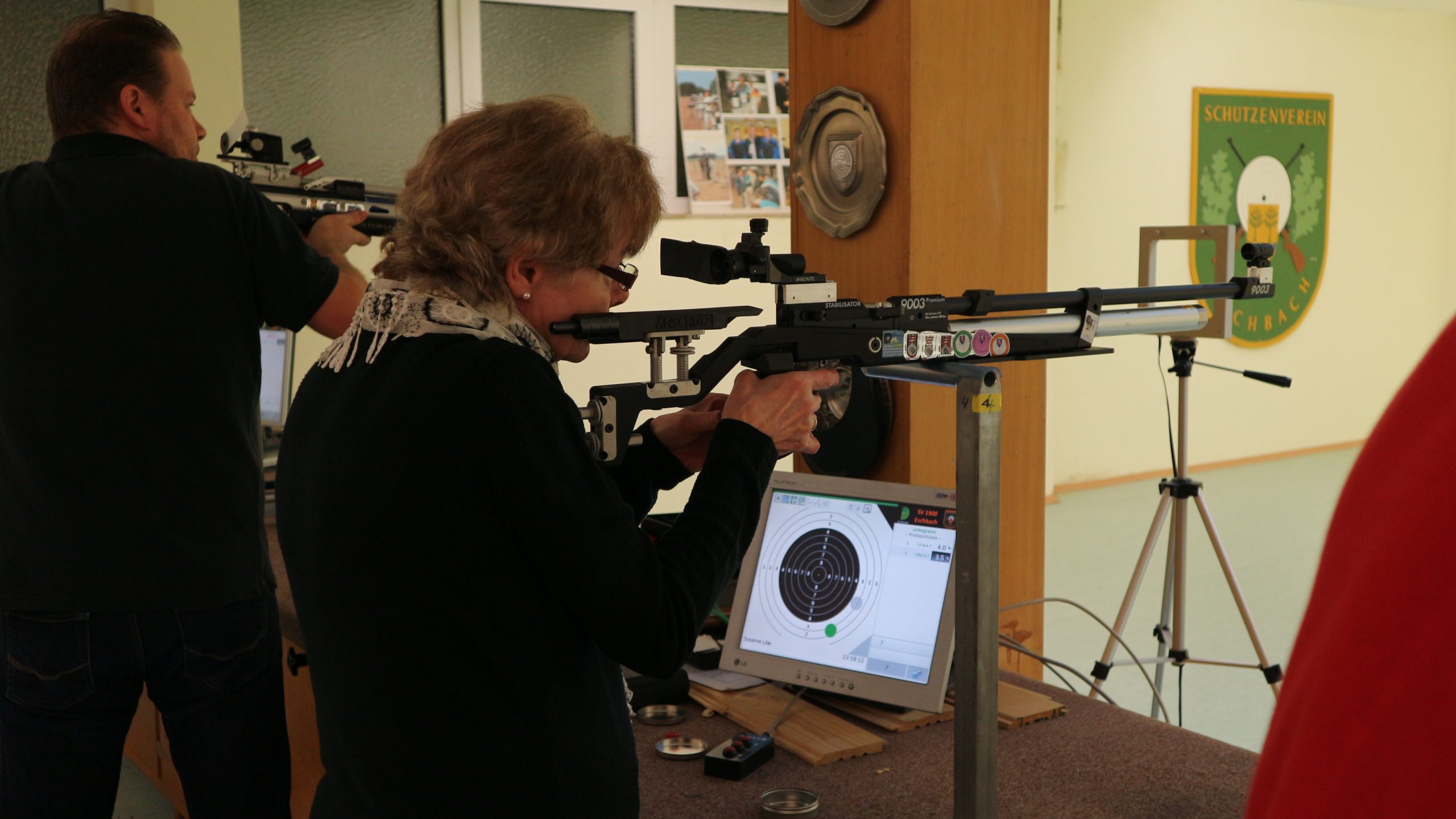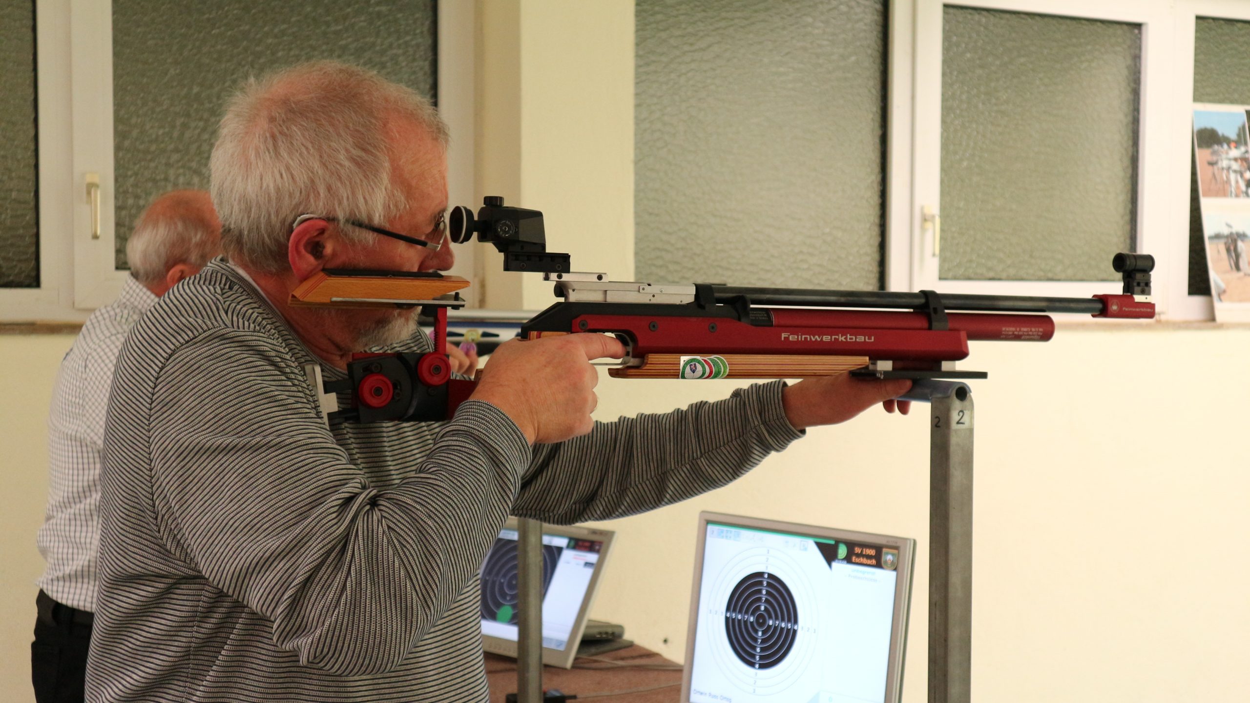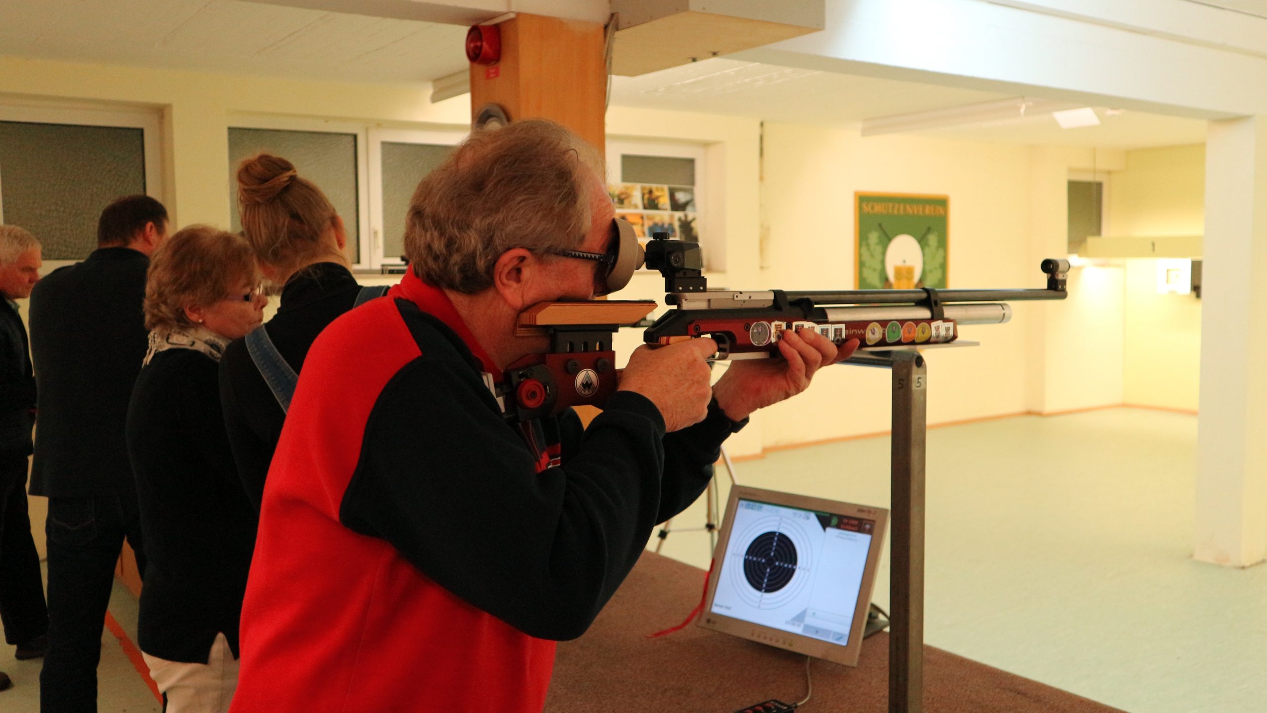 Acht Mitglieder trafen sich im Schützenraum und bildeten zwei Schießgruppen je drei Personen. Nach und nach wurden unsere Schützen aufgefordert sich am Schießstand einzufinden. Nach kurzer Einweisung durch Vereinsschützen auf die Luftgewehre durfte 5 Minuten lang Probe geschossen werden. Danach wurde es ernst. Jeder Schütze hatte 15 Schuß, um seine beste Punktzahl zu erreichen. Im Vereinslokal konnten die übrigen Schützen das Schießen auf der Großbildleinwand live verfolgen.